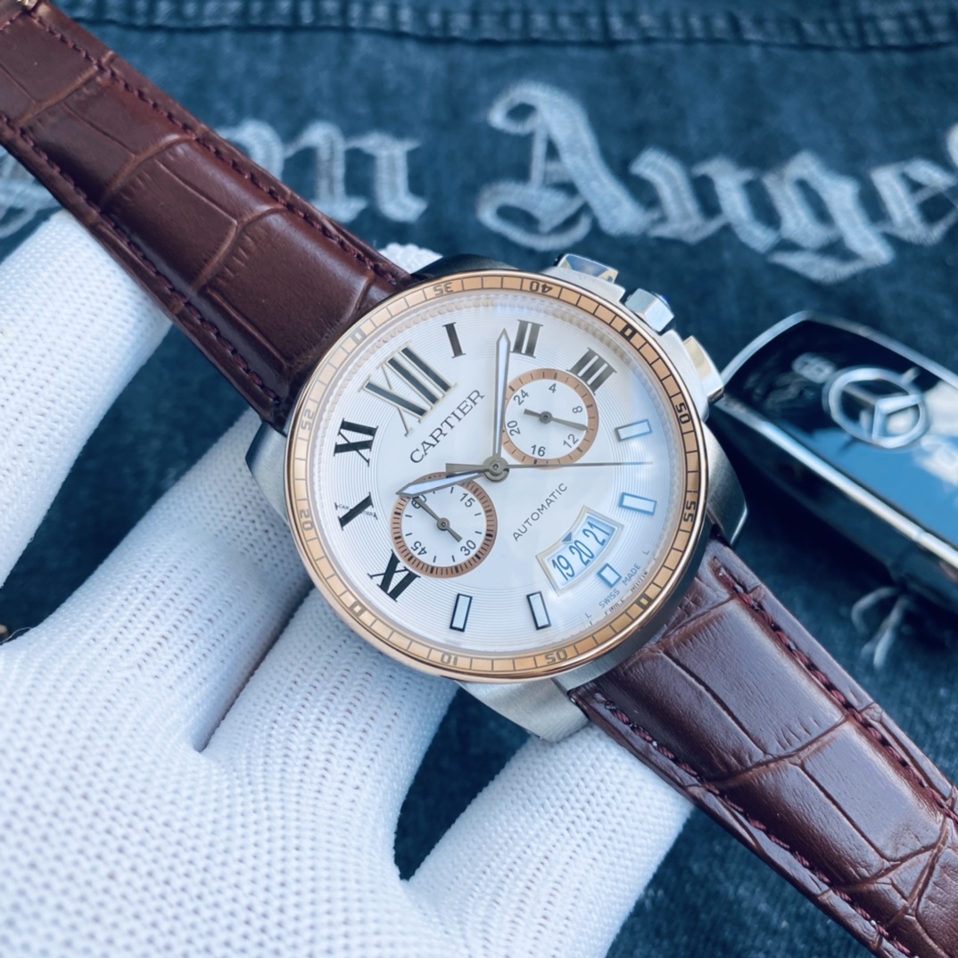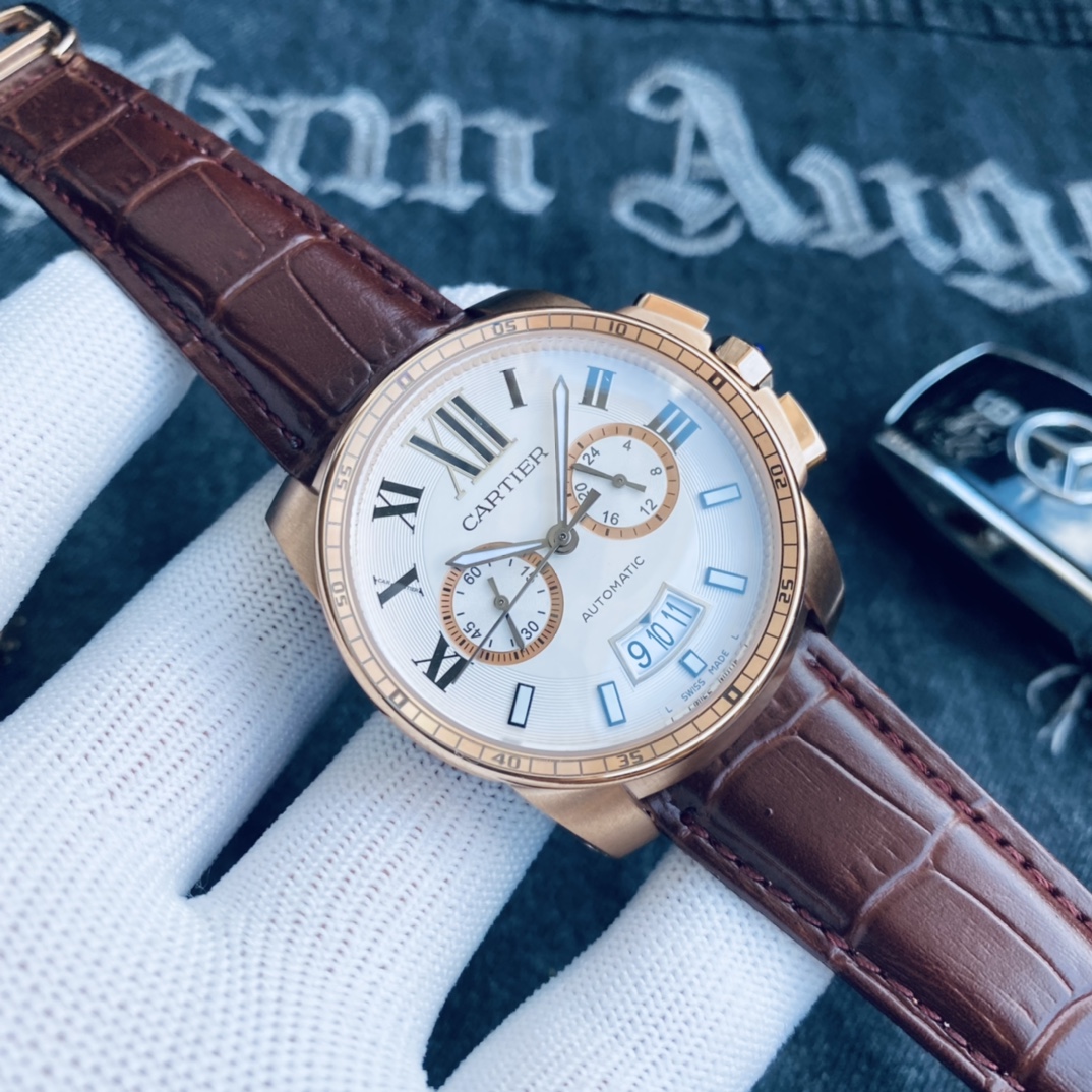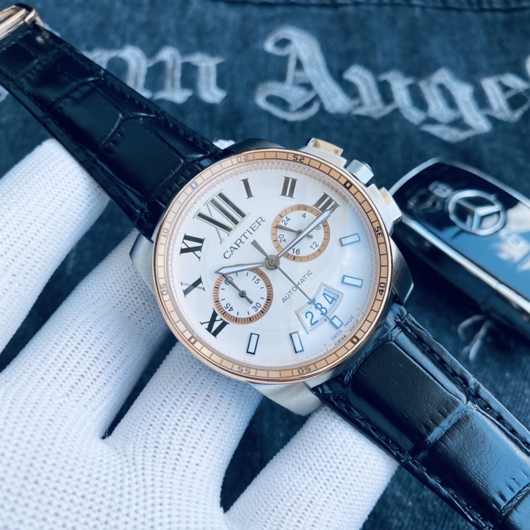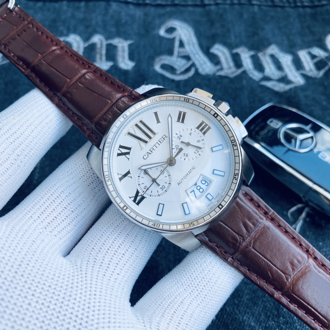 , 品牌: 卡地亚 Cartier 卡利博 系列: CALIBRE DE CARTIER潜水系列 表壳: 316精钢表壳精工制作 大气凌然 机芯: 顶级进口石英vk计时机芯走时精准 镜面: 顶级矿物质水晶防磨花玻璃 尺寸: 厚度12mm,直径42mm 字面: 超强表盘夜光丁 日历同步正品一致黑色底白字体显示 设计: 时尚与运动结合的潜水表硬朗而霸气,佩戴能突出男士魅力,彰显气质。