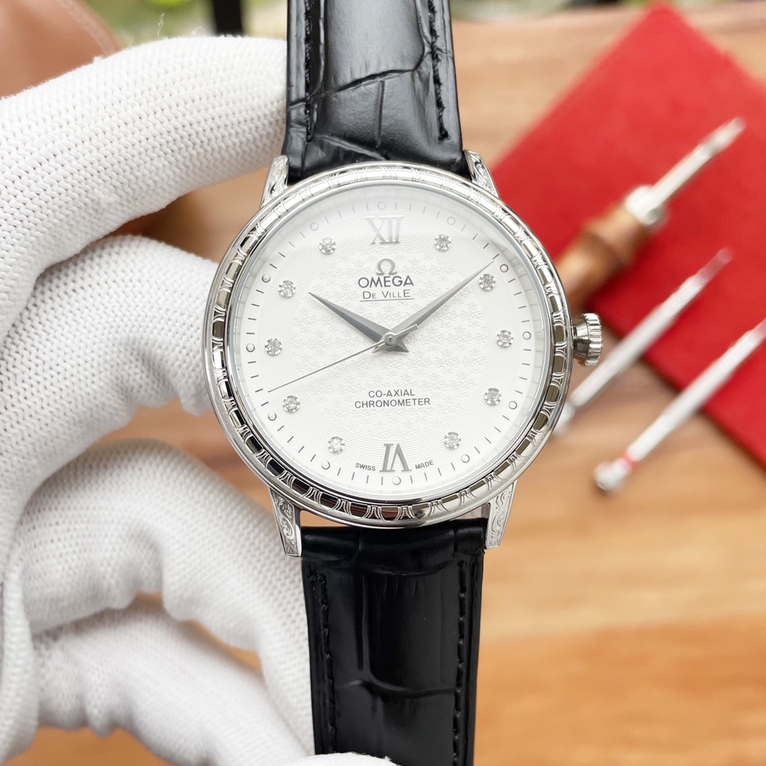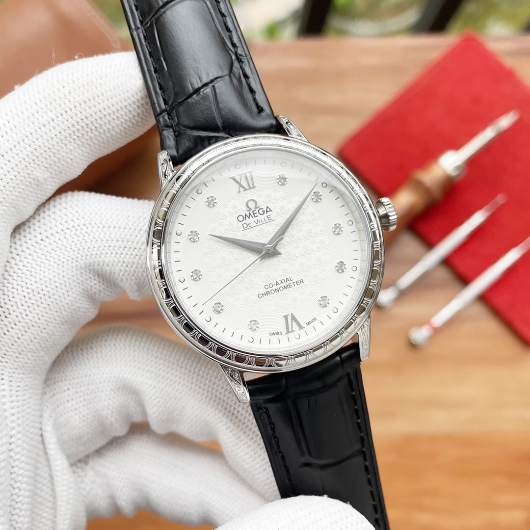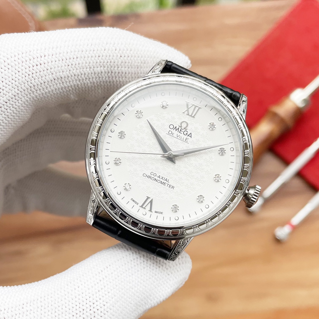 , 白,金 欧米茄 Omega 枫叶款式字面独特,纹路细腻,比较偏休闲商务风的风格,优雅百达的雕花表壳极具个性。性价比首选,搭载全自动机械机芯,40毫米的表径适配大众男性手寸,以及搭配小牛皮表带,非常商务可亦休闲。