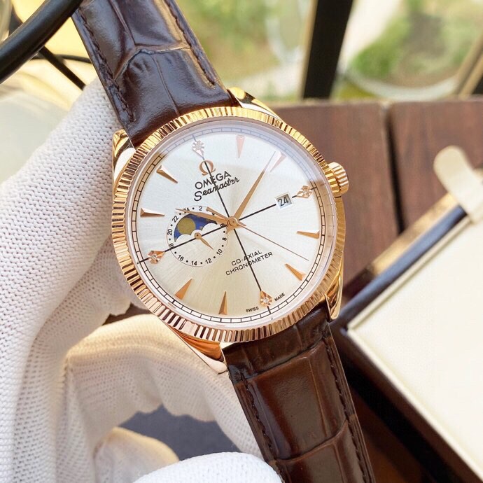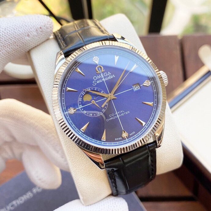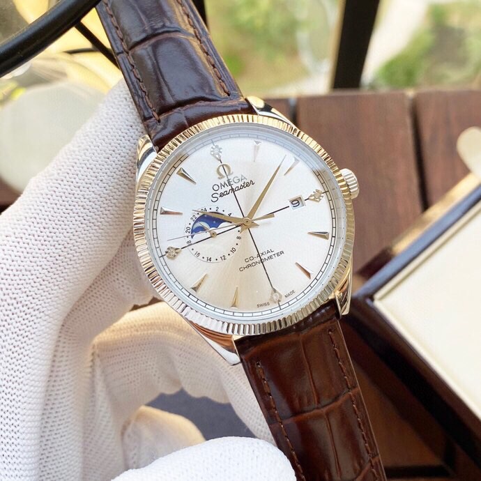 , 皮带,钢带。简约设计 经典热卖 欧米茄 Omega 男士腕表 西铁城机械机芯 矿物强化玻璃 316L精钢表壳 真皮表带 时尚大方 商务休闲 尺寸:直径42mm 厚度12mm