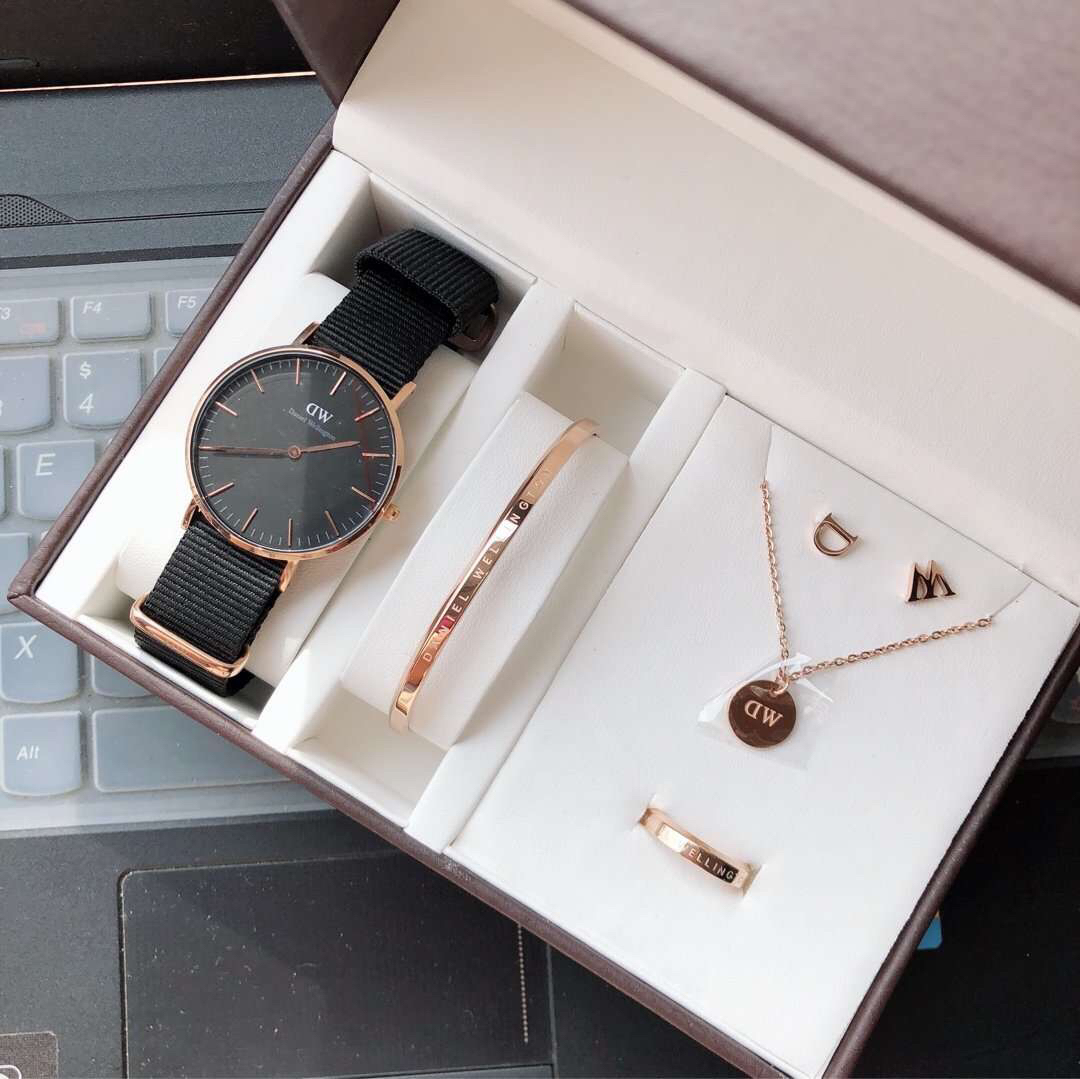 I5 丹尼尔惠灵顿 Daniel Wellington classic 女仕五件套 璀璨人生旅程 丹尼尔惠灵顿 Daniel Wellington DW经典之作 完美地诠释了无可挑剔的迷人风格套装包括:简约时尚石英女表 丹尼尔惠灵顿 Daniel Wellington DW手镯+耳钉+戒指+丹尼尔惠灵顿 Daniel Wellington DW圆形项链全套礼盒包装
