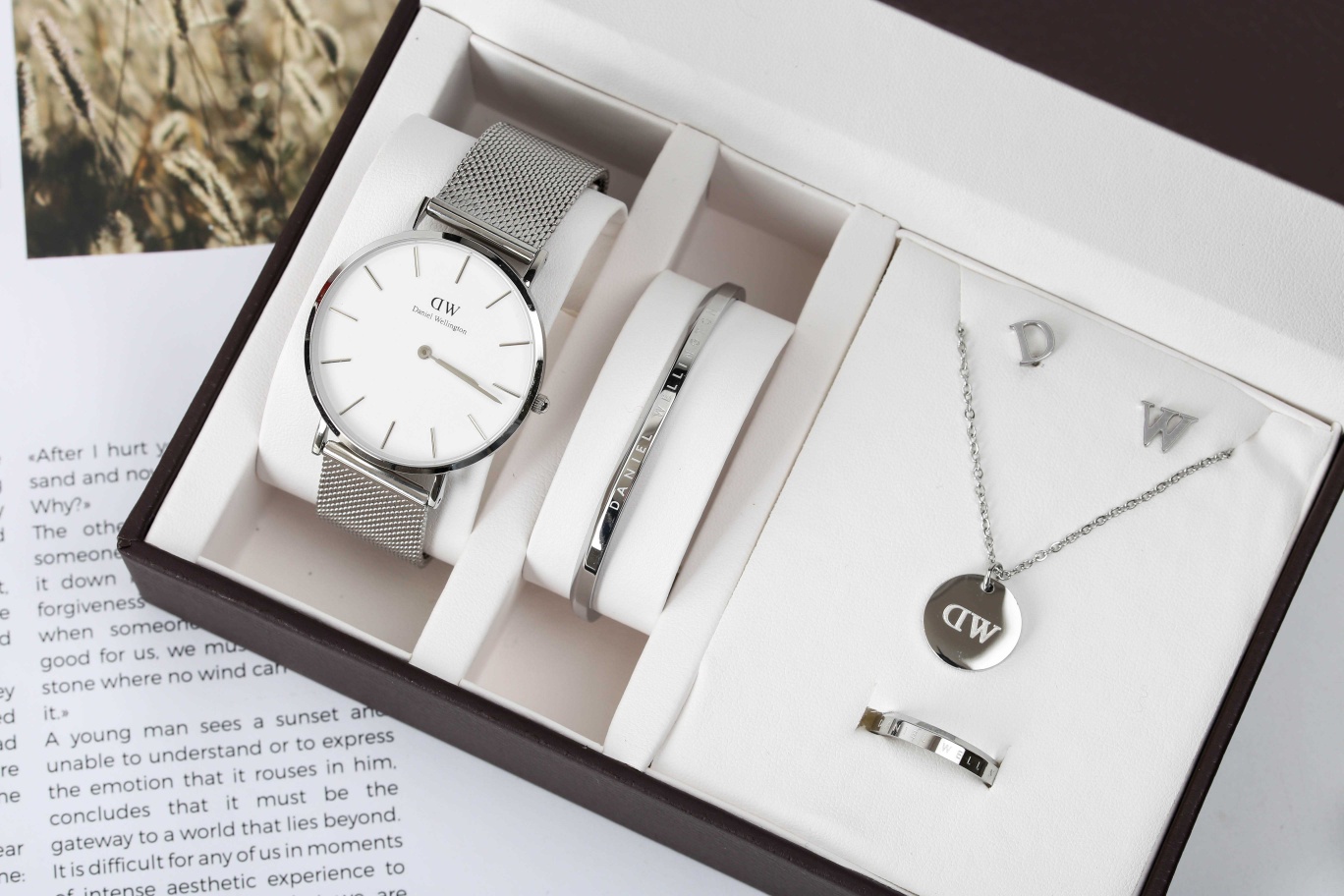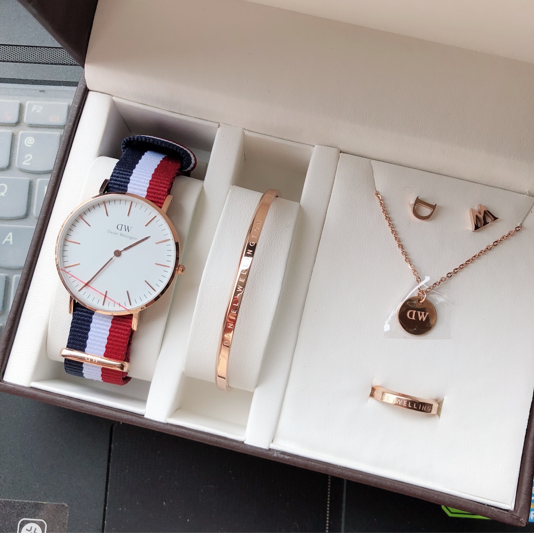 I5 _ 重磅推出高端定制 丹尼尔惠灵顿 Daniel Wellington classic 贺岁版丹尼尔惠灵顿 Daniel Wellington DW礼盒套装5件套, 1:任意丹尼尔惠灵顿 Daniel Wellington DW手表一个 2:任意丹尼尔惠灵顿 Daniel Wellington DW手镯一个手镯20 3:丹尼尔惠灵顿 Daniel Wellington DW配套项链一条 4:丹尼尔惠灵顿 Daniel Wellington DW配套耳环一对 5:丹尼尔惠灵顿 Daniel Wellington DW配套戒指一个 璀璨人生旅程 丹尼尔惠灵顿 Daniel Wellington DW经典之作 完美地诠释了无可挑剔的迷人风格全套礼盒包装。送礼倍有面