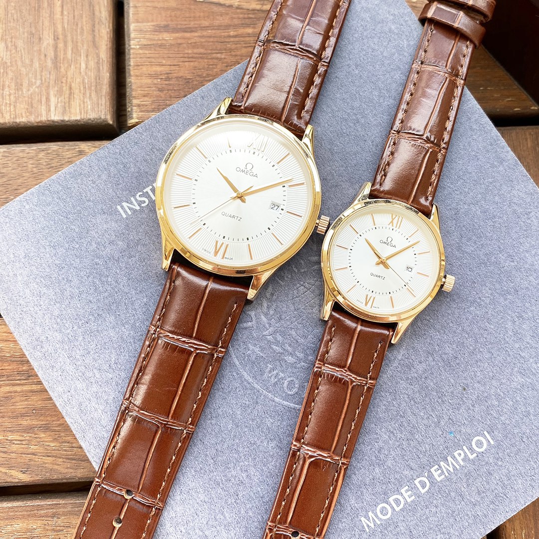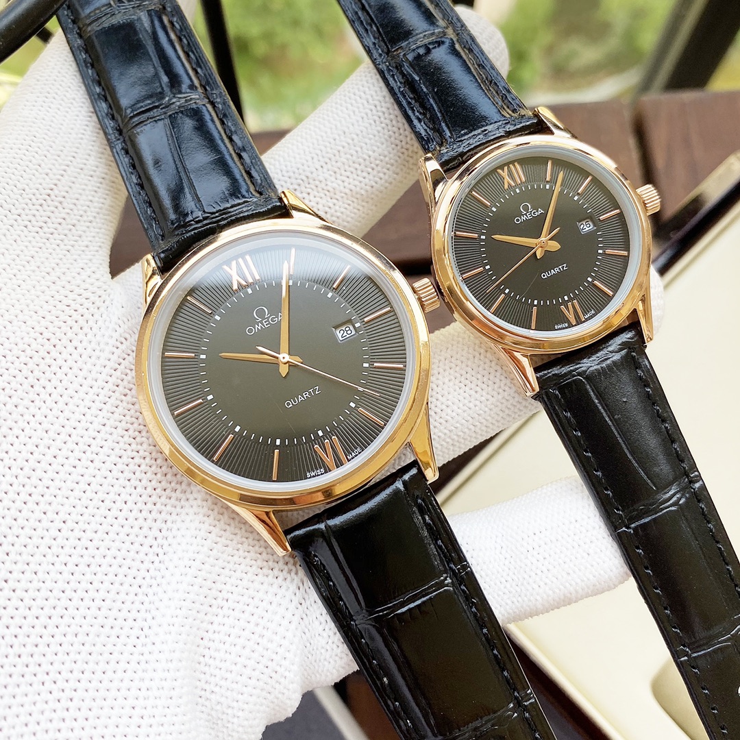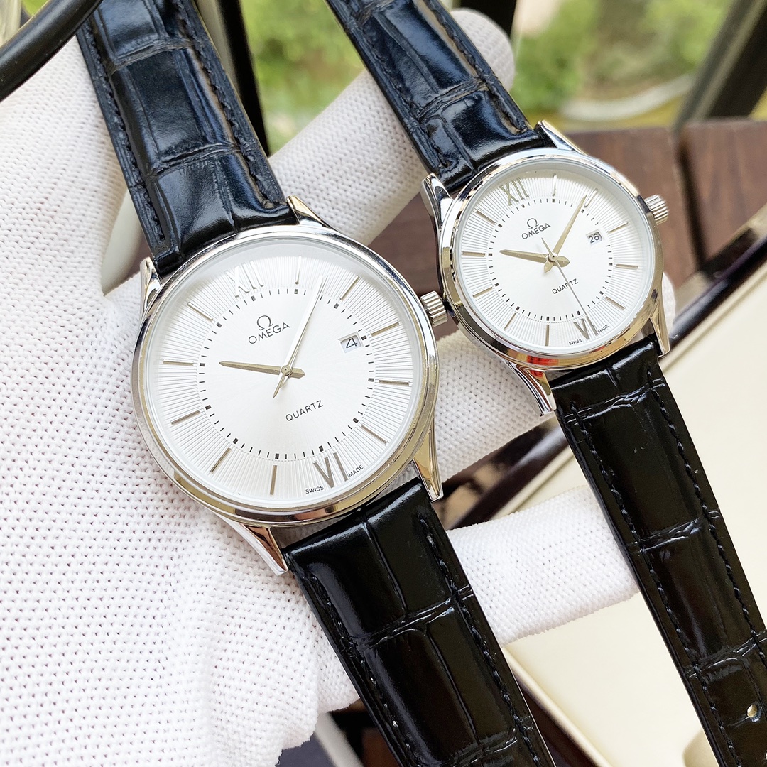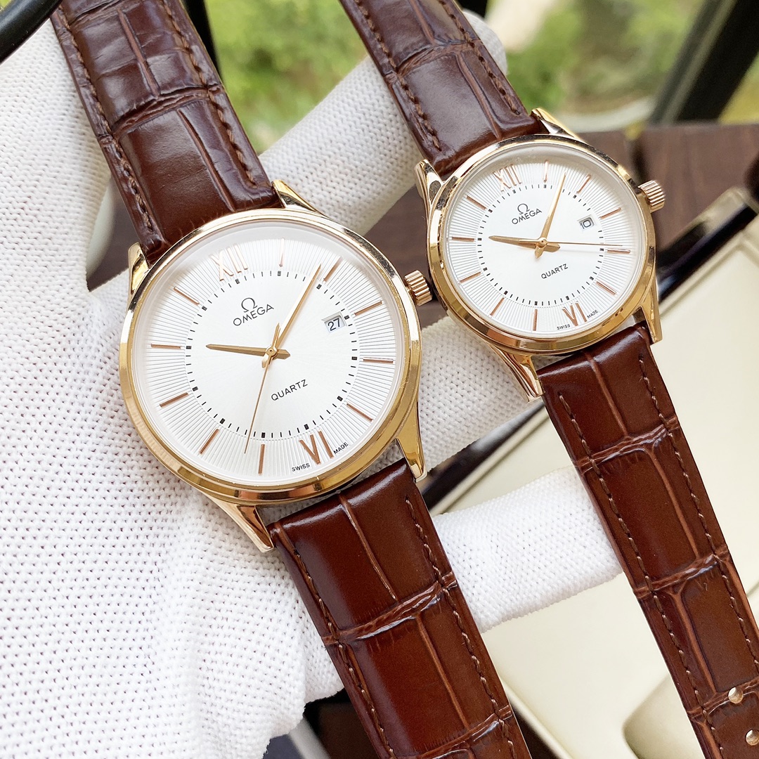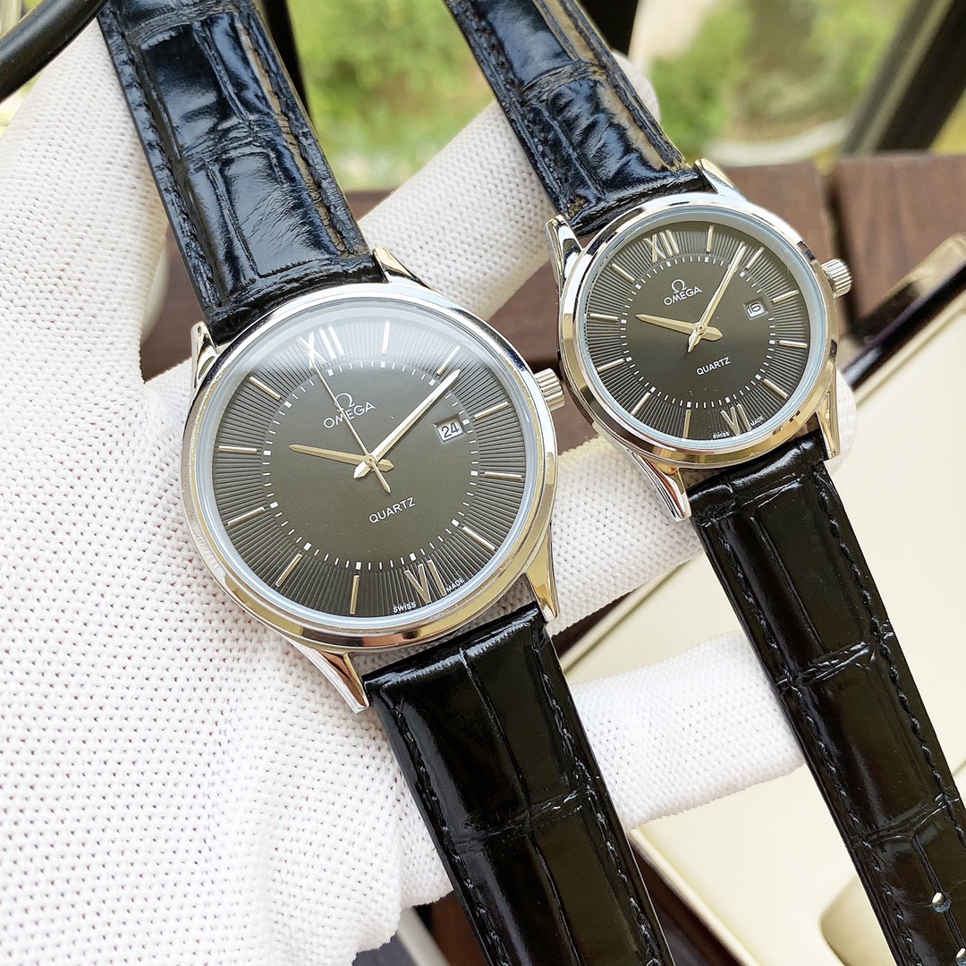 J5 全新风格 经典热卖 欧米茄 Omega 情侣对表 进口石英机芯 矿物强化玻璃 316L精钢表壳 真皮表带 时尚设计 优雅大方 尺寸:男款直径40mm 厚度9mm 女款直径30mm 厚度9mm