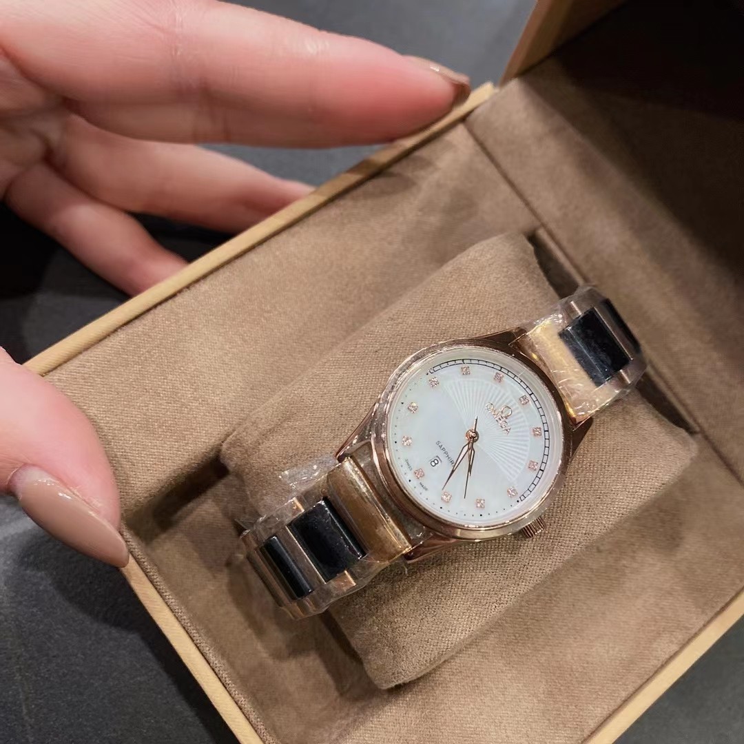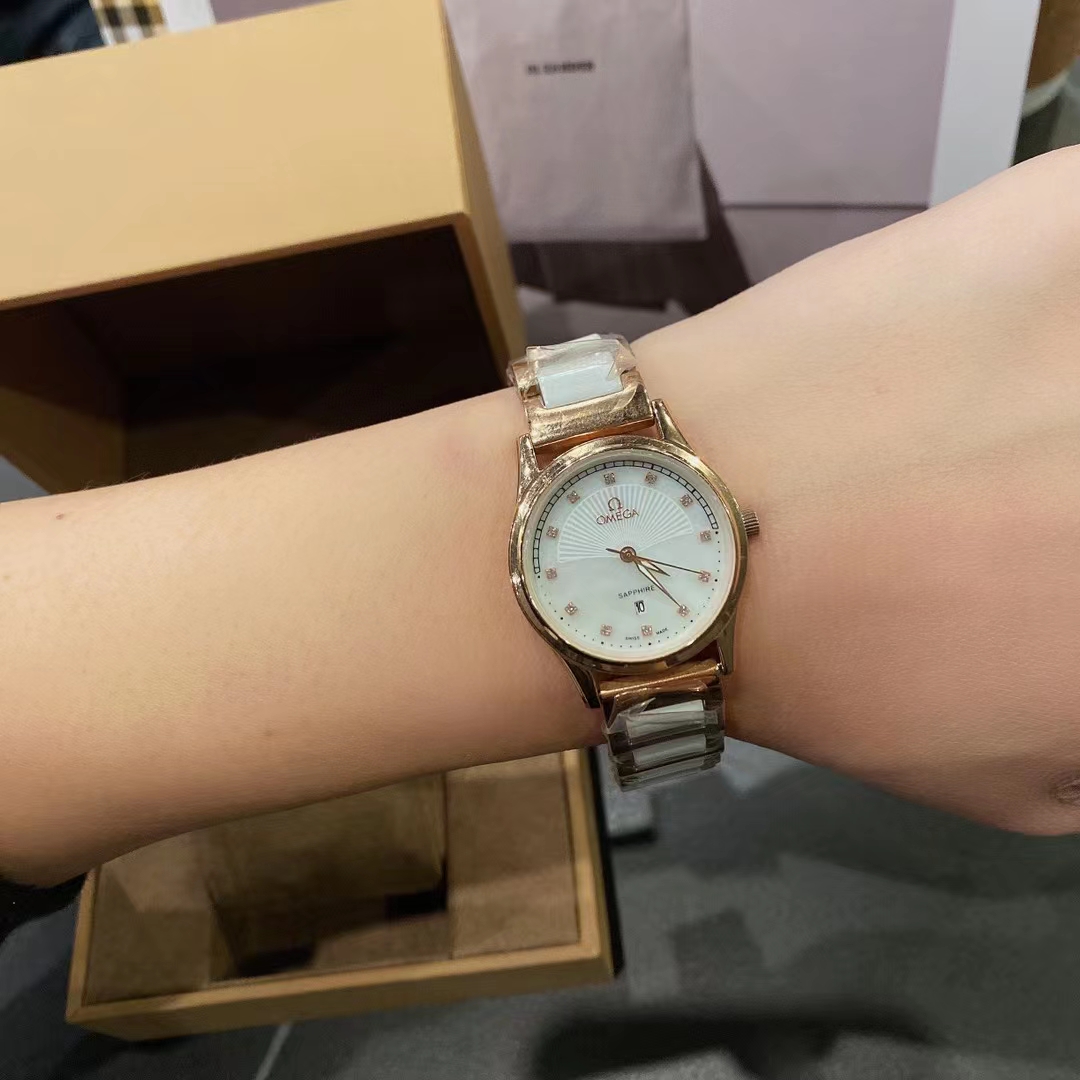 K0 陶瓷 . OMEGA 欧米茄 Omega —时尚女士石英腕表,女神范十足的一款手表,超强时尚设计理念,进口石英机芯,顶级镀膜玻璃镜面,多颜色进口小牛皮搭配原装针扣,尺寸32mm, 实物拍摄 品质如一