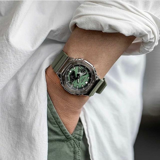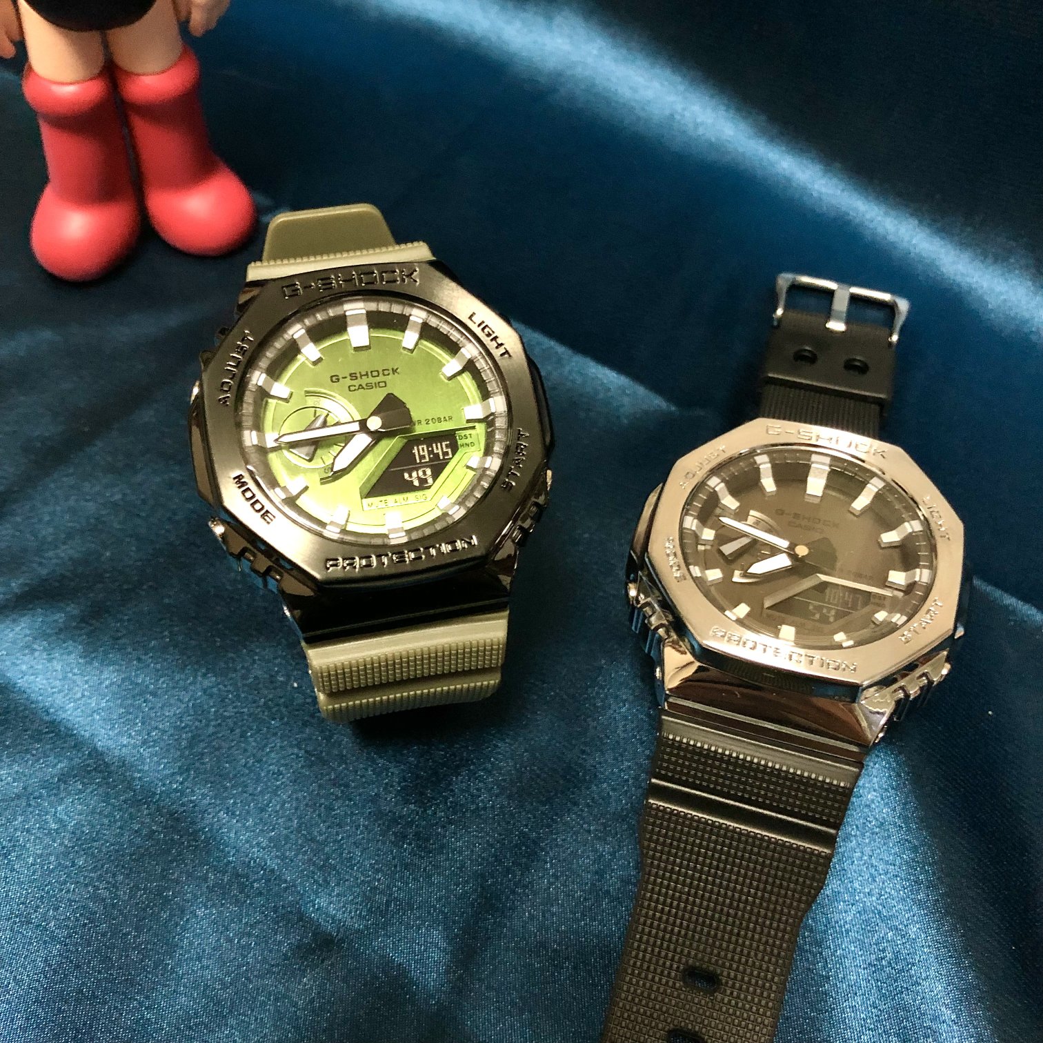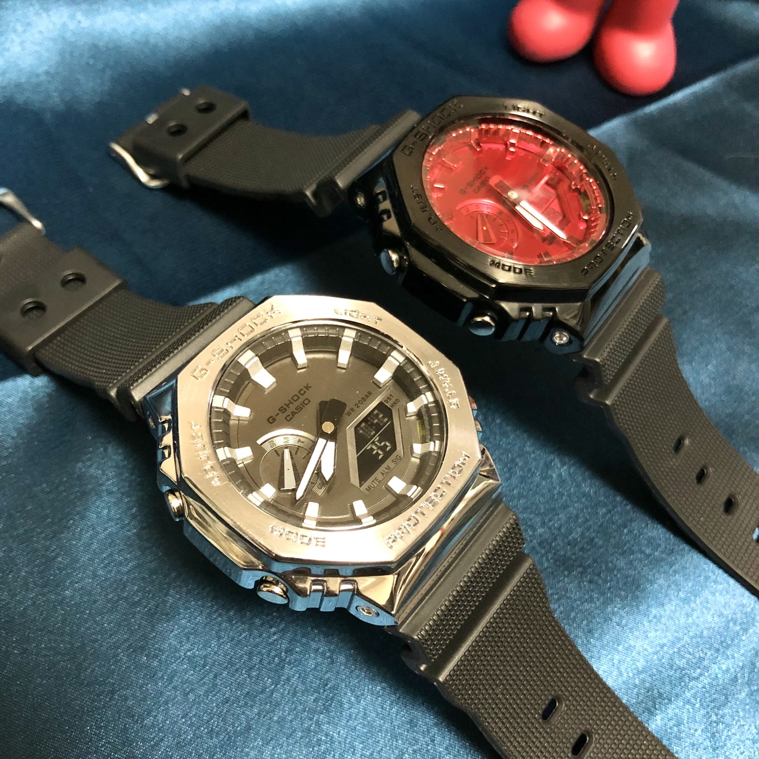 日本官网最新发售款 Casio 卡西欧 G-SHOCK钢铁农家橡树金属八角手表 棱角创意,潮流上分。G-SHOCK 全新 GM-2100 表款以金属八角形表圈包裹圆形刻度盘设计,融合展现潮酷型格。且刻度盘采用蒸着技术抛光,显现出清晰的纹理感,整体更显精致时尚,男女皆适合佩戴。 全新的GM-2100共有四个不同搭配,分别是:银色不锈钢表圈搭配银色表盘型号GM-2100-1A;蓝色IP不锈钢表圈搭配蓝色表盘型号GM-2100N-2A;深灰色IP不锈钢表圈搭配绿色表盘型号GM-2100B-3A和深灰色IP不锈钢表圈搭配红色表盘型号GM-2100B-4A 。 四款腕表各有出彩表现,不论你是哪一派,都能搭出潮流的出街 Look。 颜色:银色 绿色 红色 蓝色 配专柜全套包装