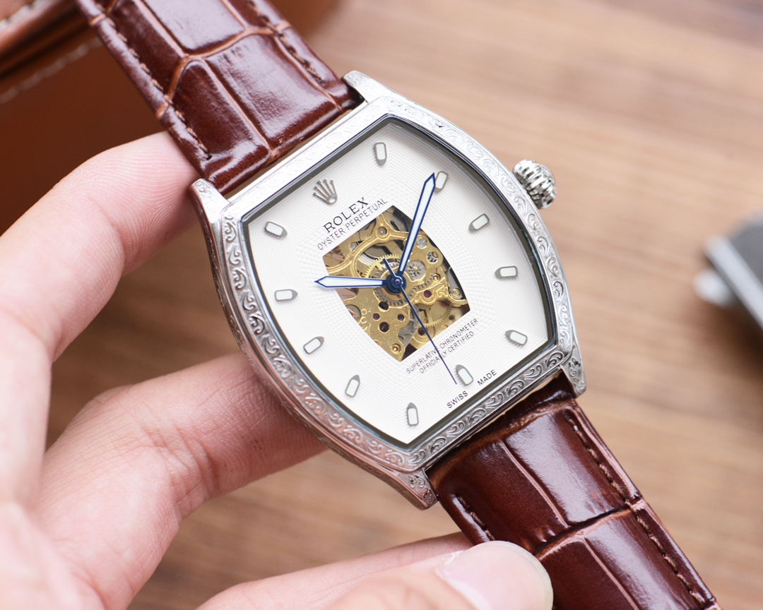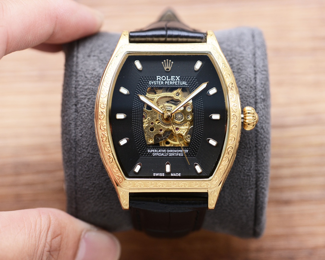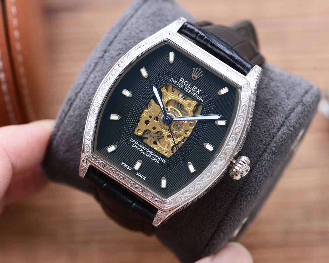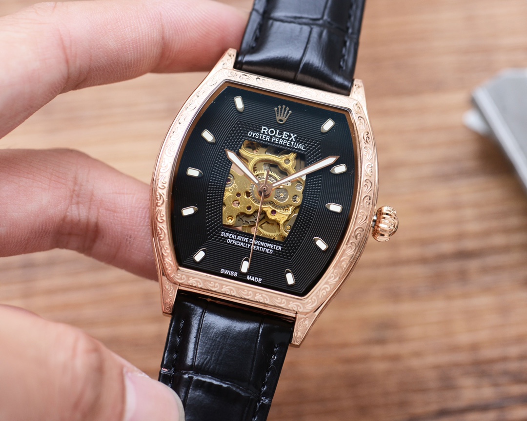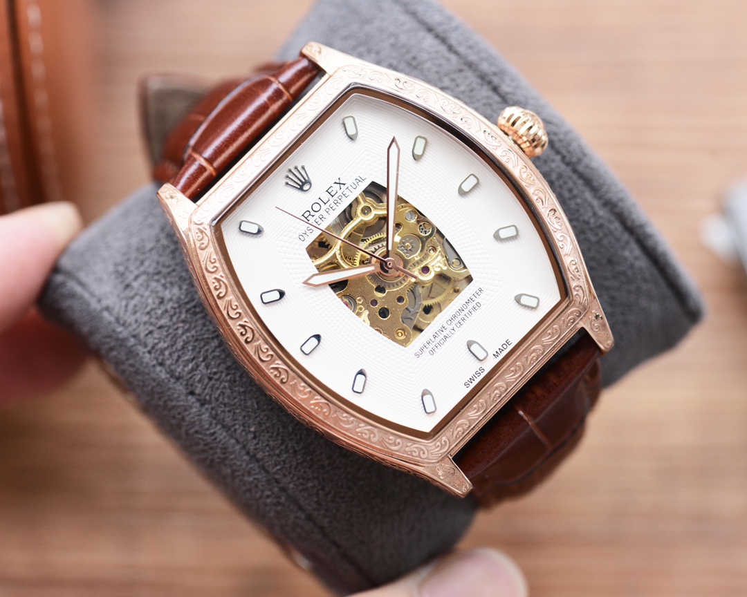 酒桶新品 最新: 劳力士 Rolex 镂空设计 类型:精品男士腕表 表带:真牛皮表带 机芯:高端全自动机械机芯 镜面:矿物质强化玻璃更高清 品味高雅 浩瀚大气 匠心独运 腕间瑰宝 尺寸:直径42mm厚12.5mm