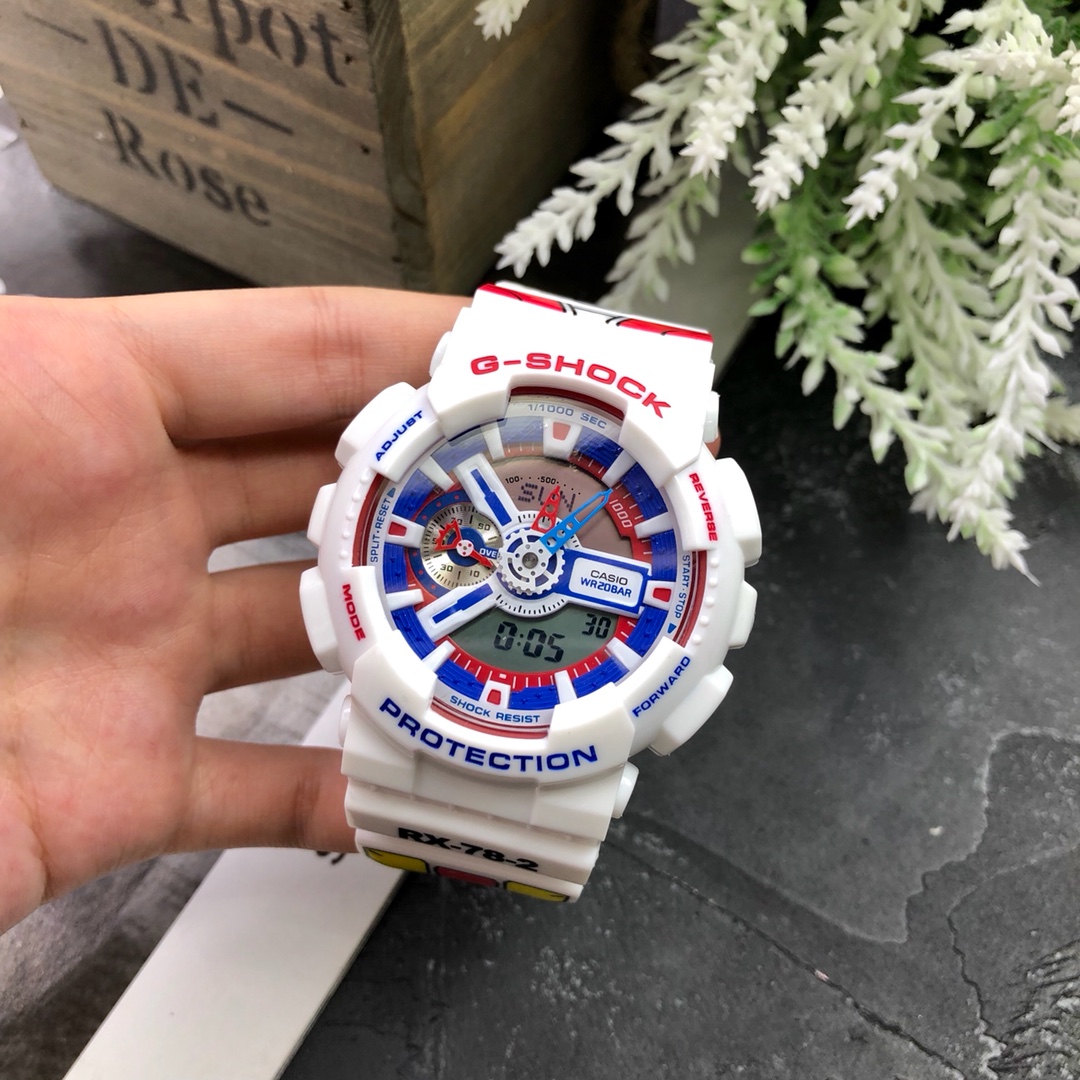 E0 原单高达已出货 Casio 卡西欧 高达配色40周年G-SHOCK限量版gshock手表男独角兽初代扎古 潮流经典致敬动漫史诗 主要功能:自动LED照明,200米防水,世界时间,倒计时,闹铃,间歇响报,日历 带包装