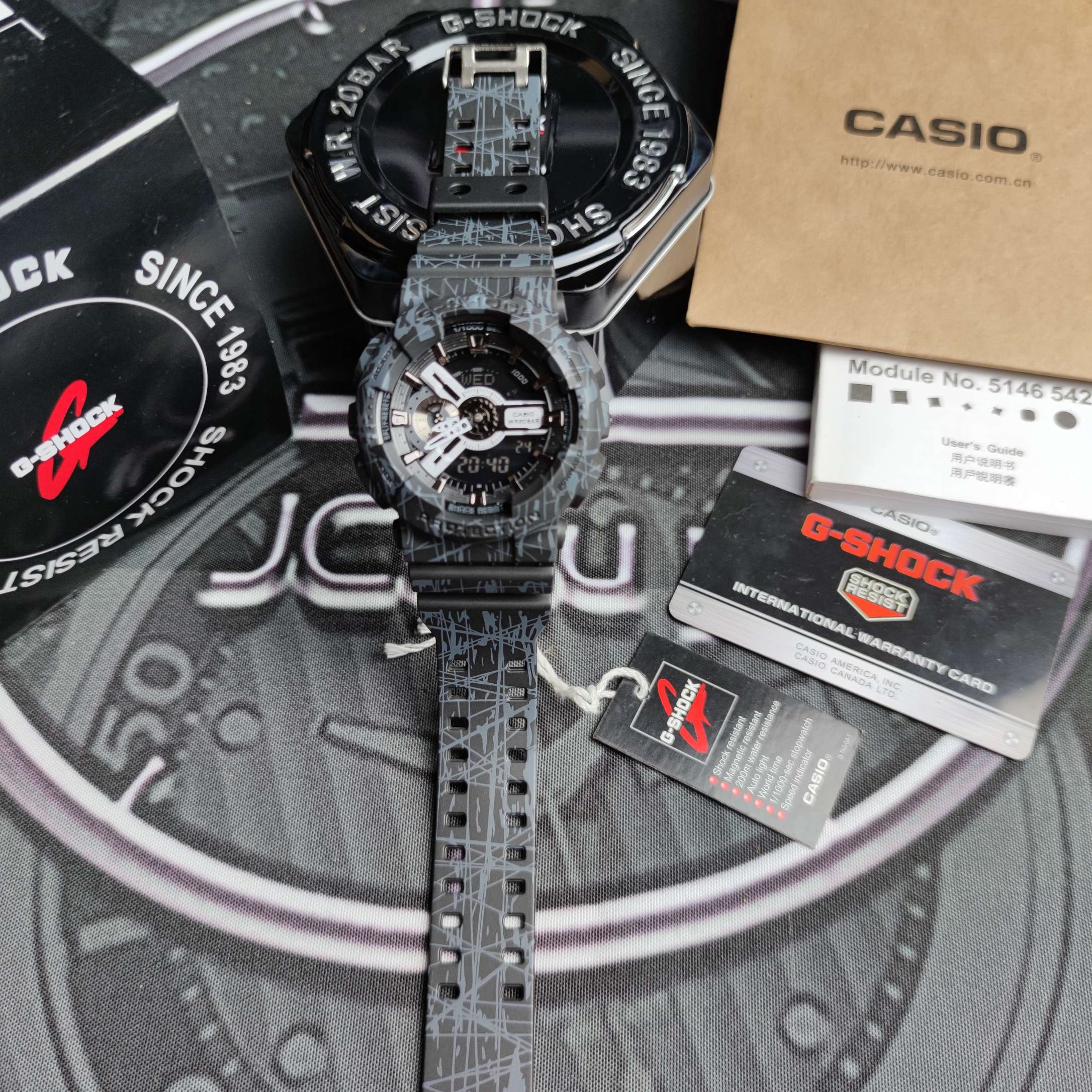 E0 爆裂紫,G-Shock 110系列 Casio 卡西欧 手表最高版本45度自动抬手灯 原单高品质 配备1/1000秒表计速功能 防震 防磁 50M防水 LED灯 世界48个城市时间 倒计时 闹钟 间歇响报 全套包装
