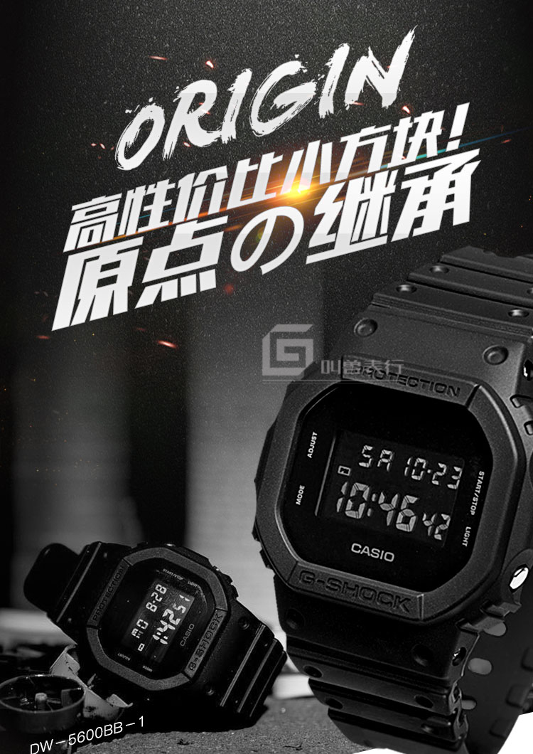 E0 Casio 卡西欧 G-shock手表 运动男手表数字显示 潮流防水电子表G-5600 基本功能,自动日历、时间显示:时分秒/pm/月/星期/日期、背光照明无自动背光,只手动、抗震抗磁、精确度:每月±15秒、表带材质:橡胶、尺寸:39*33*13.5mm。