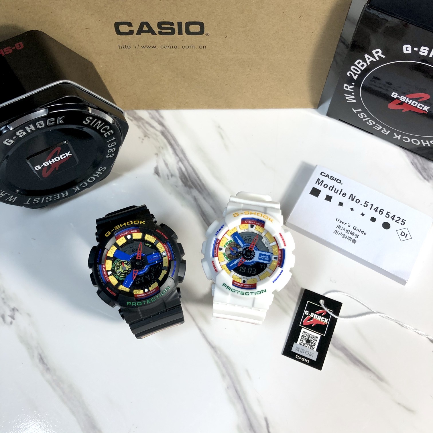 E0 Casio 卡西欧 G-SHOCK GA-111DR-7AJR DEE AND RICKY限量版色彩旋风来袭 G-SHOCK 最为出色的限量版本,设计配色十分好看,已经不是限量那么简单,当艺术品来收藏一点都不为过 以白色为基础色,文字盘由原色系的多色构成。「色彩斑斓、纤细的用色」和「零部件构成的致密」、「数字和指针的融合」作为体现JAPAN CULTURE的G-SHOCK新系列,体现日美文化的合作款上市 原单日本机芯,性能稳定,正品1:1 开模,原版树脂表带,手感、重量、质感秒杀普通货,防水防震45°自动抬手灯1/1000秒表,好货耐造,经过专业QC质检,做工保证,专柜六件套包装 配专柜全套包装