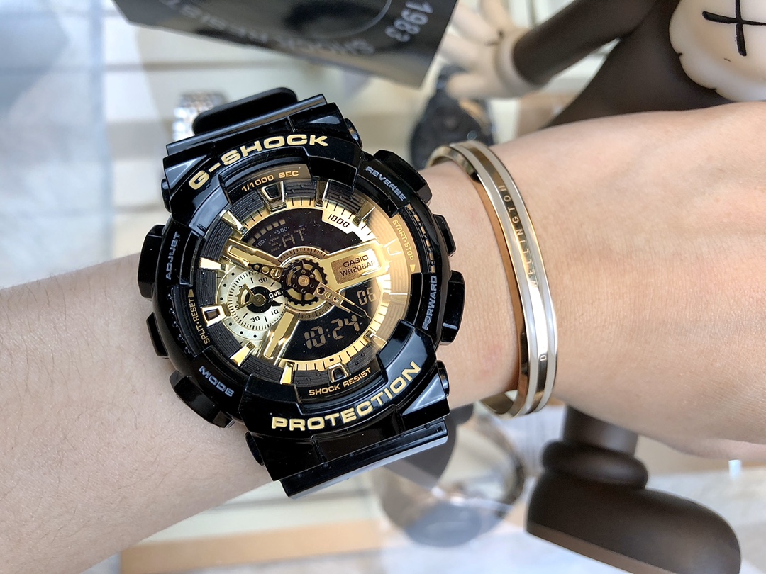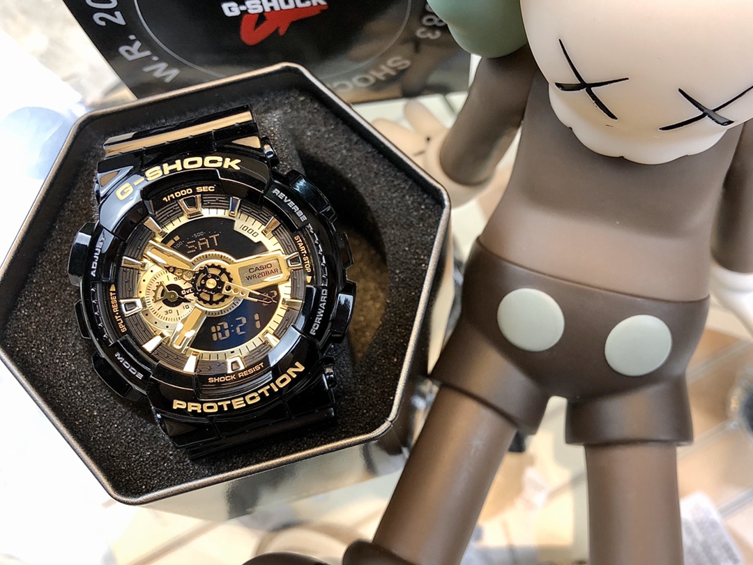 E0 Casio 卡西欧 G-shock-Ga110 系列:黑金 最高版本、区别市场Low货 主要功能:45度自动抬手灯、防震防水、世界时间、倒计时、闹铃、间歇响报、日历。表盘偏大男女通用、