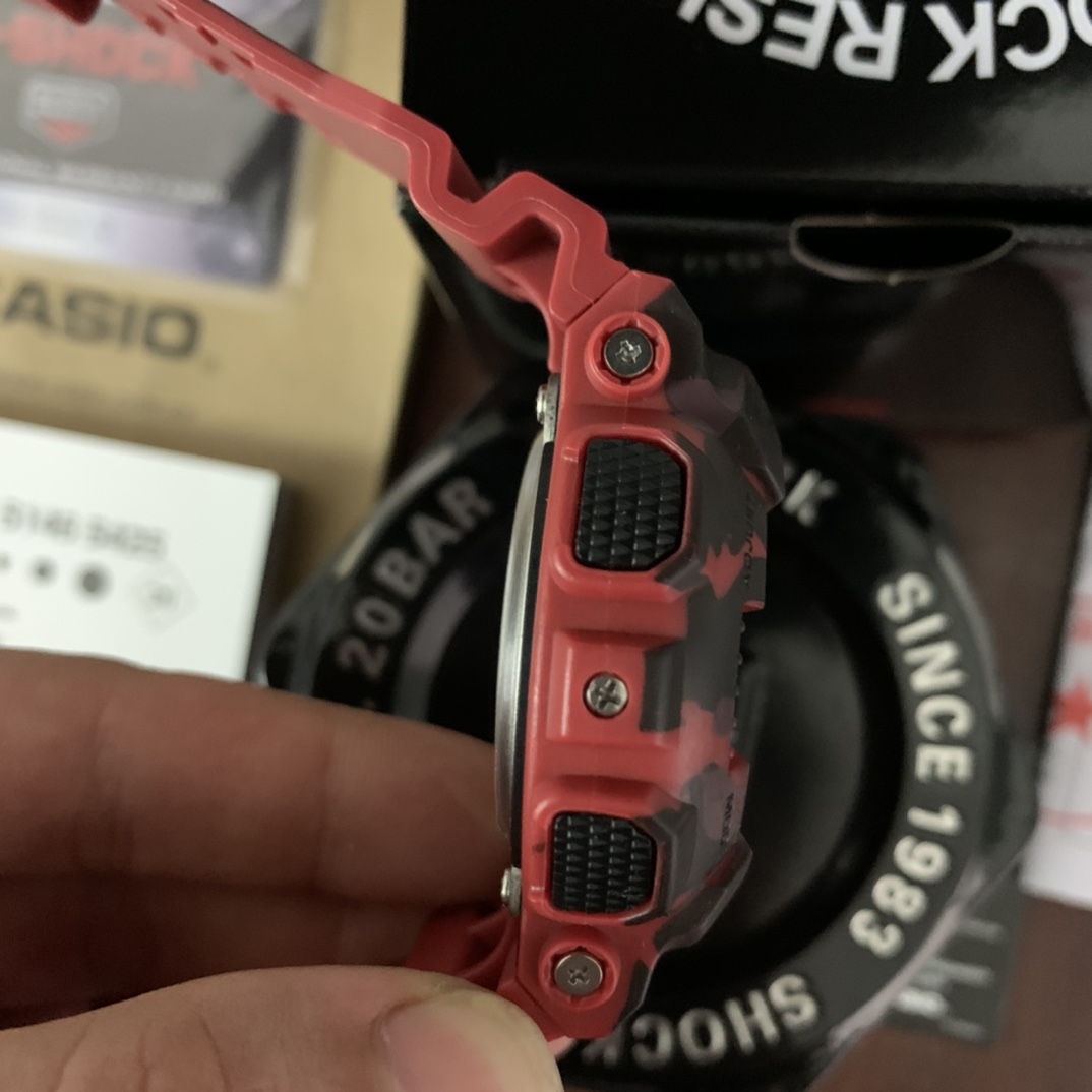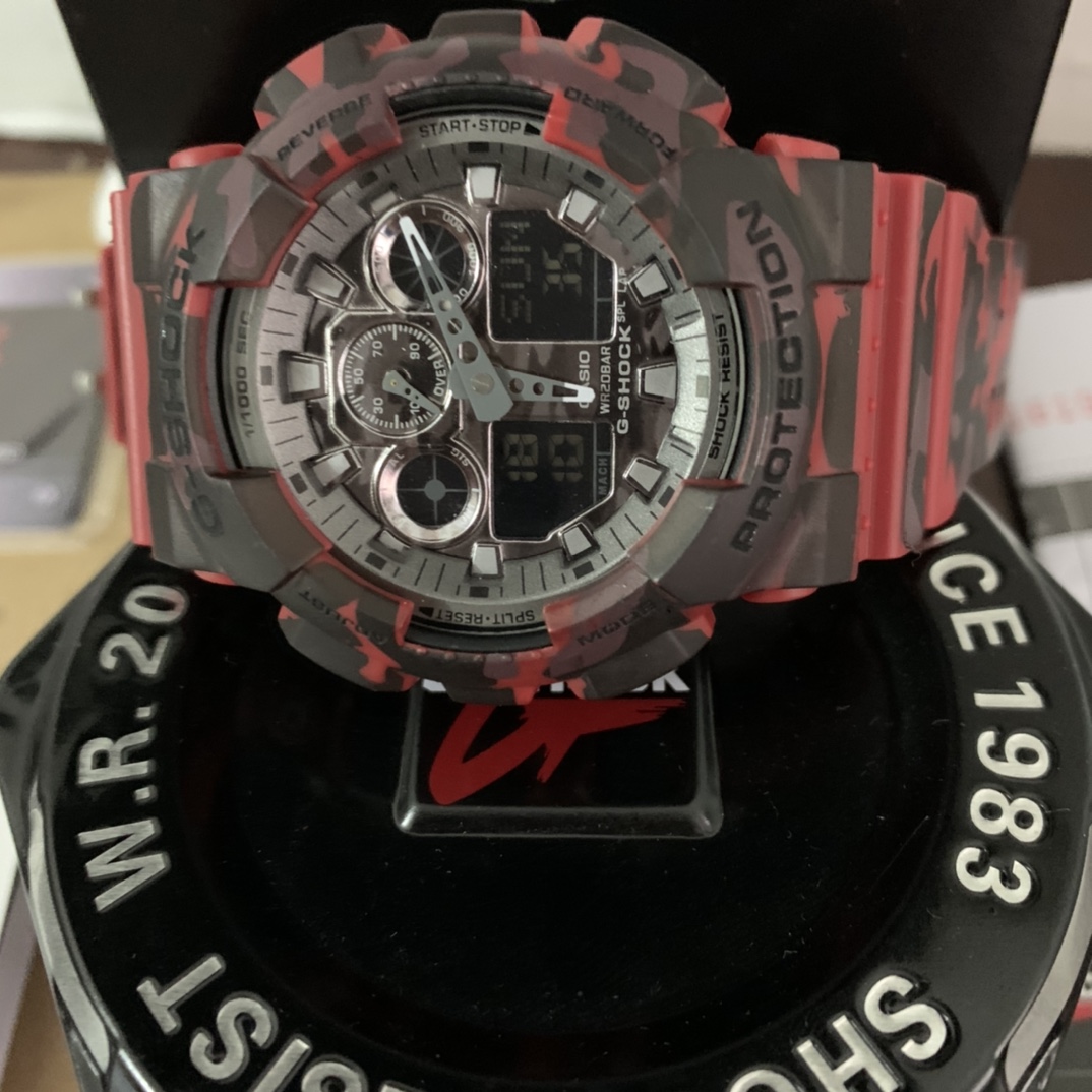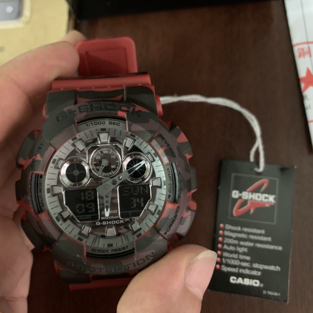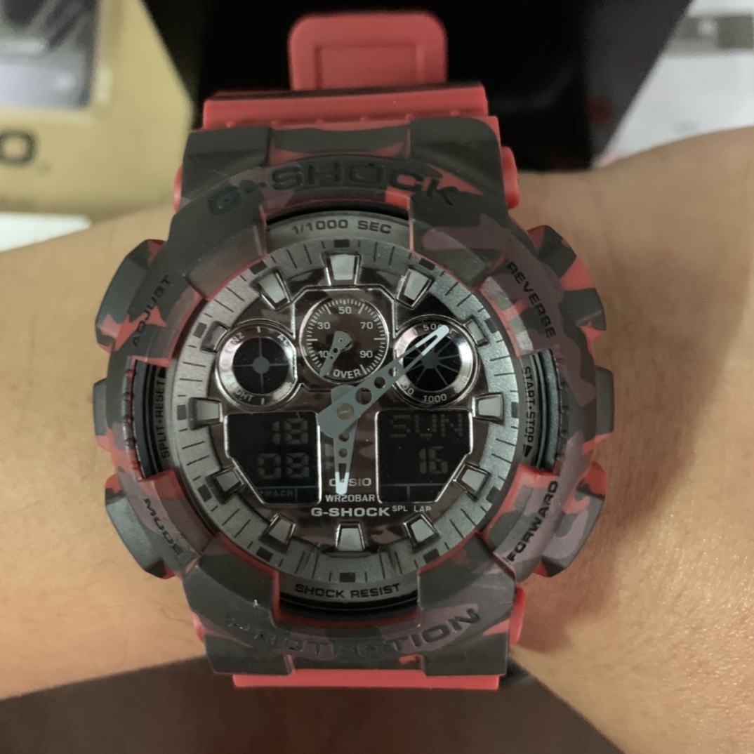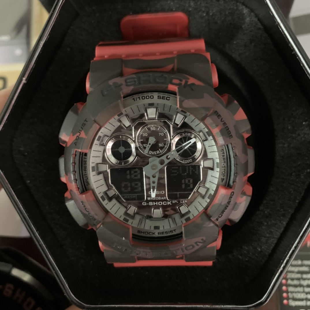 E0 Casio 卡西欧 G-SHOCKYOUTH系列 丛林迷彩系列 防震防水运动手表日韩表 红色迷彩GA-100CM-5A丛林迷彩 53*14mm表径.功能:自动LED照明,世界时间,倒计时,闹钟