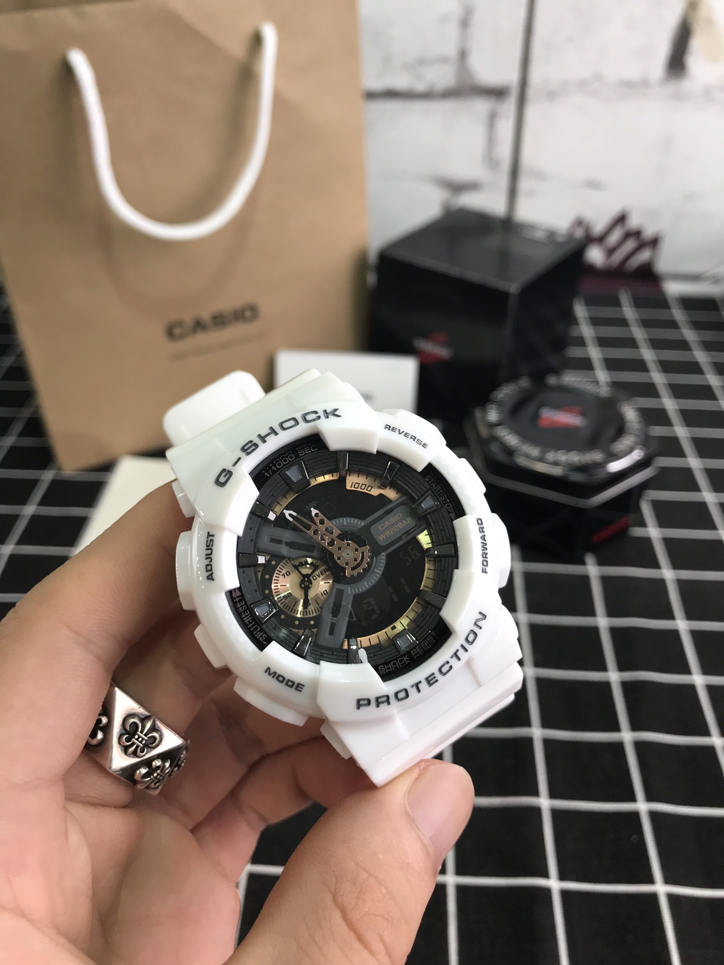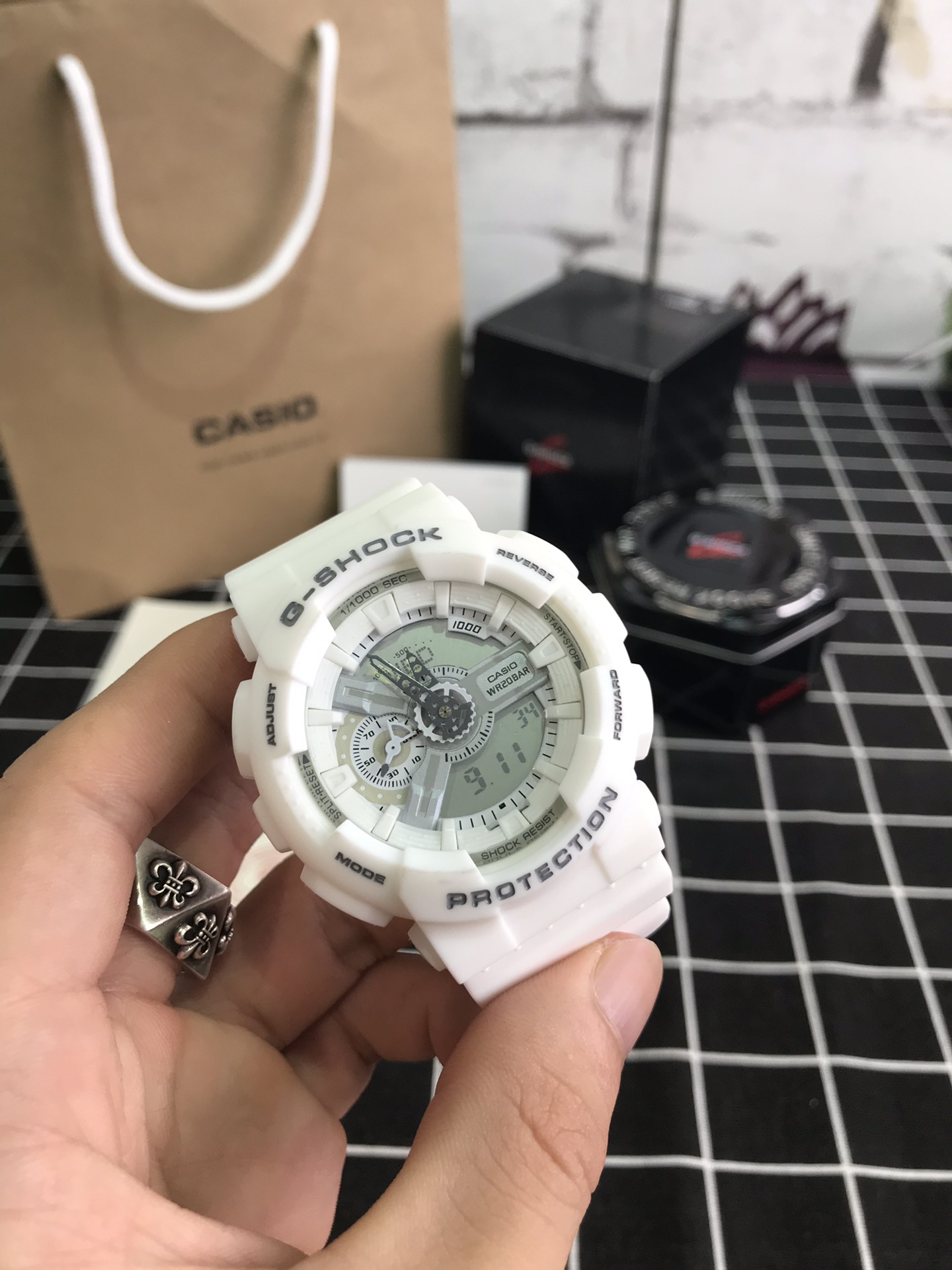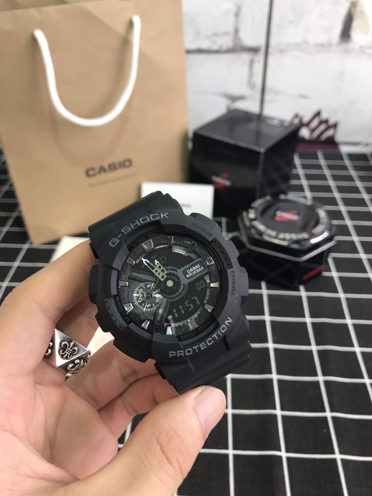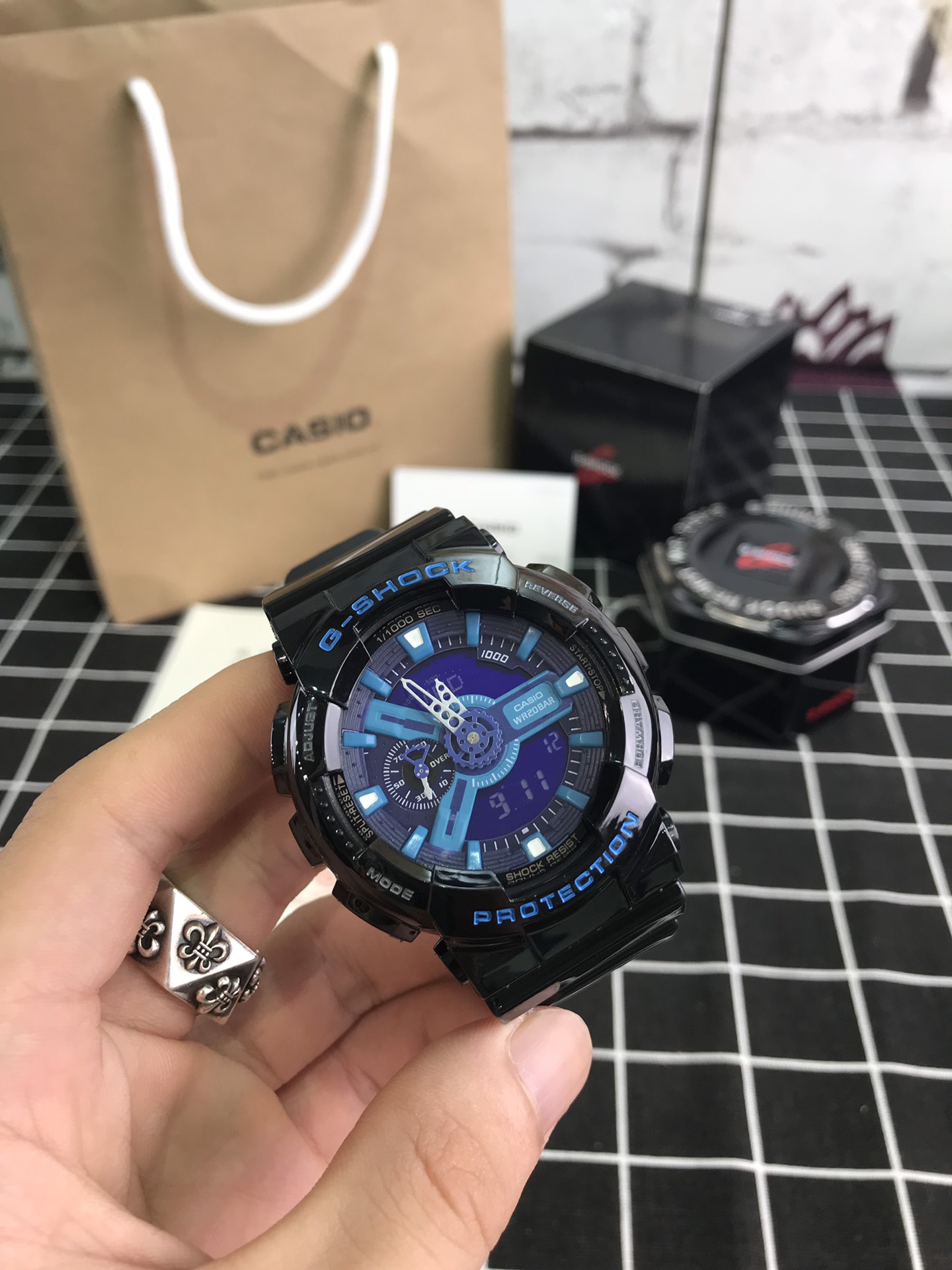 E0 Casio 卡西欧 G110原单男士,时尚大气立体表盘3D设计,层次感立体分明,指针液晶双显,时间清晰可见,悬浮机芯10米防震,多功能易操作的舒适防水按键,高强度的200米防水可以在冰冻还有深度游泳中点水不进,所以是这款的魅力所在,以下5色是 Casio 卡西欧 的销量之王,户外运动所需的多功能手表,防震、200米防水、倒计时、秒表、LED自动照明、世界时间、全自动日历、防避、多功能闹铃以及整点提醒,质量过硬渠道货源,保修一年,不影响二次销售退换