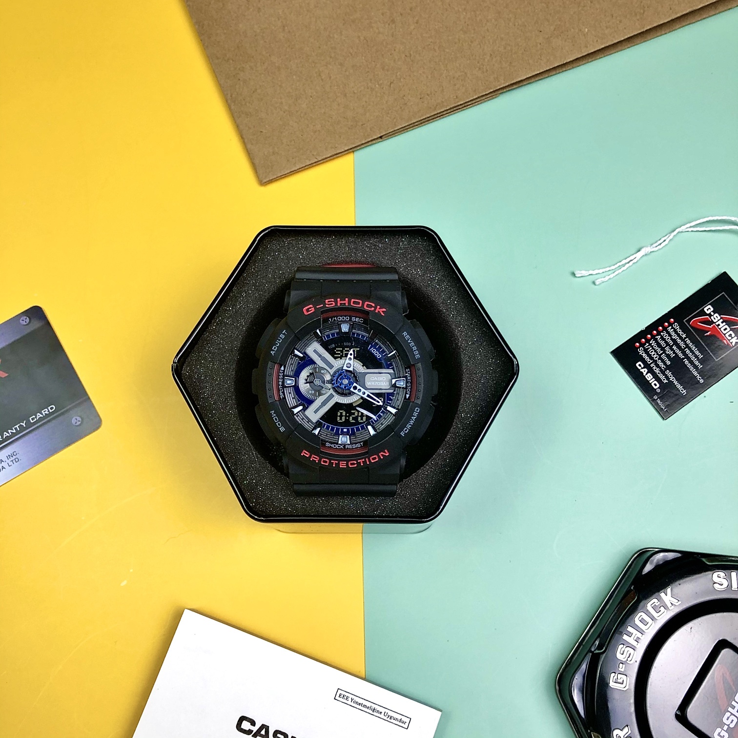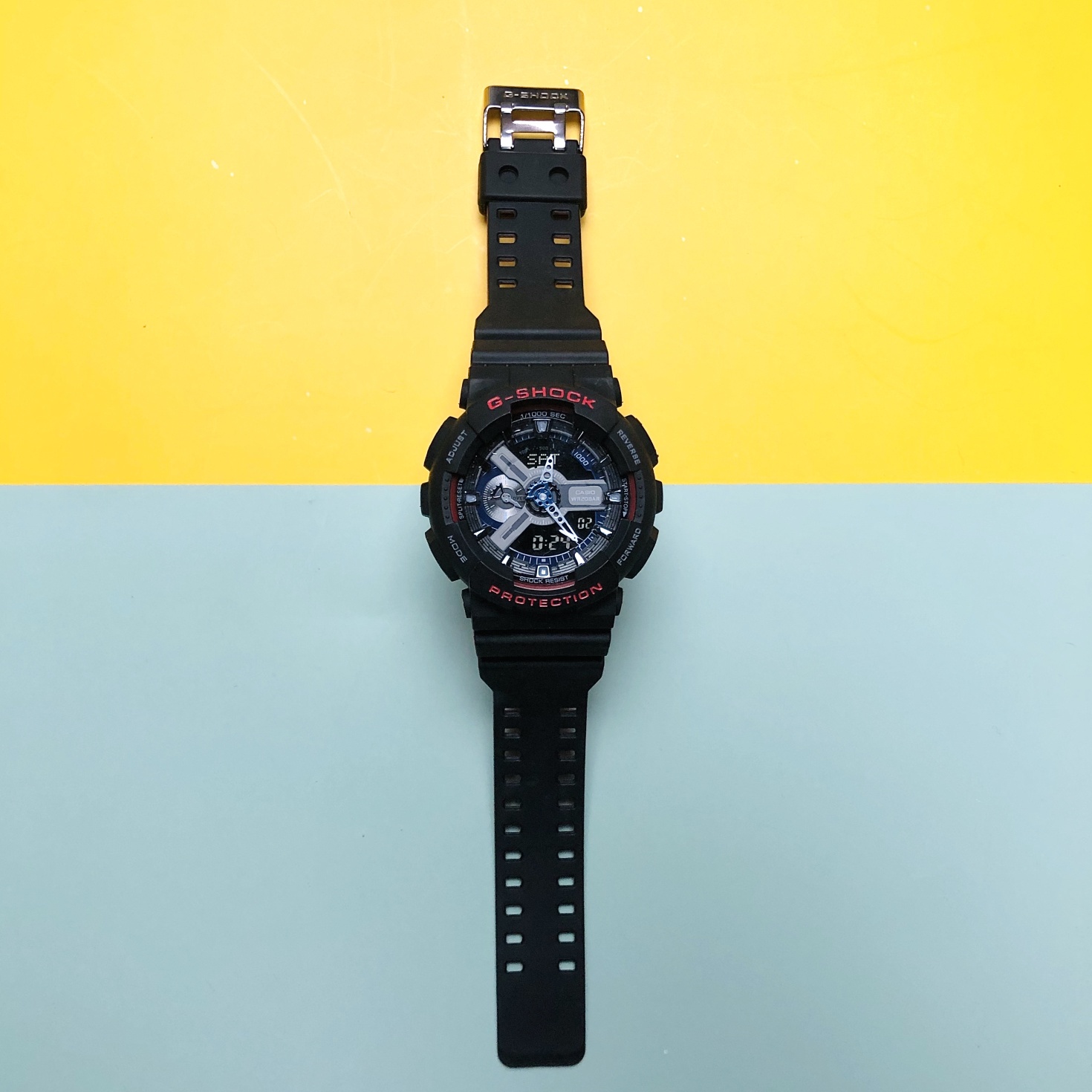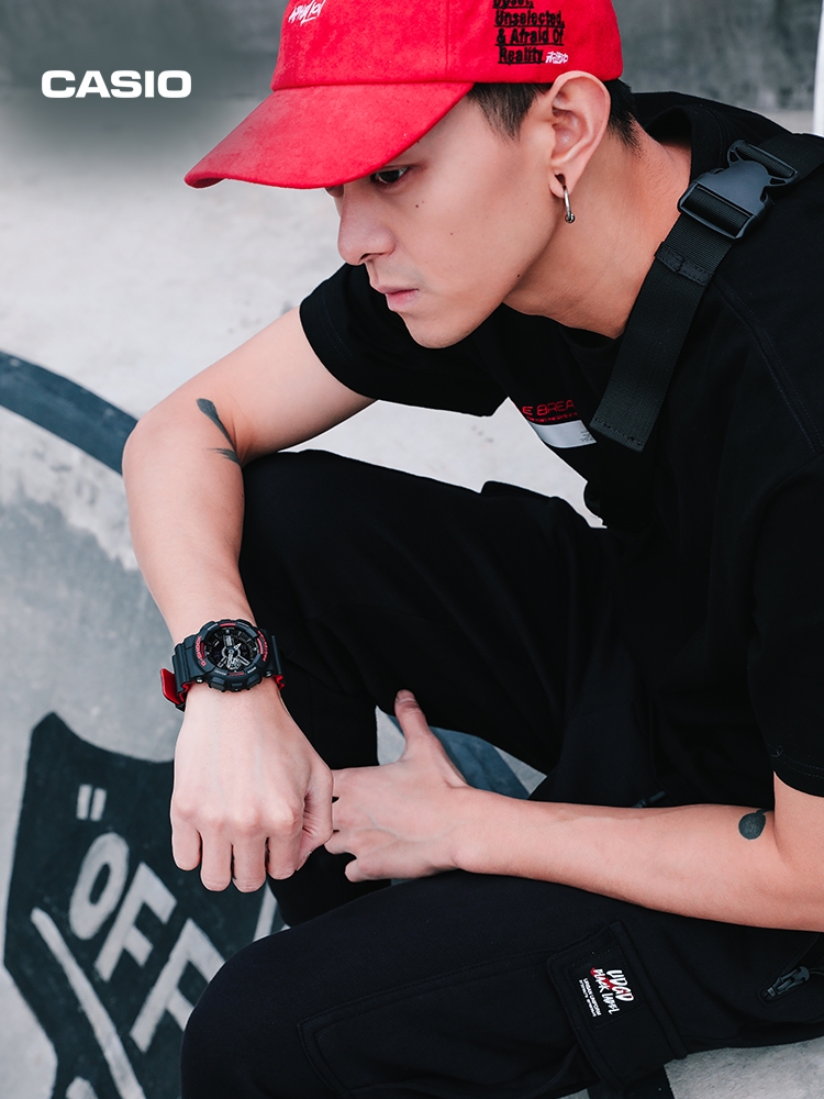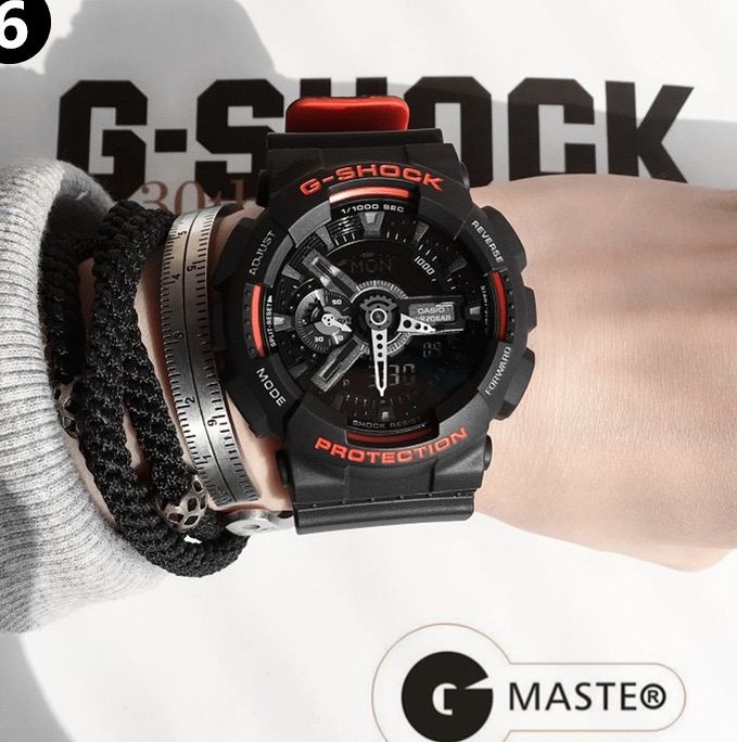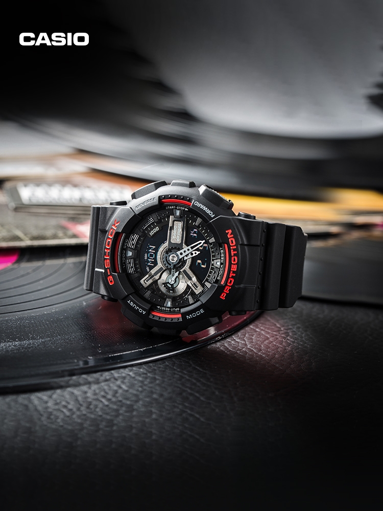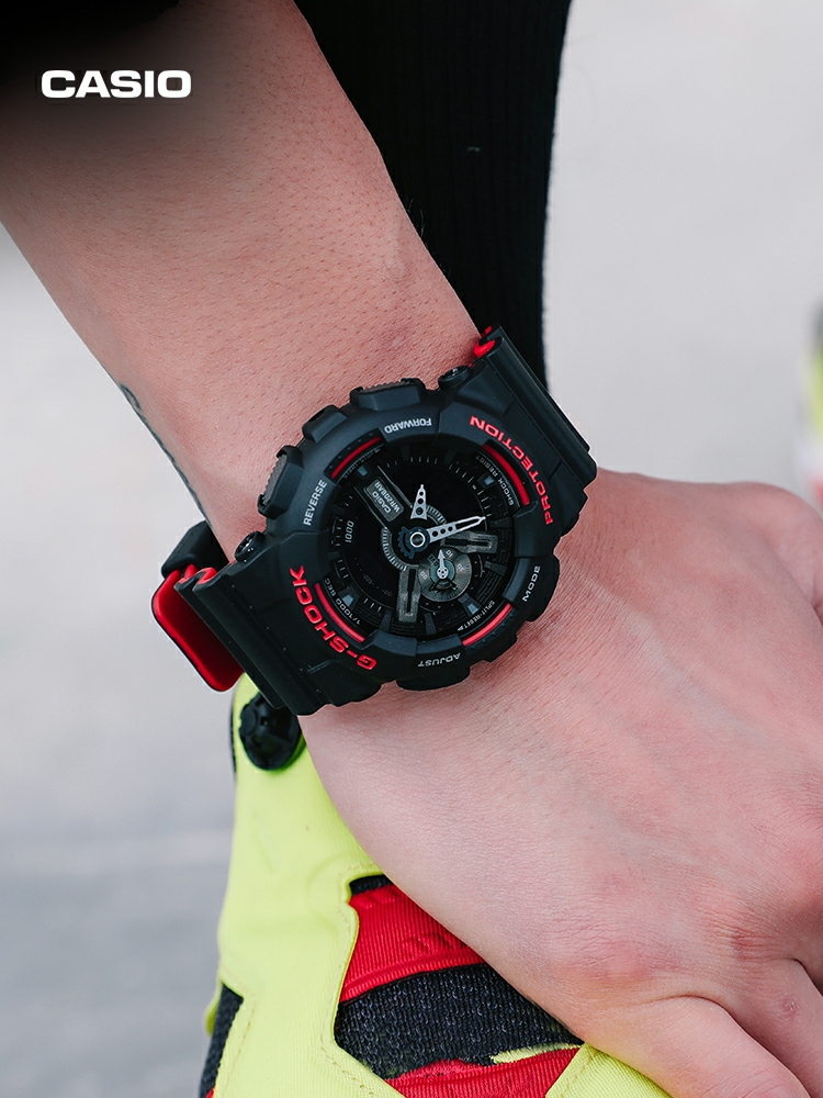 E0 Casio 卡西欧 GA-110hr 黑红双色表带 情侣款手表 采用原单日本机芯,性能稳定,正品1:1 开模,原版树脂表带,手感、重量、质感秒杀普通货,防水防震45°抬手灯1/1000秒表,好货耐造,经过专业QC质检,做工保证,专柜六件套包装