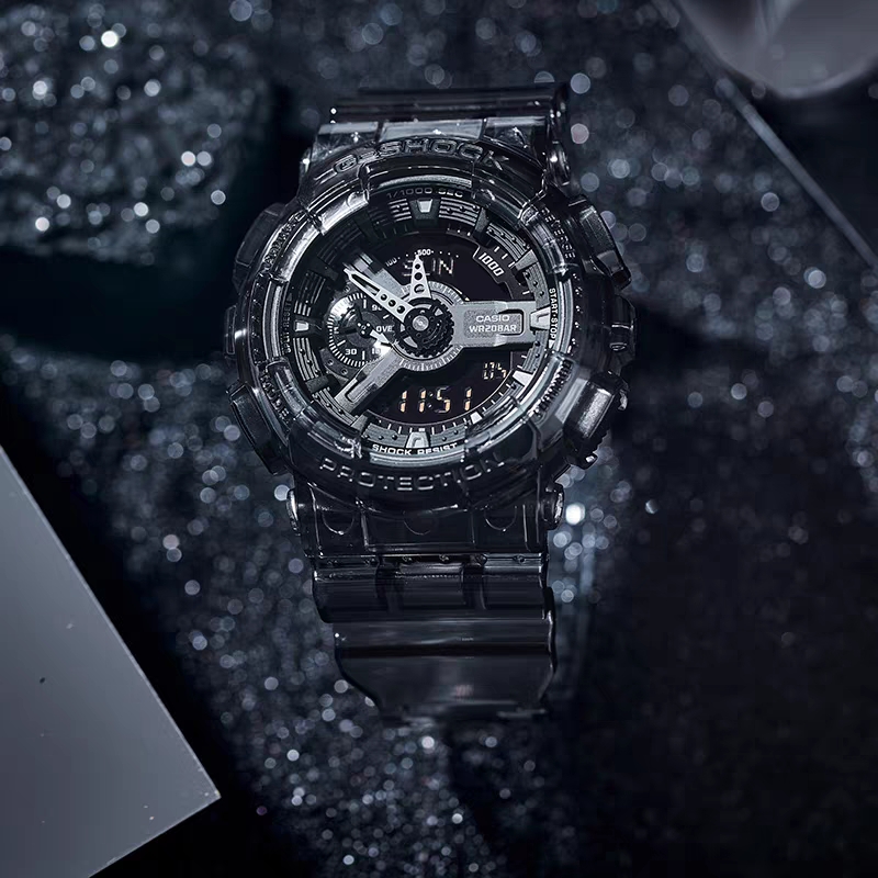 E0 Casio 卡西欧 GA-110SKE冰韧黑武士,G-SHOCK 系列高品质的追求,你值得拥有主要功能:自动LED照明,200米防水,世界时间,倒计时,闹铃,间歇响报,日历.尺寸:52mm大号。