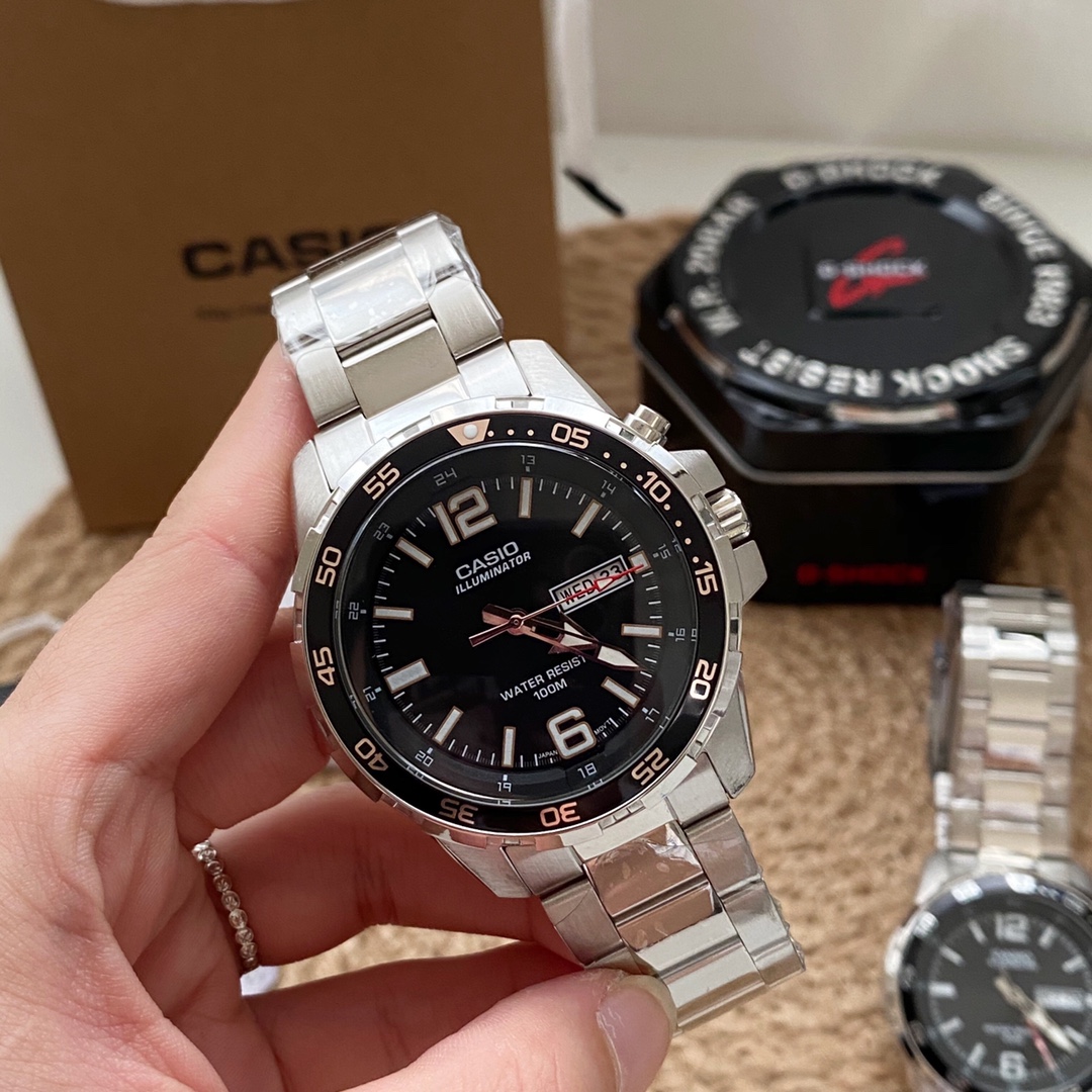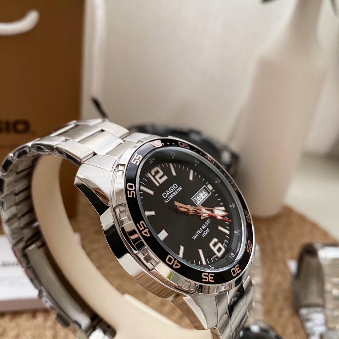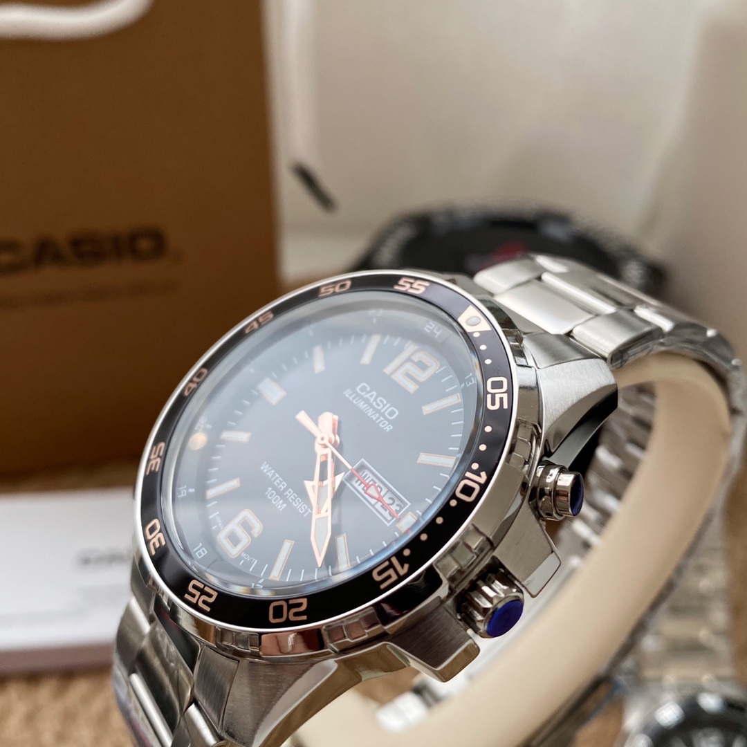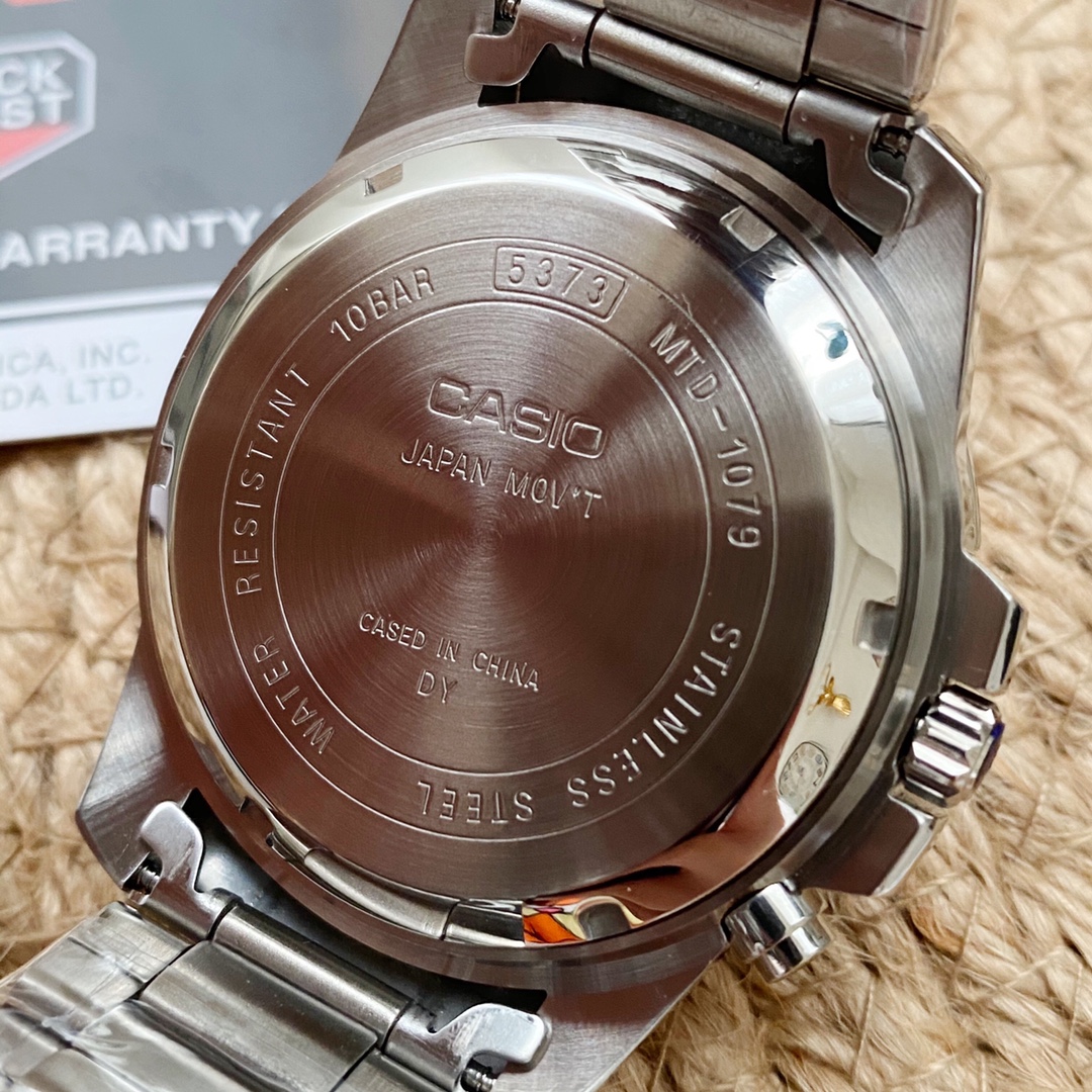 E0 Casio 卡西欧 MTD-1079D系列石英腕表 大表盘显示清晰,走时精准确,商务不锈钢表带,耐磨矿物质玻璃,配有指针刻度夜光和LED背光灯,让你在夜间畅行无阻生活防水表盘直径:44mm 表盘厚度:14.8mm