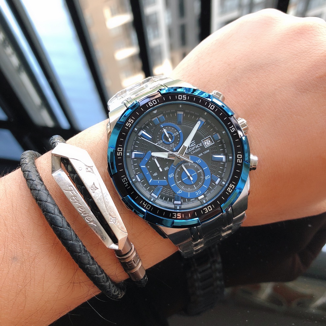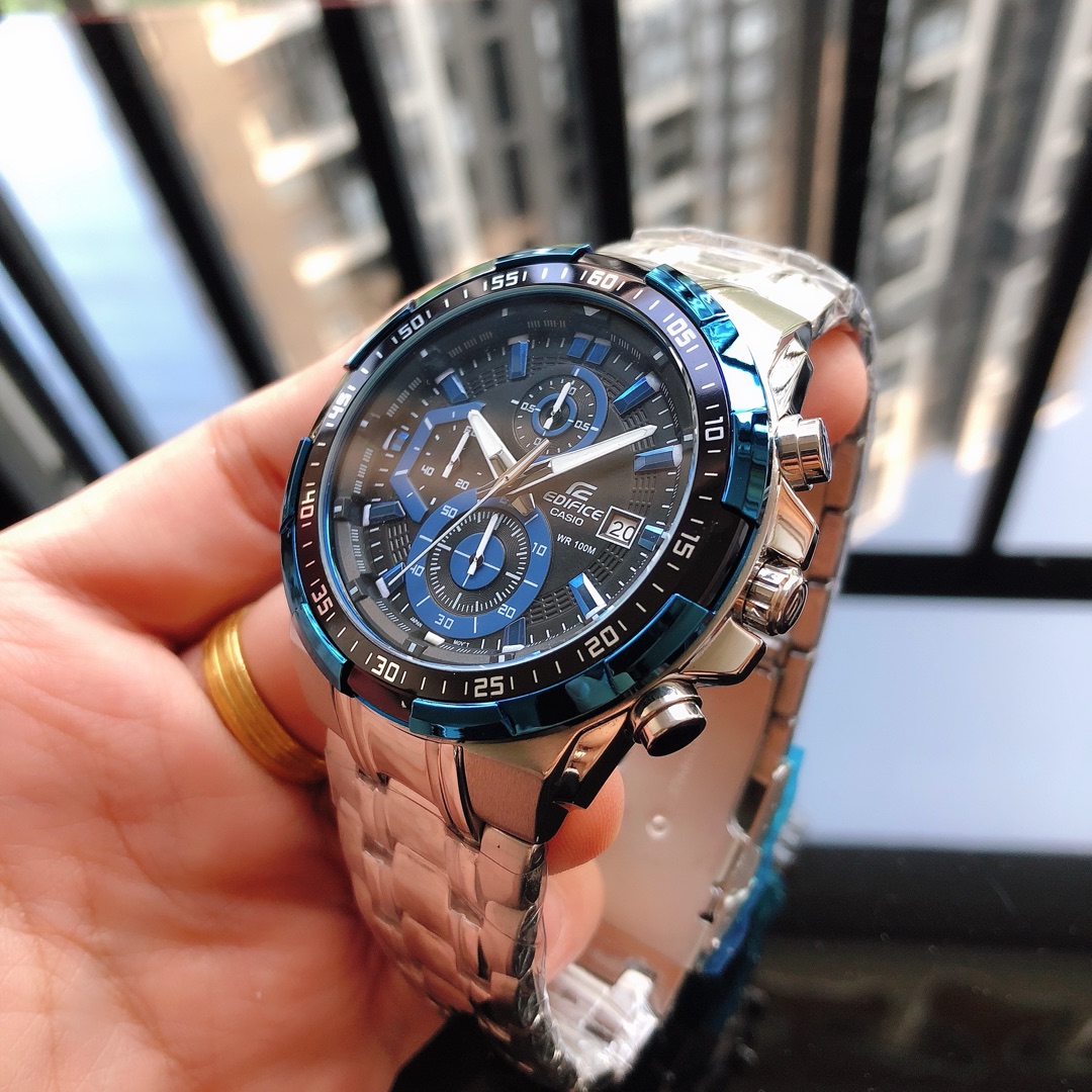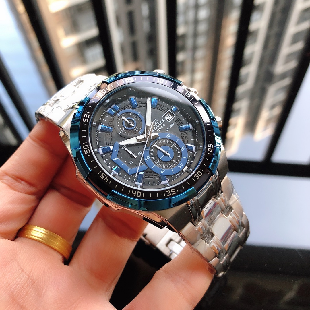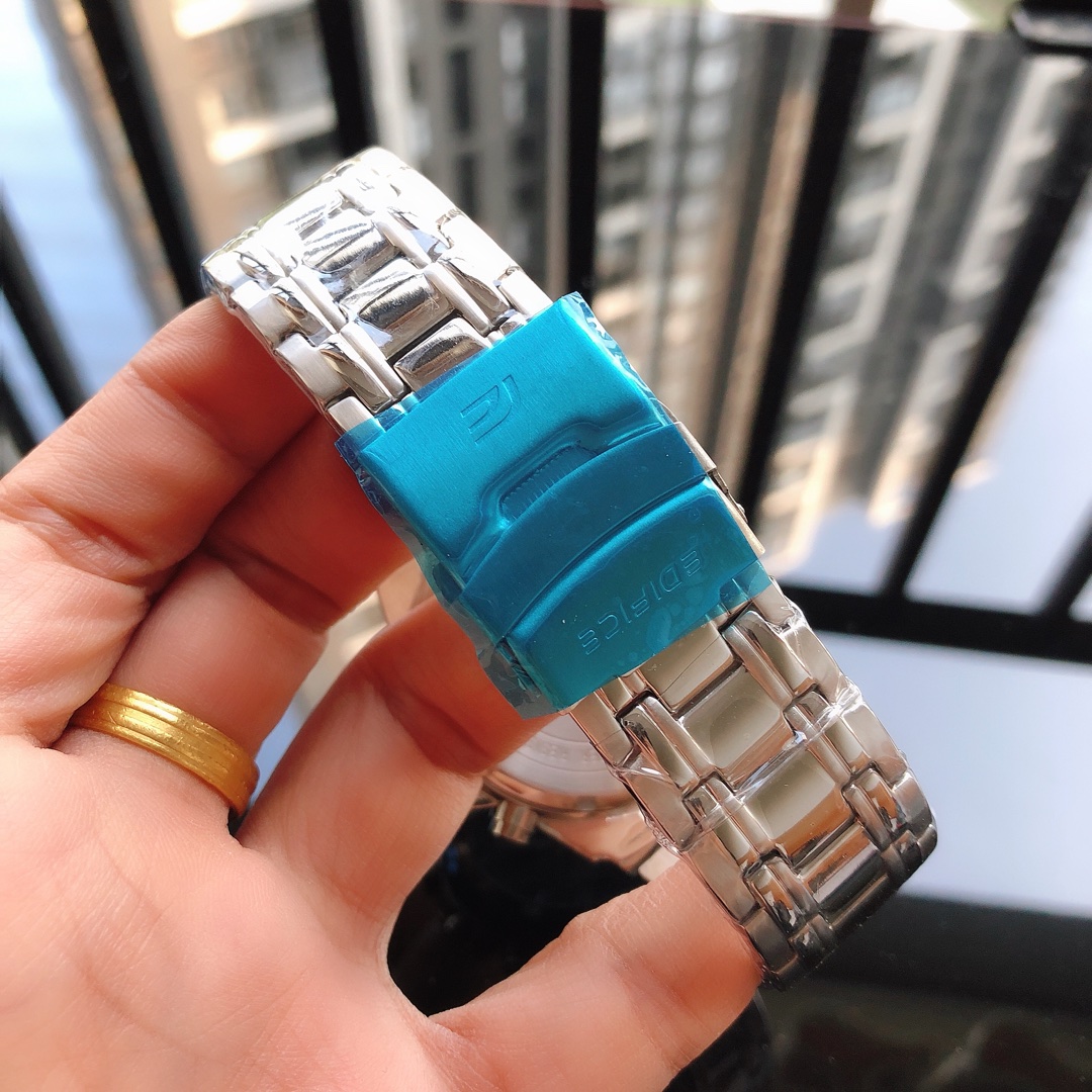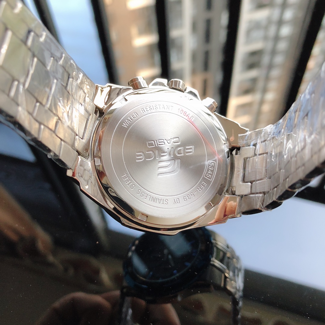 F5 Casio 卡西欧 CASIO 27类型:6针EF-559系列多功能男表 机芯:进口多功能原装跑秒石英机芯 材质:顶级316L精钢壳套 镜面:顶级金钢镀膜防刮镜面 表带:真牛皮表带/316精钢 尺寸:直径43.5mm厚度13mm