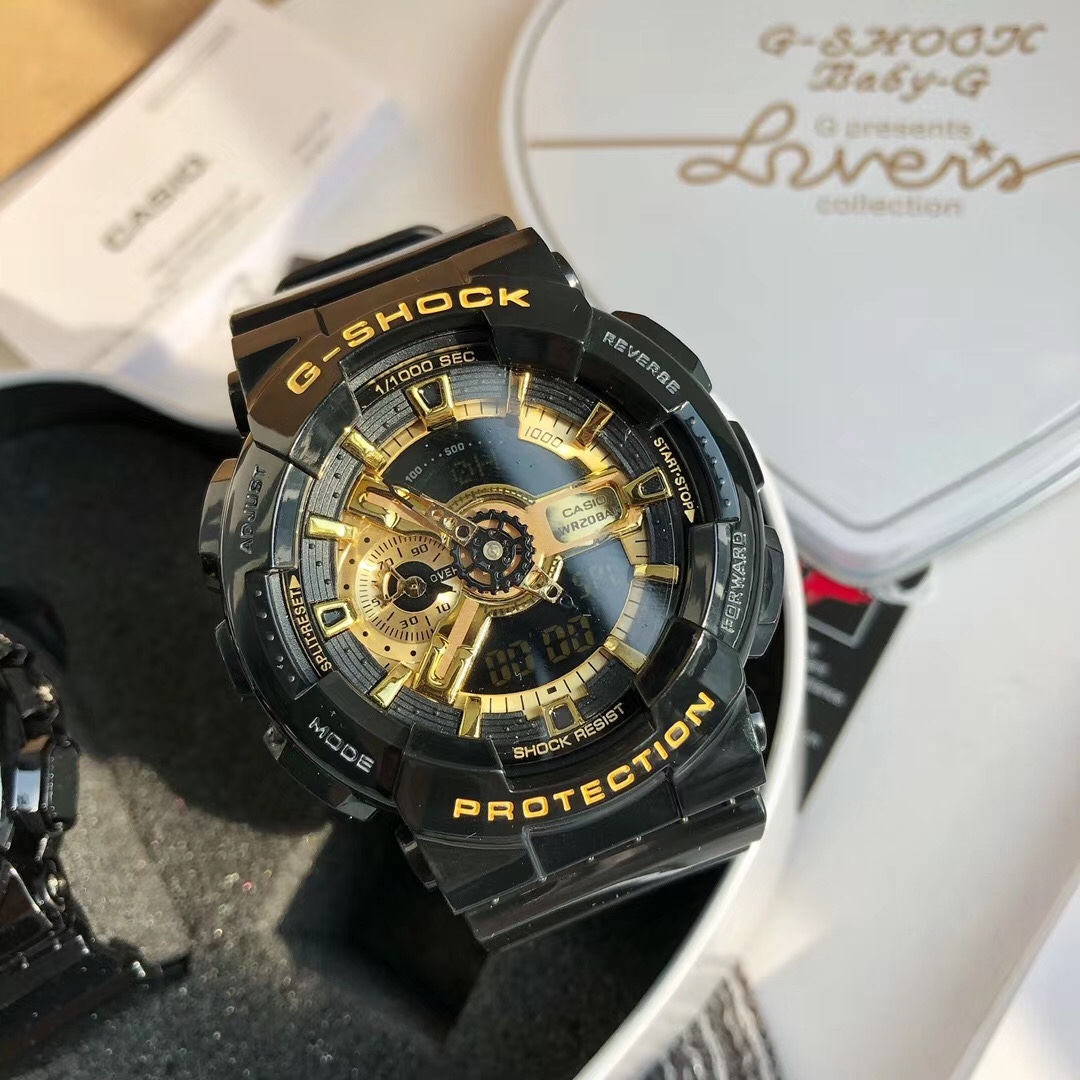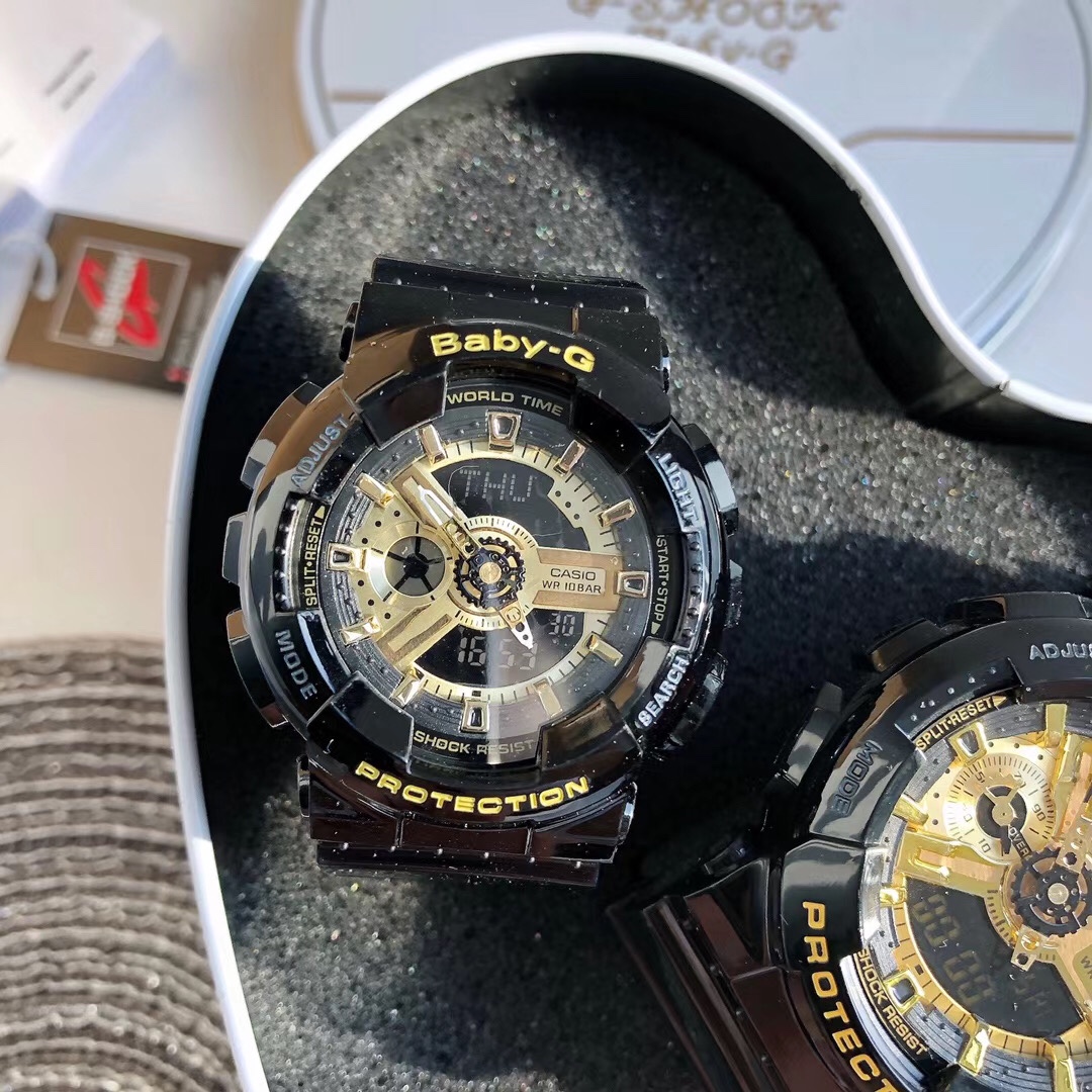 G5 情侣款 Casio 卡西欧 热卖对表, GA-110+BABY G,秒发 原单品质抬手灯,配备鉴定证书—G表— Casio 卡西欧 G-SHOCK–经典防震表盘设计配合冲击视觉的强烈色彩LCD液晶显示盘精确到1/1000秒的秒表计速功能防震防磁1200米防水48个城市时间倒计时闹钟全自动日历等多样强大功能