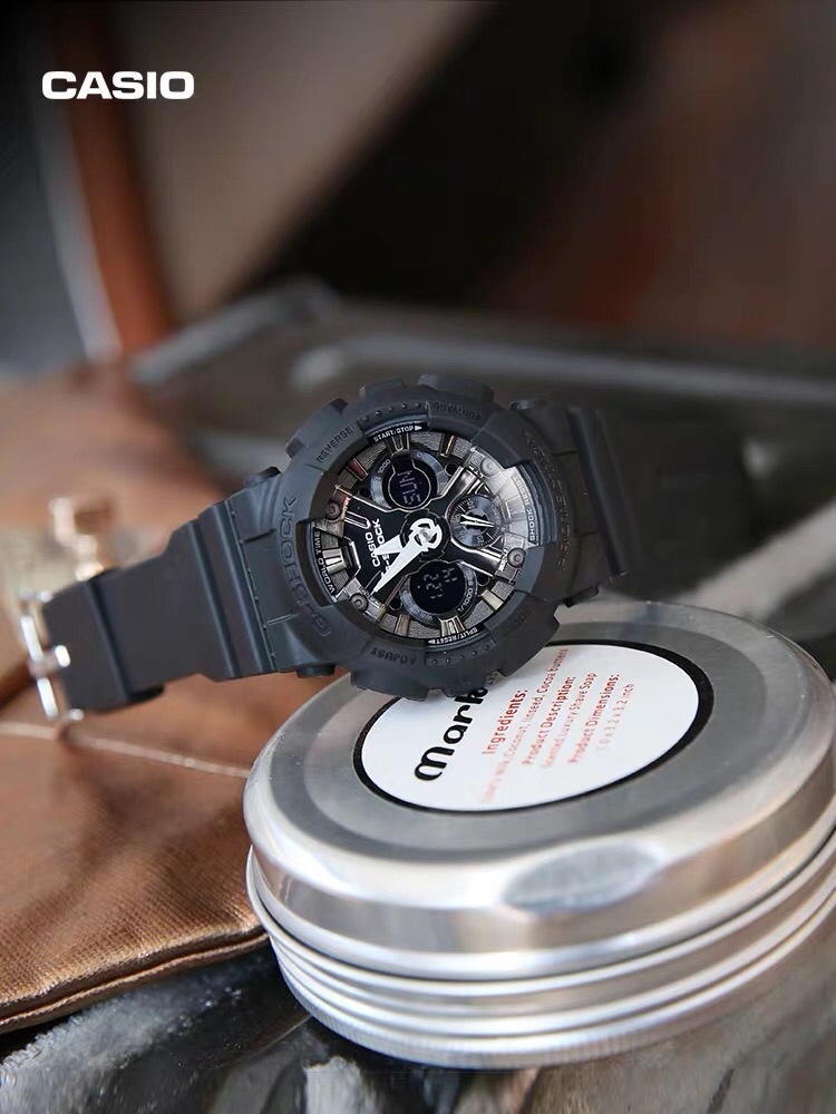 G5 Casio 卡西欧 G-SHOCK GA120系列 经典防震表盘设计,配合冲击视觉的强烈色彩LCD液晶显示盘,精确到1/1000秒的秒表计速功能,防震防磁,50M防水,48个城市时间,倒计时,闹钟,全自动日历等多样强大功能