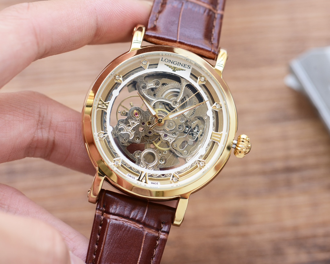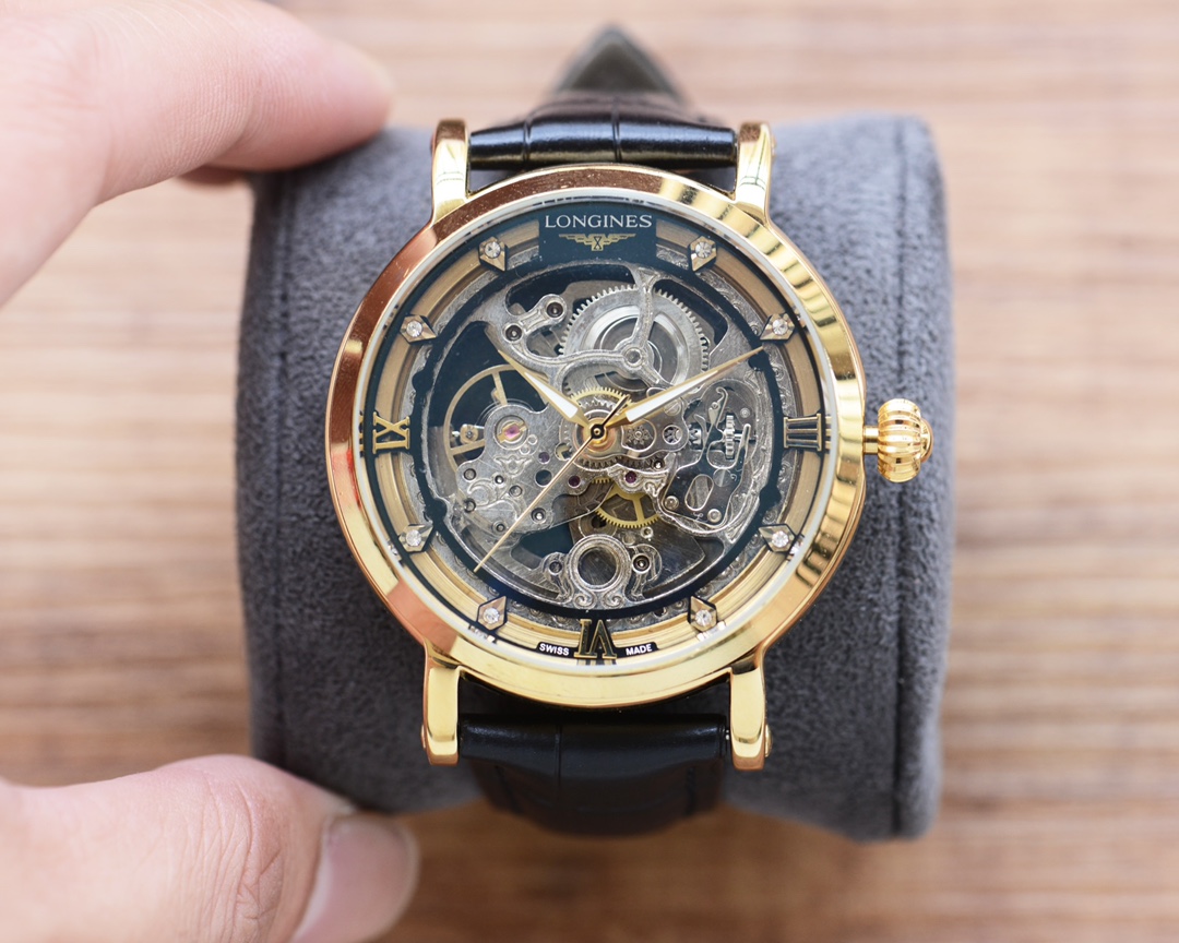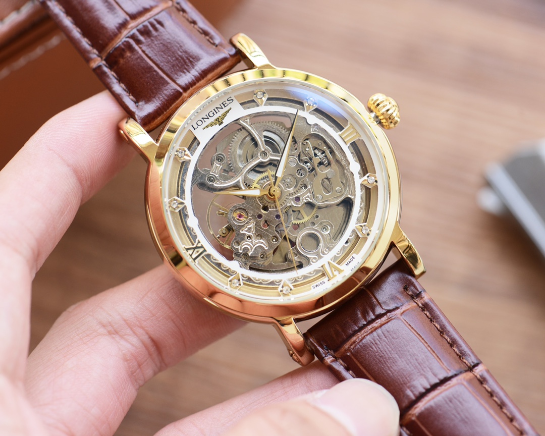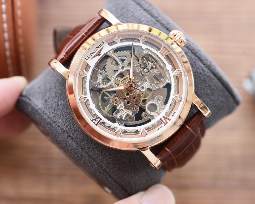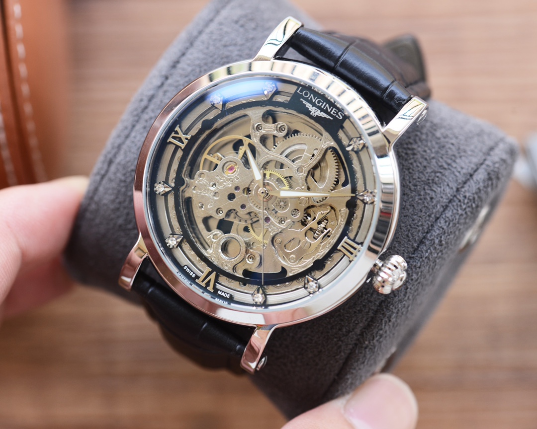 男人挚爱 镂空腕表 最新:浪琴 Longines 最佳设计独家首发 类型:精品男士腕表 表带:真牛皮表带 机芯:高端全自动机械机芯 镜面:矿物质强化玻璃更高清 品味高雅 浩瀚大气 匠心独运 腕间瑰宝 尺寸:直径41mm厚12mm热卖上市欢迎转载