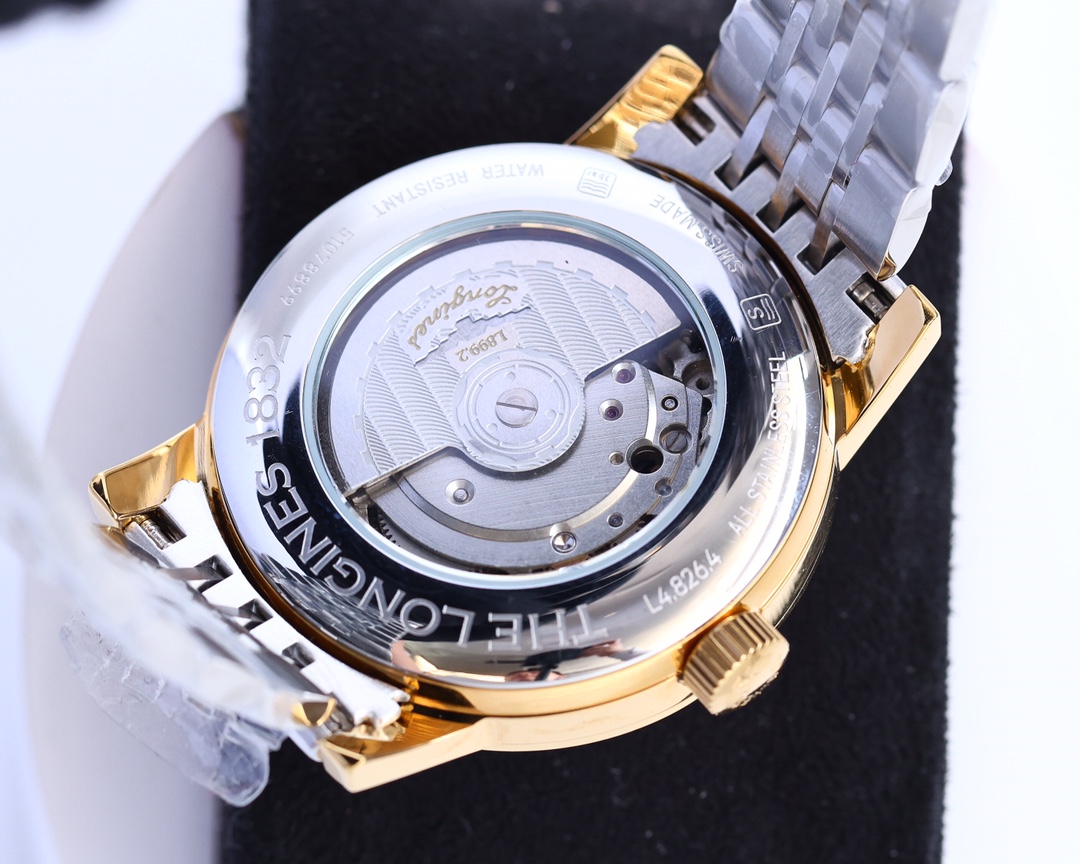 . 白壳.金壳 浪琴 Longines -制表传统系列/1832系列 机芯搭载全新原装西铁城8215全自动机械机芯修正L899陀片,走时精准,零维修 表壳顶级316L精钢表壳,双卜蓝宝石玻璃镜面通透抗磨,内侧带多层防反光涂层,防水30米 字面棒状时标,哑光表盘加上Swiss super-LumiNova夜光材料整点小圆丁和表针附带夜光功能, 完美复刻! 表带316L精钢表链或意大利小牛皮表带可换装折叠表扣 尺寸1:1尺寸40毫米 专注原装新机