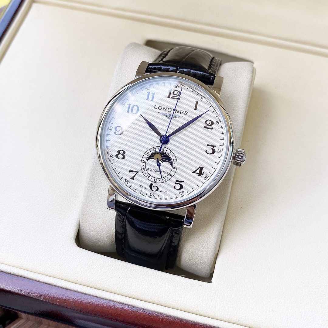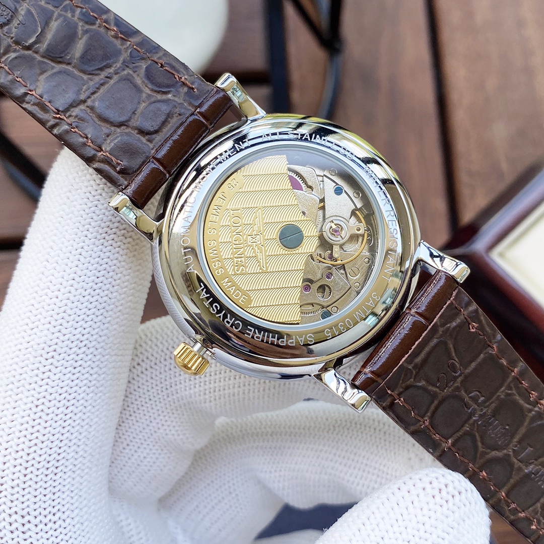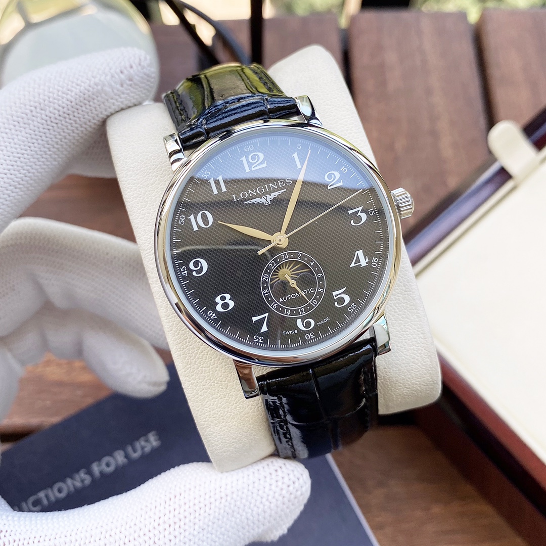 皮带,钢带。独家推荐 经典热卖浪琴 Longines 男士腕表 全自动机械机芯 矿物强化玻璃 316L精钢表壳 真皮/精钢表带 简约风格 商务休闲 尺寸:直径40mm 厚度12mm