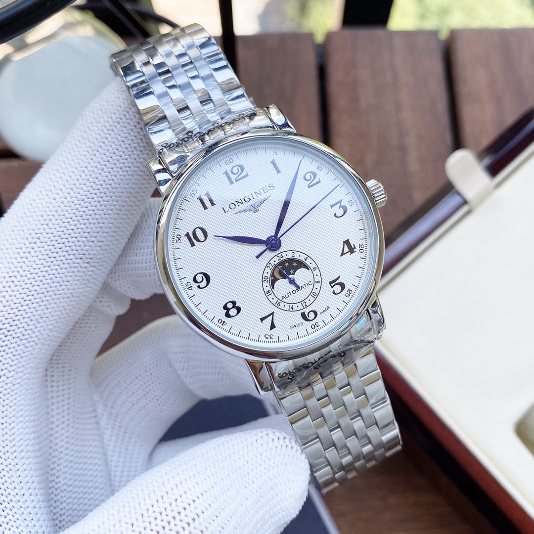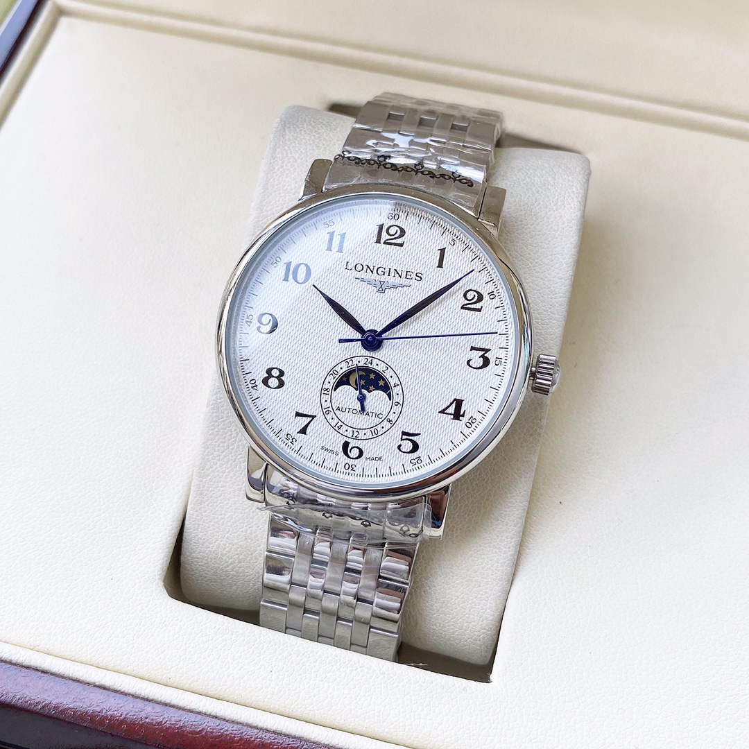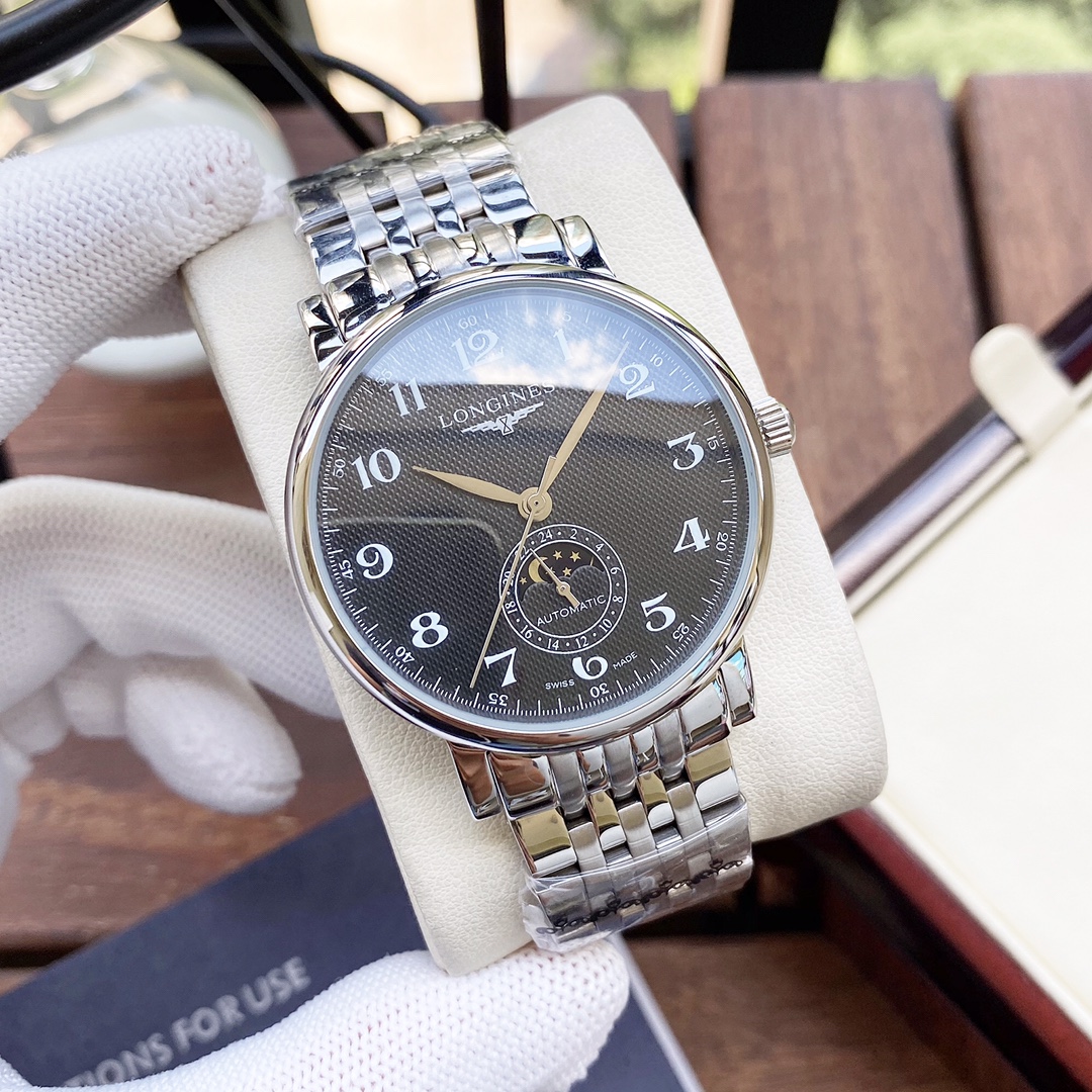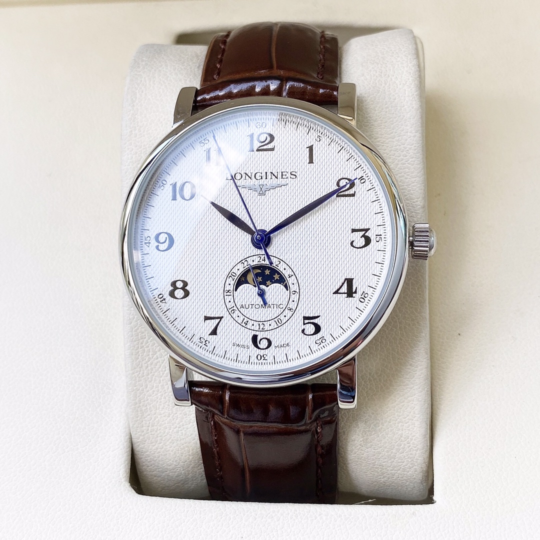 皮带,钢带。独家推荐 经典热卖浪琴 Longines 男士腕表 全自动机械机芯 矿物强化玻璃 316L精钢表壳 真皮/精钢表带 简约风格 商务休闲 尺寸:直径40mm 厚度12mm
