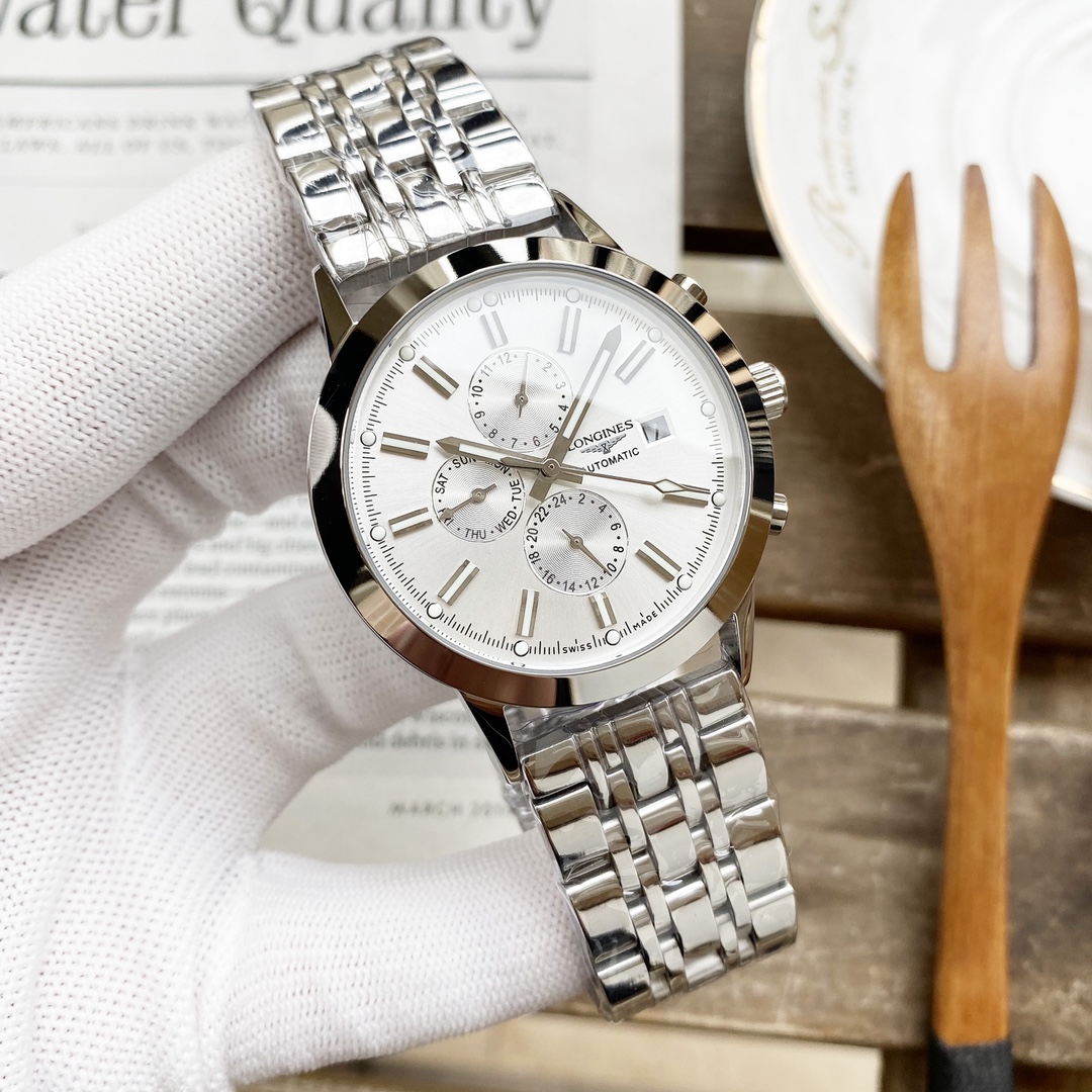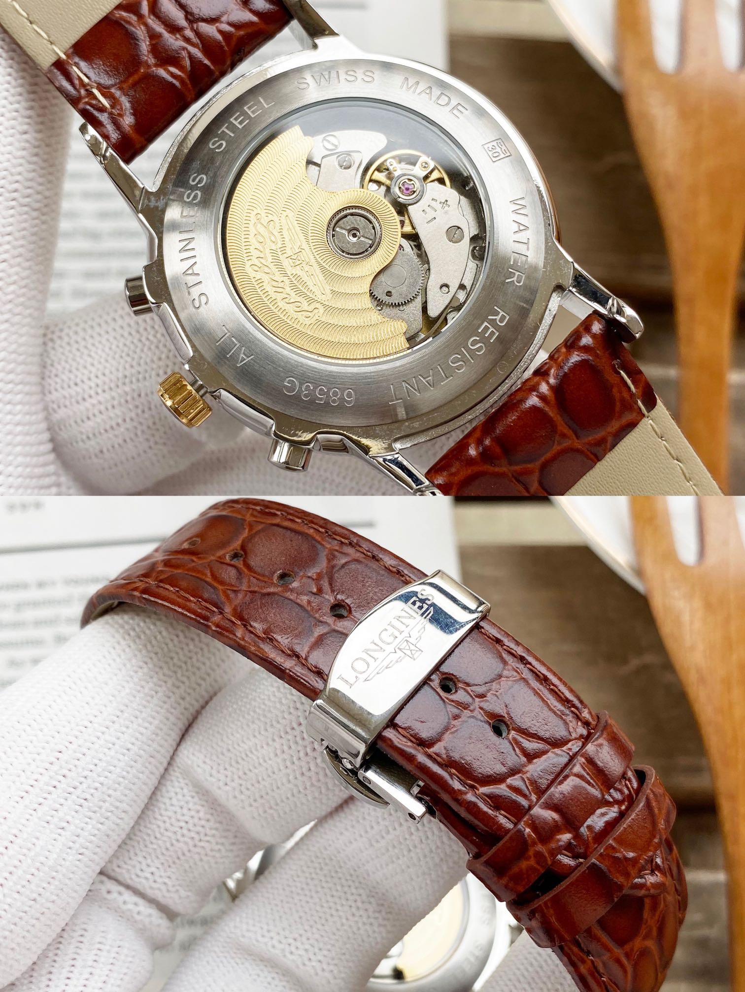 皮带 钢带 白金同价 浪琴 Longines 精品男士腕表表多功能设计,尊贵大气,绅士风范,卓越品质,热卖全城。采用全自动机械机芯,顶级316精钢表壳表带,矿物质超强镜面,直径41mm