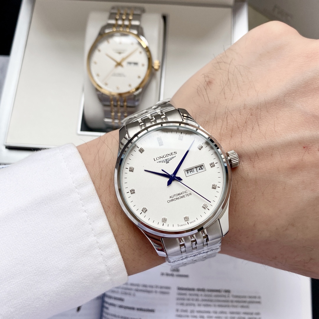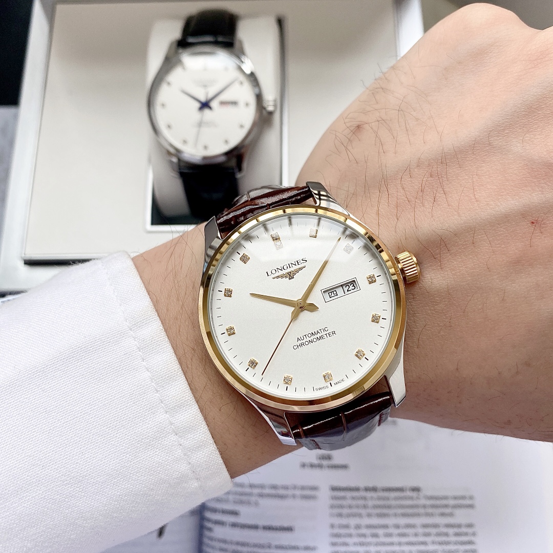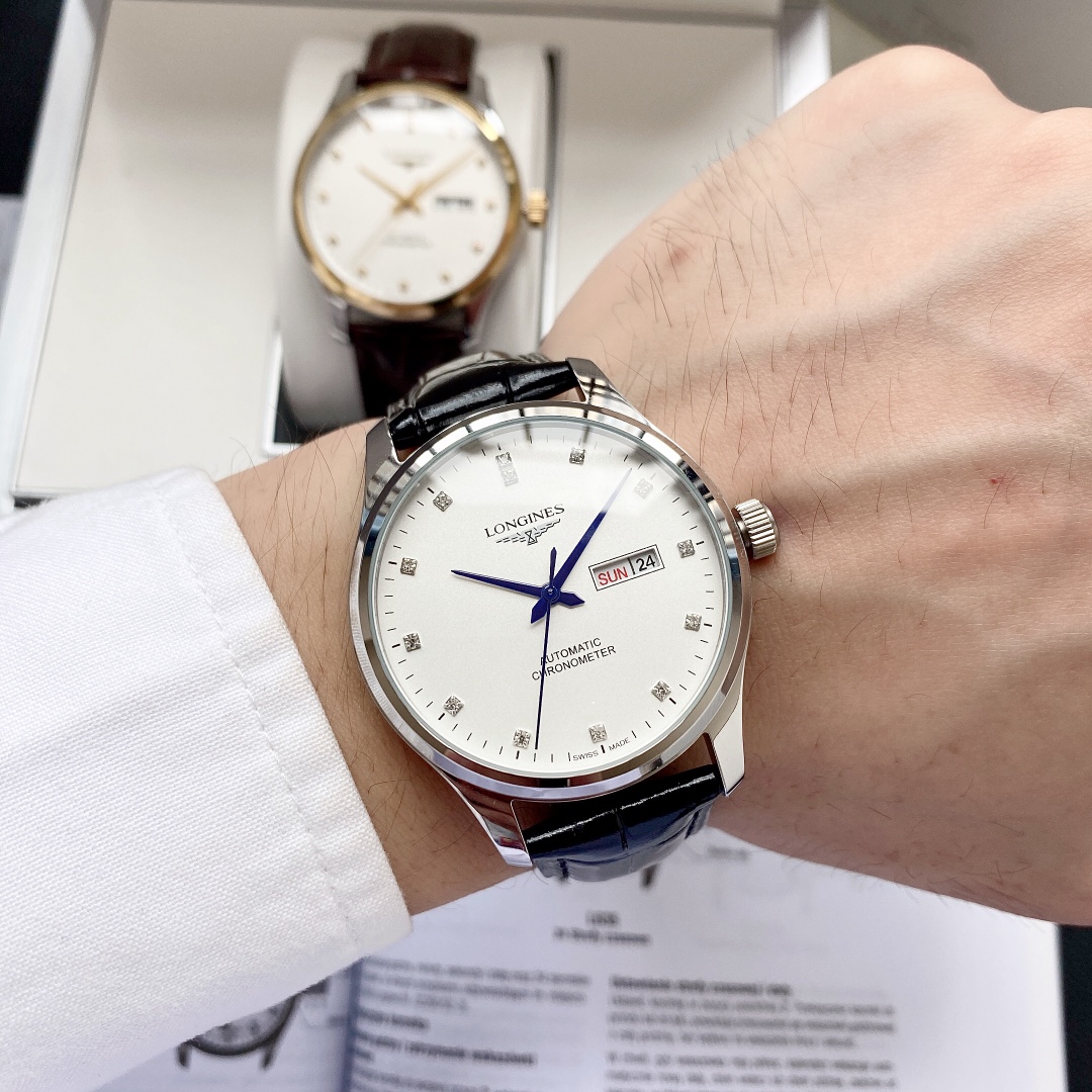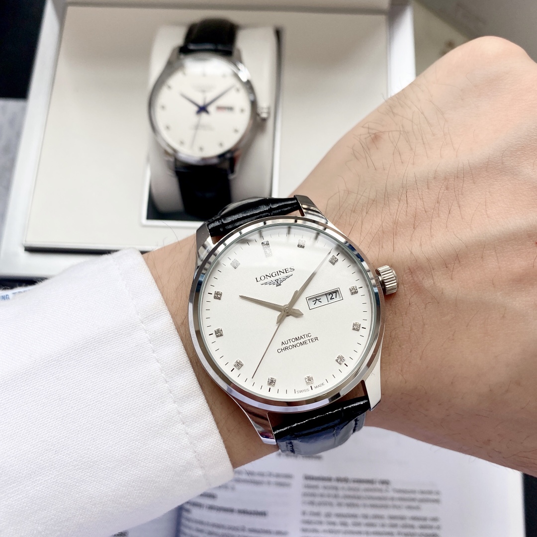 特别推荐 经典热卖浪琴 Longines 男士腕表 全自动机械机芯 矿物强化玻璃 316L精钢表壳 真皮/精钢表带 简约设计 商务休闲 尺寸:直径40mm 厚度12mm
