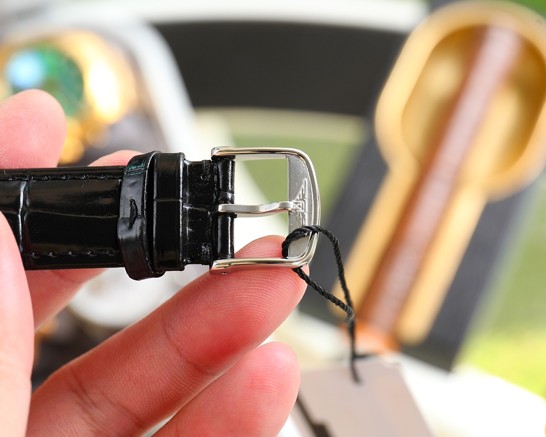 皮带,钢带 全新升级高端系列浪琴 Longines 复古系列L2.9.4.78.3月相腕表压轴登场!简约优雅尽显从容气度!表壳1.腕表尺寸40X11.5毫米,细节一丝不苟的还原复古系列表壳独特的优雅精髓,让佩戴者在佩戴过程中既贴手,且舒适。2.柳叶形蓝钢淬火表针,3.六点钟的月相功能与原装无二,均是一个月转一圈,操作和调试的方法吻合原版4.表盘上的贝壳纹理。表带扣意大利小牛皮表带搭配浪琴 Longines 经典蝴蝶式精钢表扣.4点位有快调按钮调6点位星辰日历