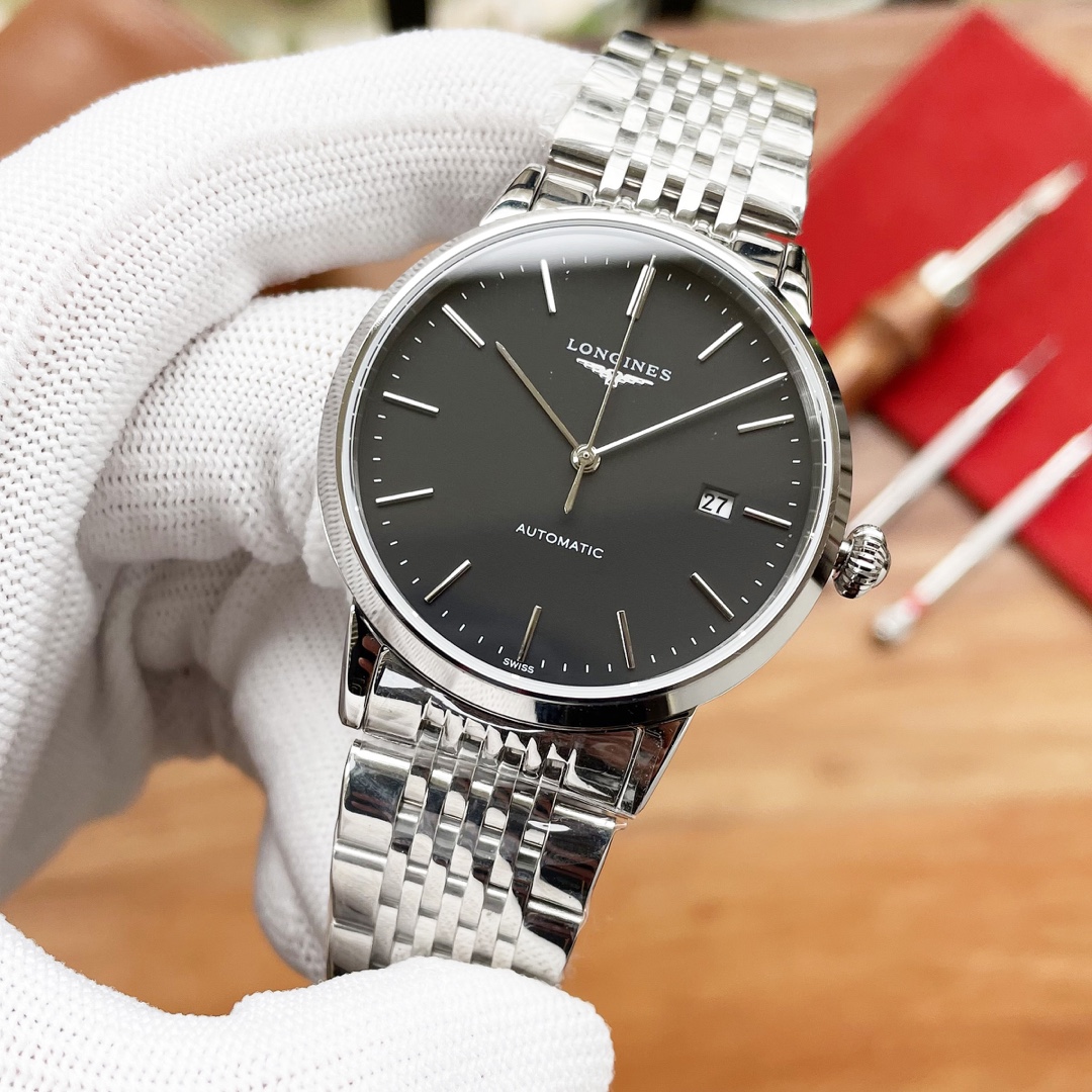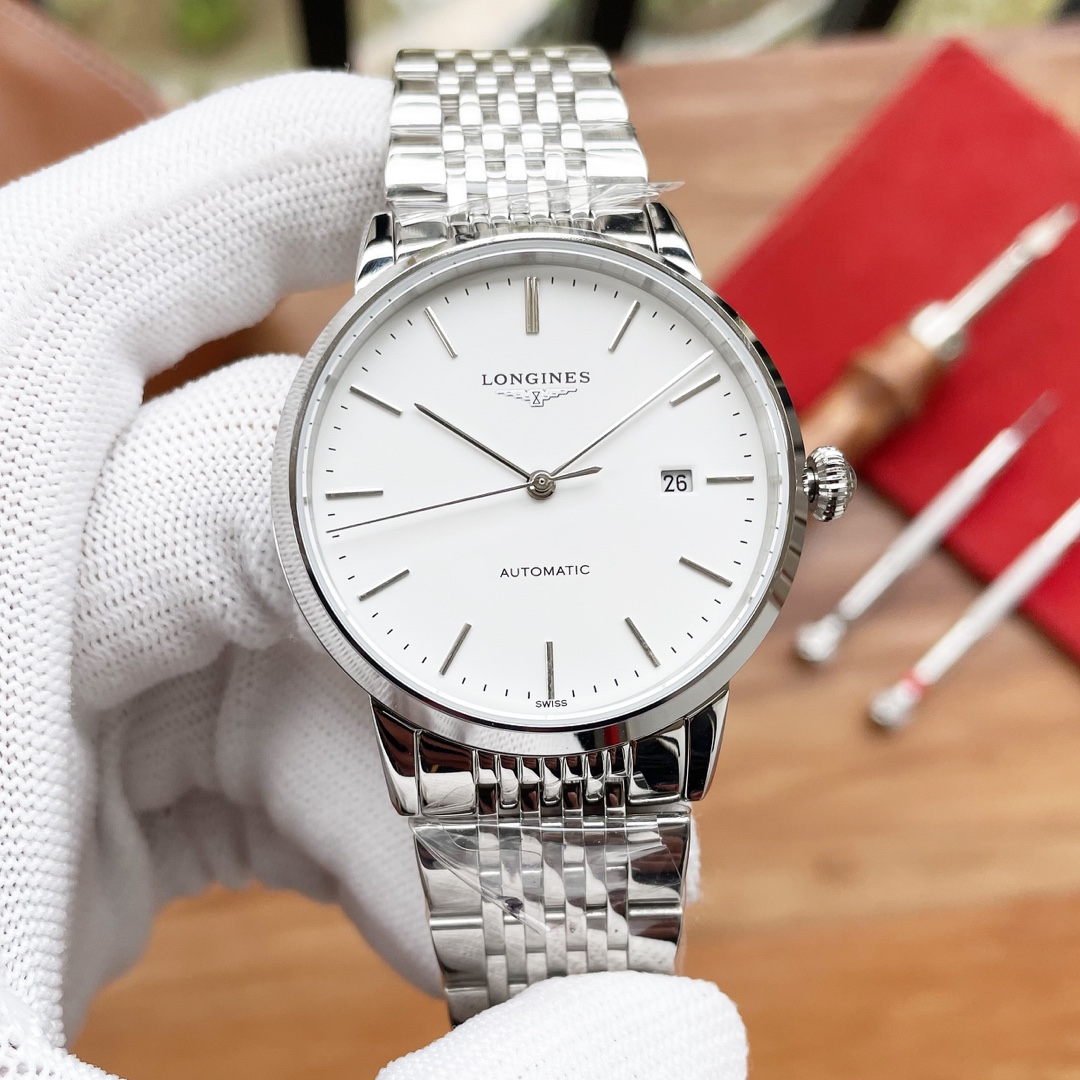, 皮带,钢带 独家首发 高清实拍 优质产品 沉稳有型 魅力不凡 简约热卖 品牌:浪琴 Longines 三针设计 类型:精品男士腕表 表带:316精钢/真牛皮表带 机芯:高端全自动机械机芯 镜面:矿物质强化玻璃镜面更高清 品味高雅 浩瀚大气 匠心独运 腕间瑰宝 尺寸:直径41mm厚12mm热卖上市欢迎转载