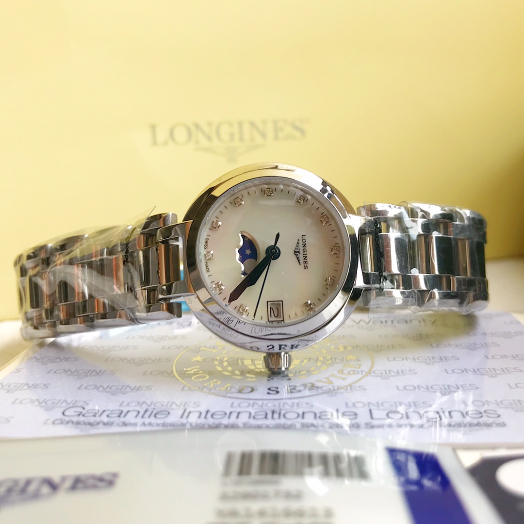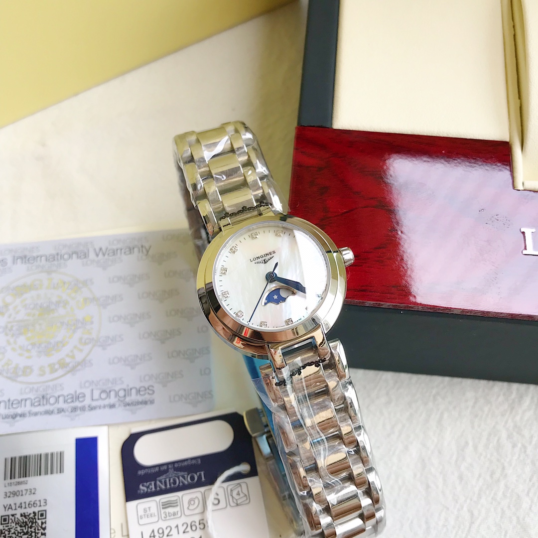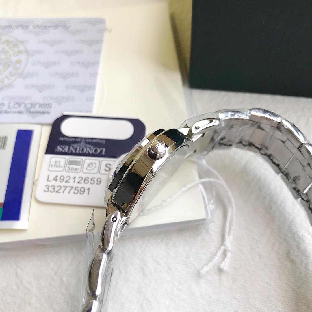 J5 / 浪琴 Longines 心月银色之星系列腕表。316精钢材质,进口石英机芯,大方优雅的圆形壳套设计,衬托出手腕线条的纤细柔美。精致简洁的表盘,令腕表轮廓更加柔和,璀璨流溢的钻石,为腕表更添动人风采。其魔幻般的优雅吸引着所有倾情于现代精致优雅风尚的女性。端庄秀丽精致小巧,提升女性魅力的利器。尺寸30mm。