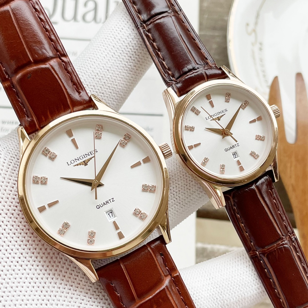 J5 白壳 玫壳 最新浪琴 Longines 情侣对表 原装进口石英机芯 钢化玻璃 316L精钢表壳 直径男40mm女30mm 厚8mm如果今天的阳光停止了它耀眼的光芒。那么你的一个微笑,将照亮我的整个世界 实物拍摄 品质如一