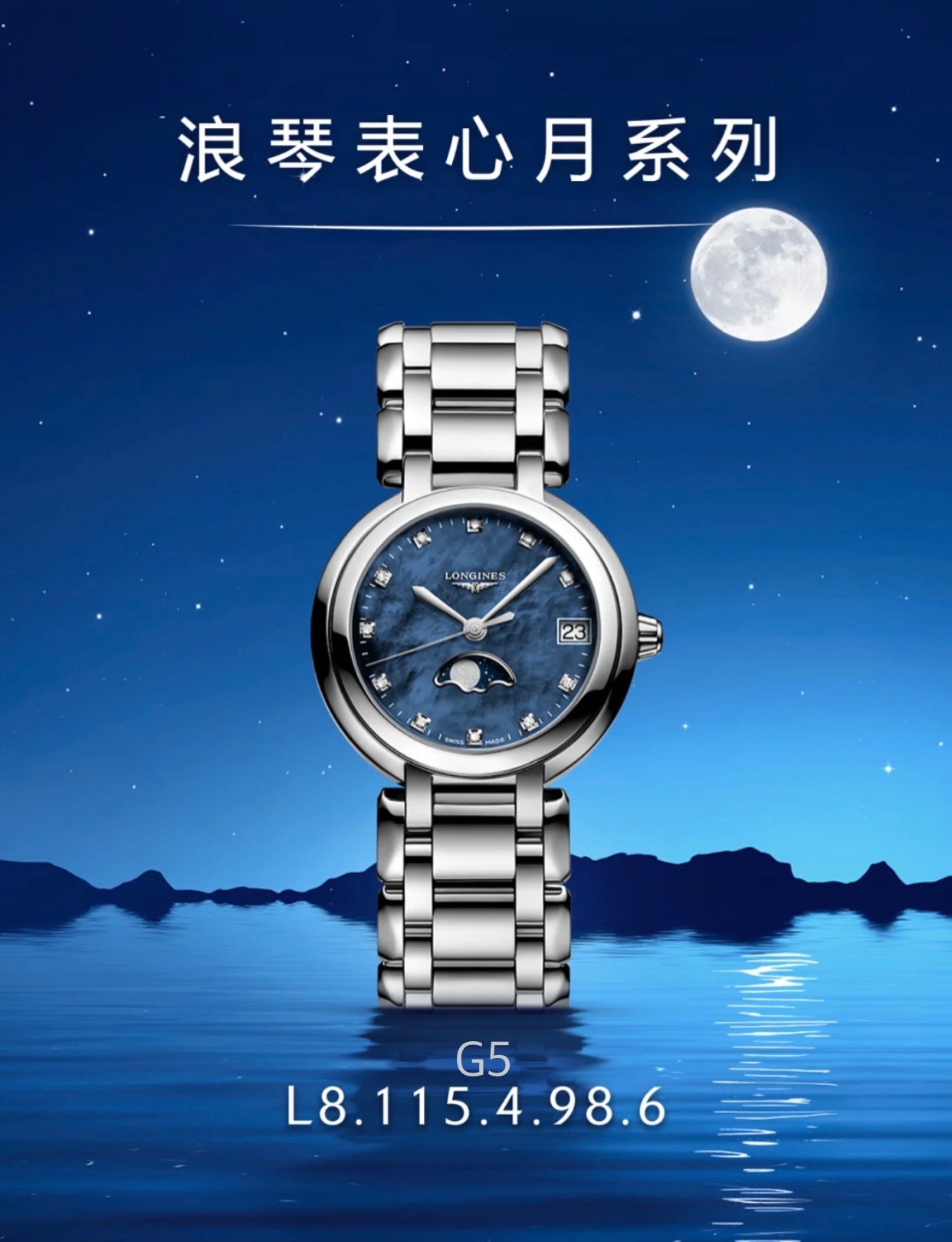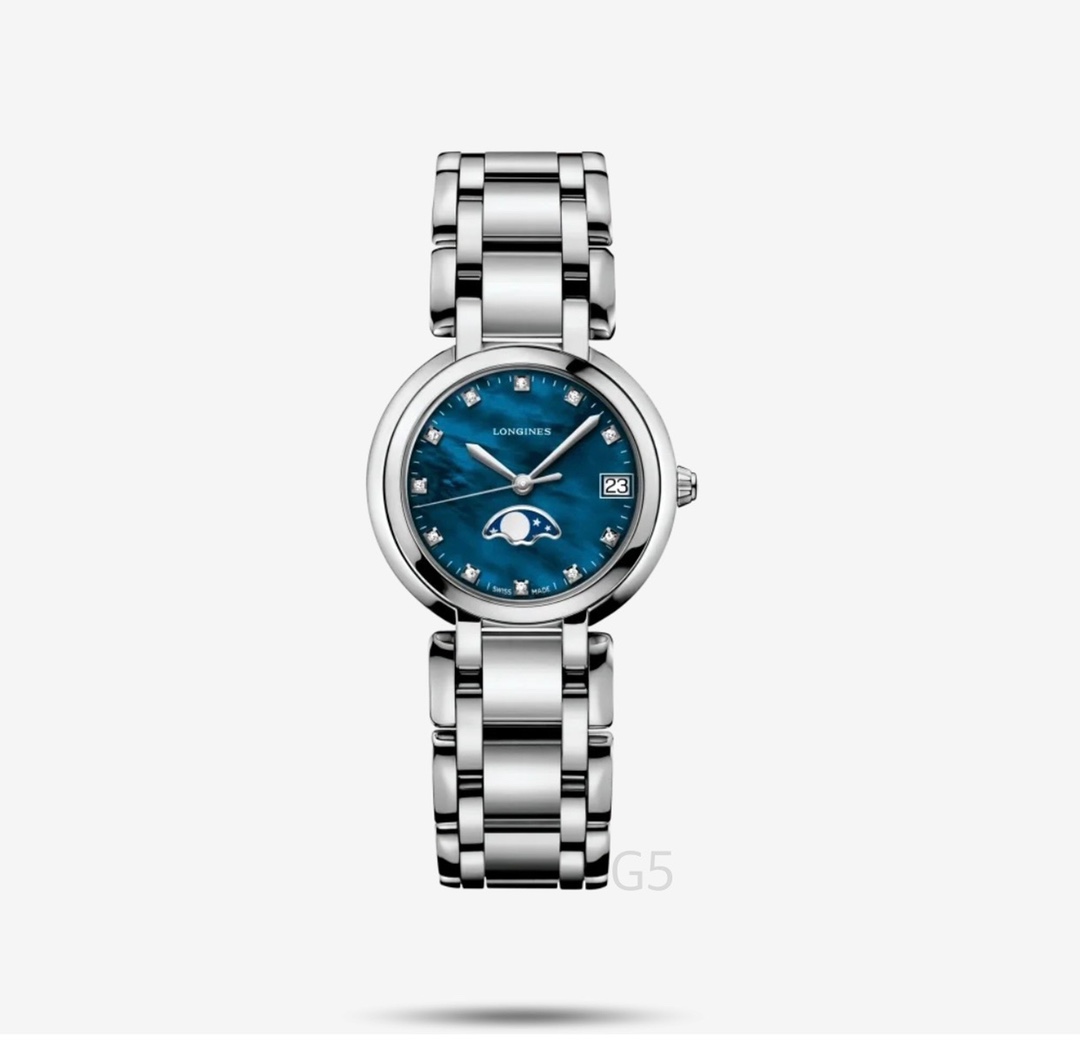 K0 浪琴 Longines 心月系列女士腕表,最新蓝贝母面来啦!超级热门!进口石英机芯,精钢圆形表壳,表径30.5mm,抗磨损合成双卜蓝宝石玻璃数据同步正品,精钢表链搭配原装三折式表扣。