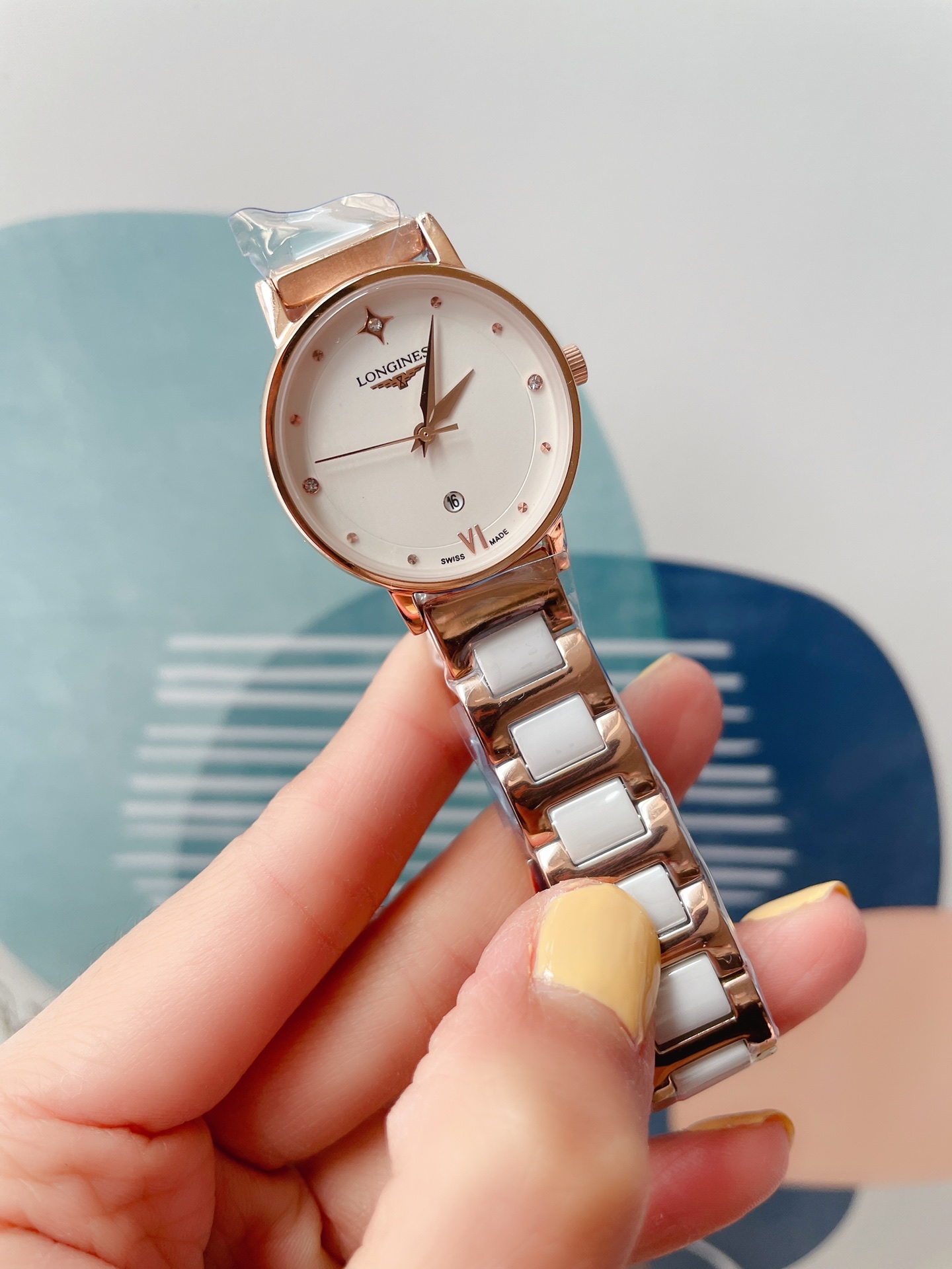 K0 陶瓷. 最新浪琴 Longines 简约大气女款 进口石英机芯 矿物质玻璃镜面 316L精钢表壳 直径30mm厚8mm 该款腕表备受女性喜爱,在不同的场合映耀着她们各自的独特个性与迷人风华