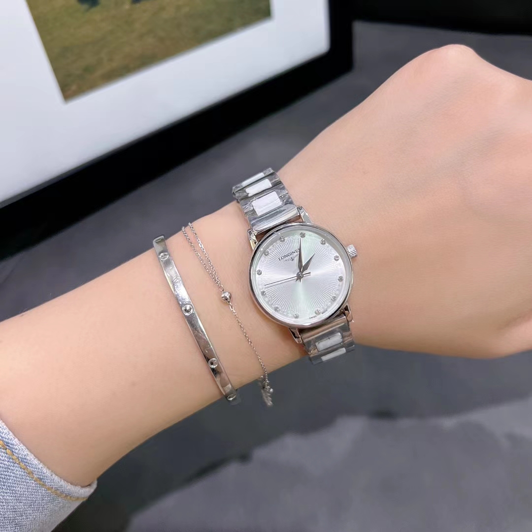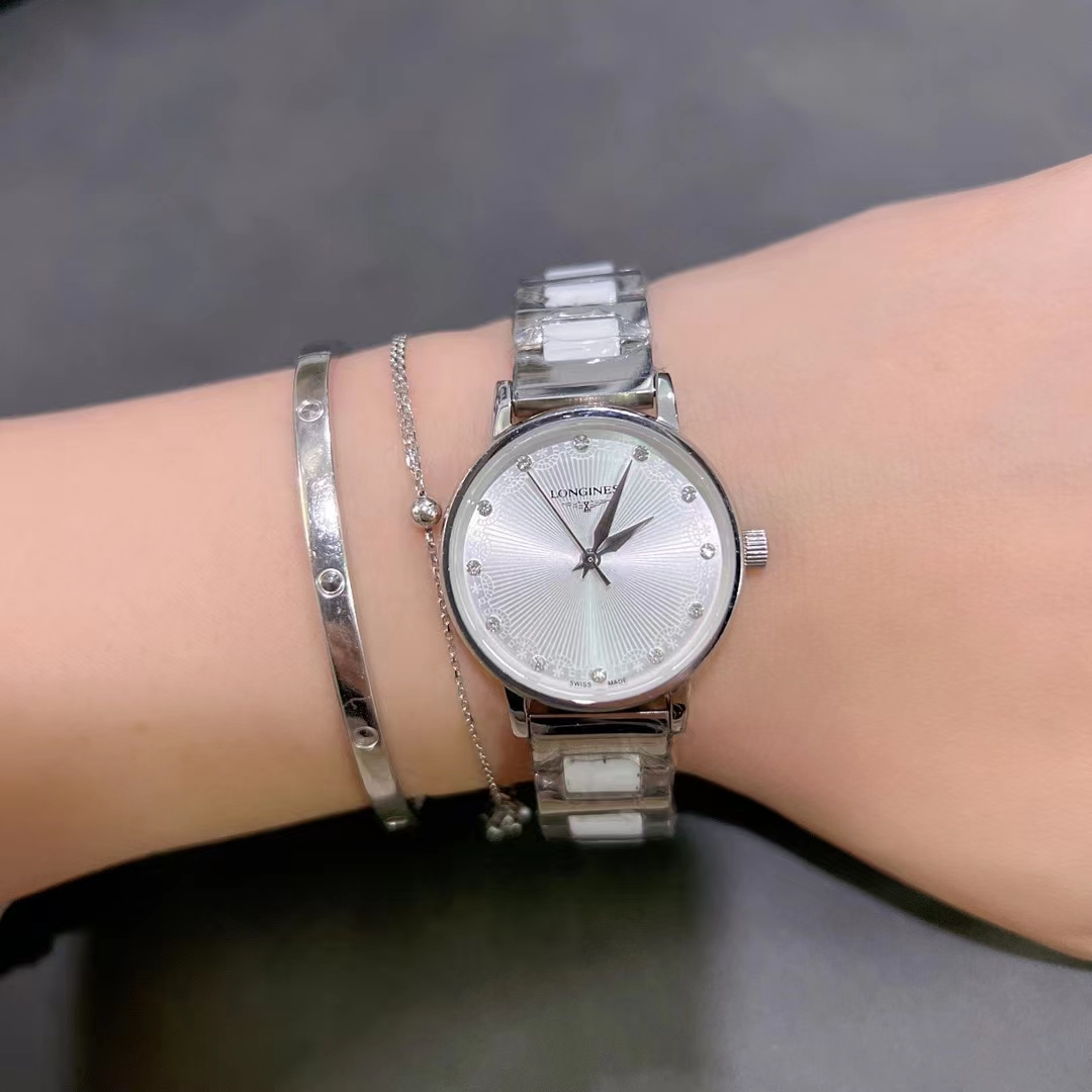 K0 陶瓷. 浪琴 Longines 简约时尚 女士腕表,精致做工,风格时尚潮流,进口石英机芯,矿物强化玻璃镜面, 表带材质316精钢,表扣蝴蝶双按扣,直径30MM,厚8mm~~,轻奢简约,时尚百搭,实物拍摄,品质如一!!!
