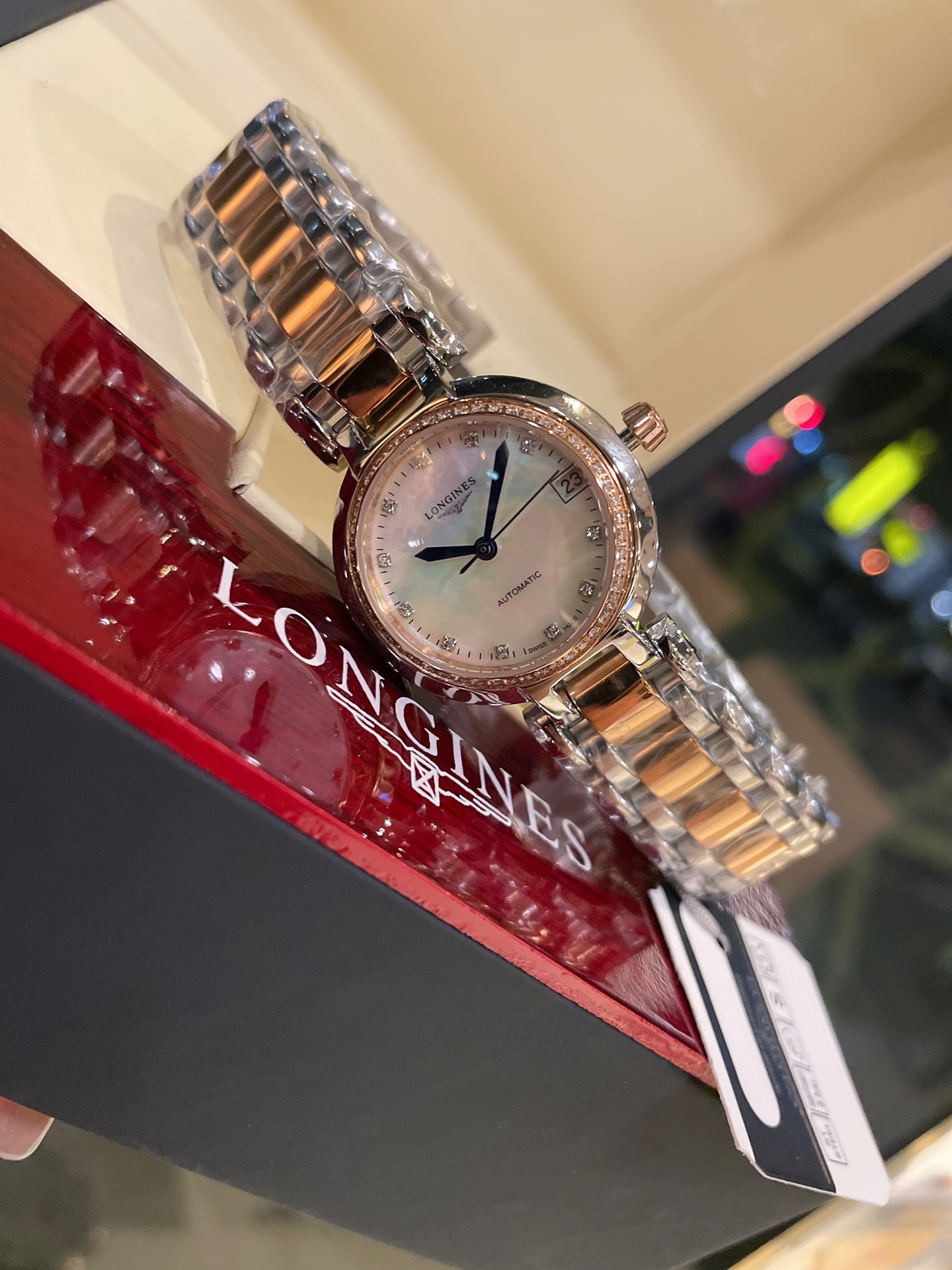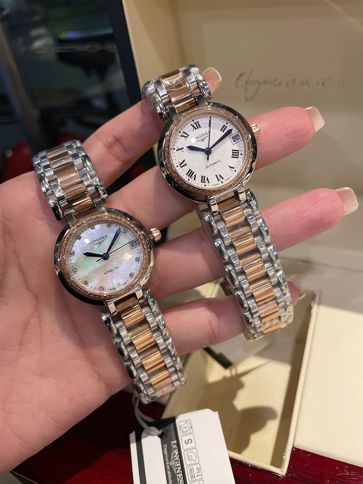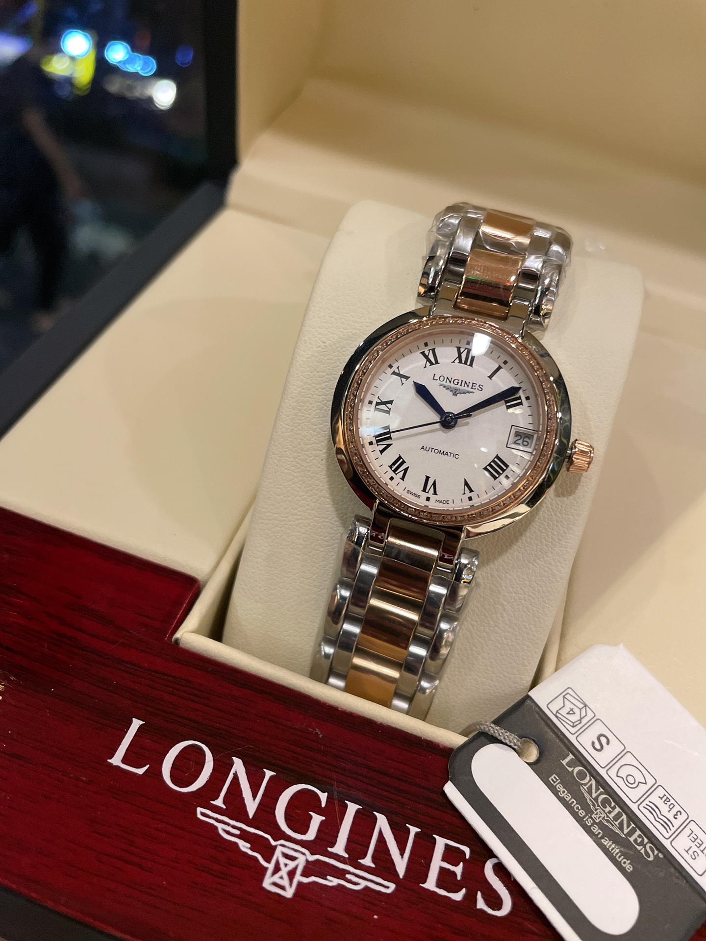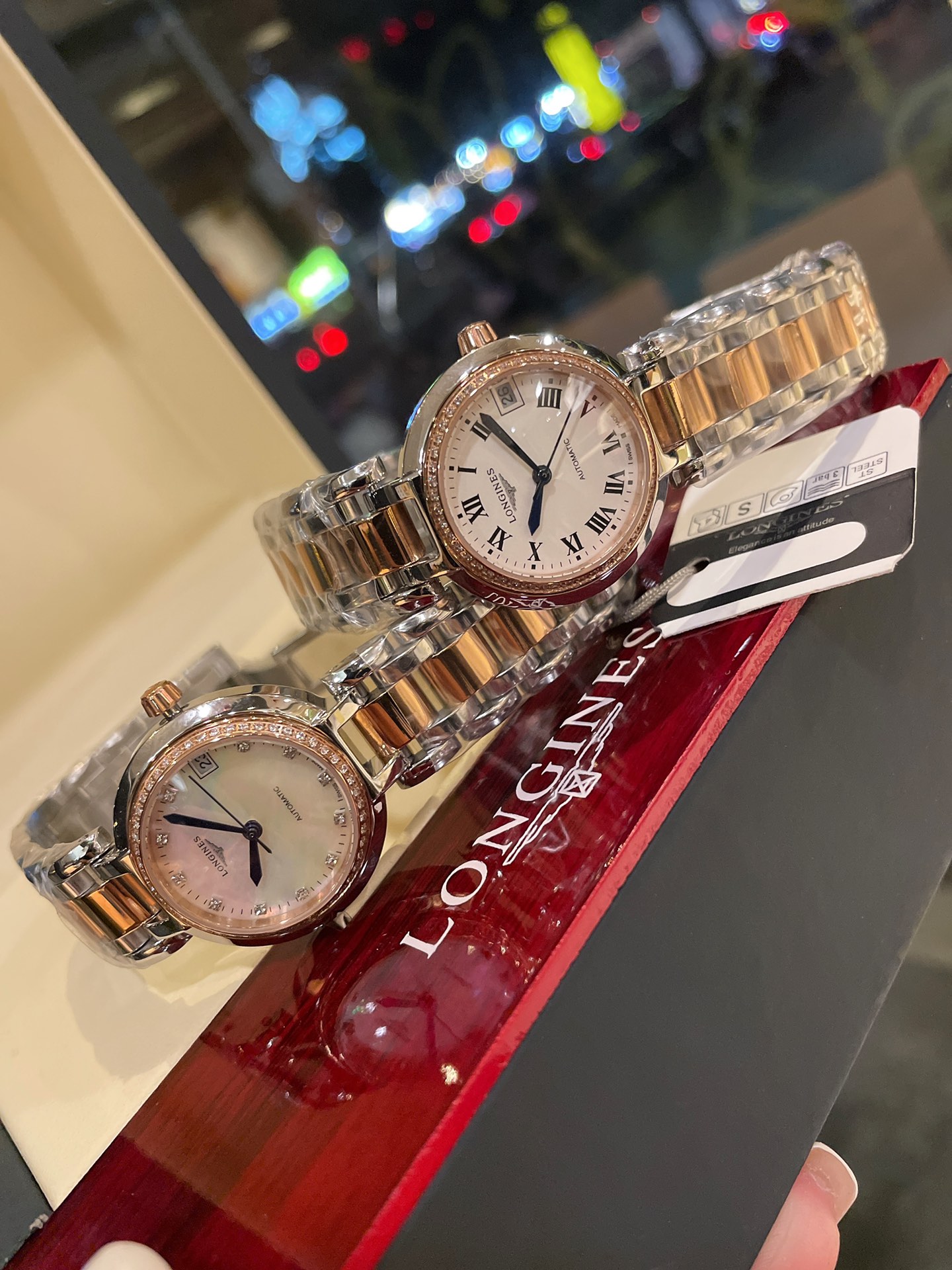 K5 专柜机械面板 浪琴 Longines 心月系列月相女士腕表,采用独家定制真月相每月转一圈正品一致进口石英机芯,精钢圆形表壳,表径30.5mm,抗磨损合成双卜蓝宝石玻璃数据同步正品,A级深海白色珍珠母贝字面,钻石刀CNC切割月相窗口,高档八角花镐石钻丁刻度,蓝钢指针,精钢表链搭配原装三折式表扣。