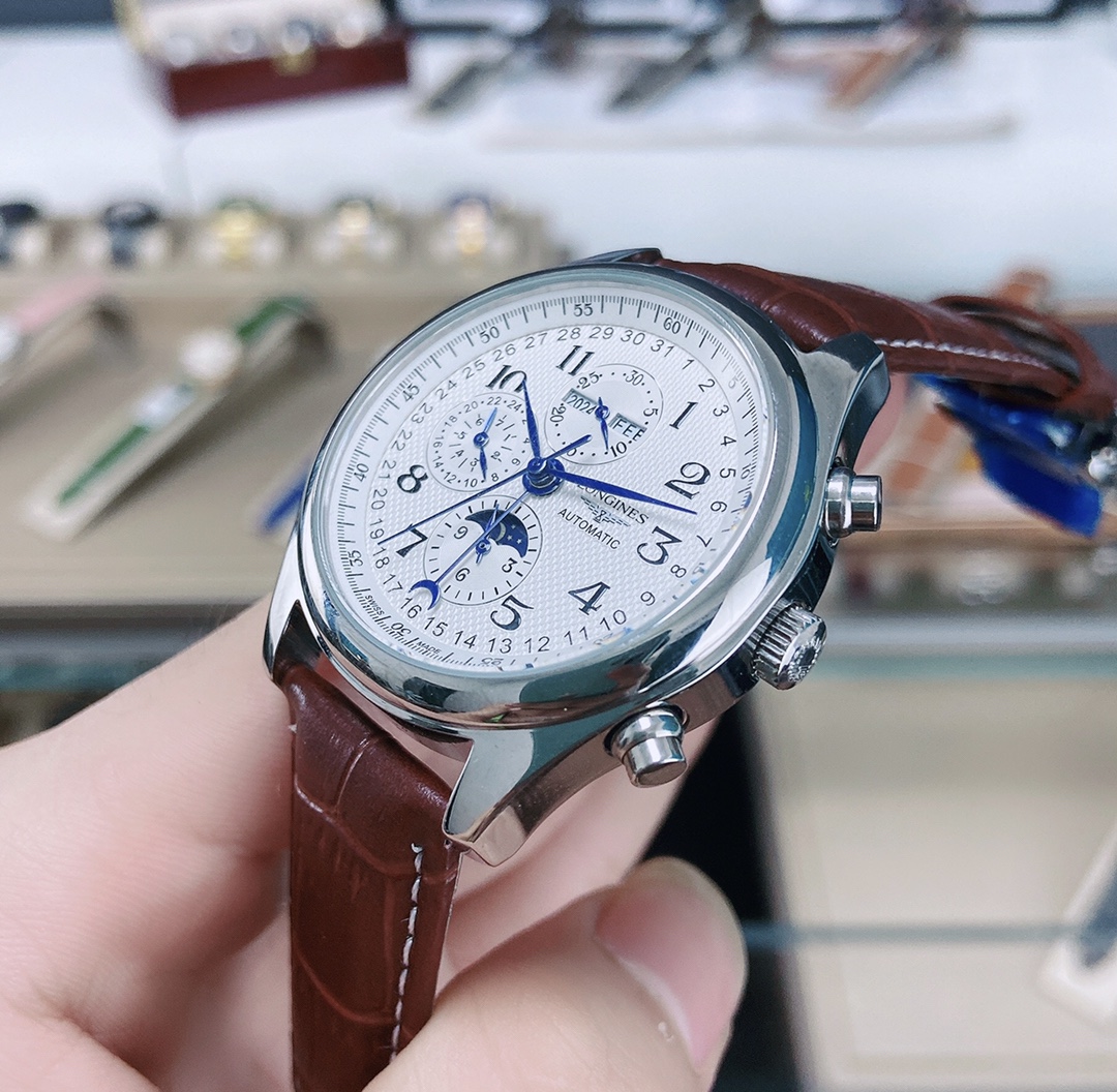K5 浪琴 Longines 名匠系列八针月相销量神奇升级版本浪琴 Longines -名匠8针月相40mm,浪琴 Longines 名匠系列八针月相316精钢表壳表链,月相盘跟跟原装一摸一样内置进口自动机械机芯改原装陀蓝宝石镜面,折叠扣,防水30米