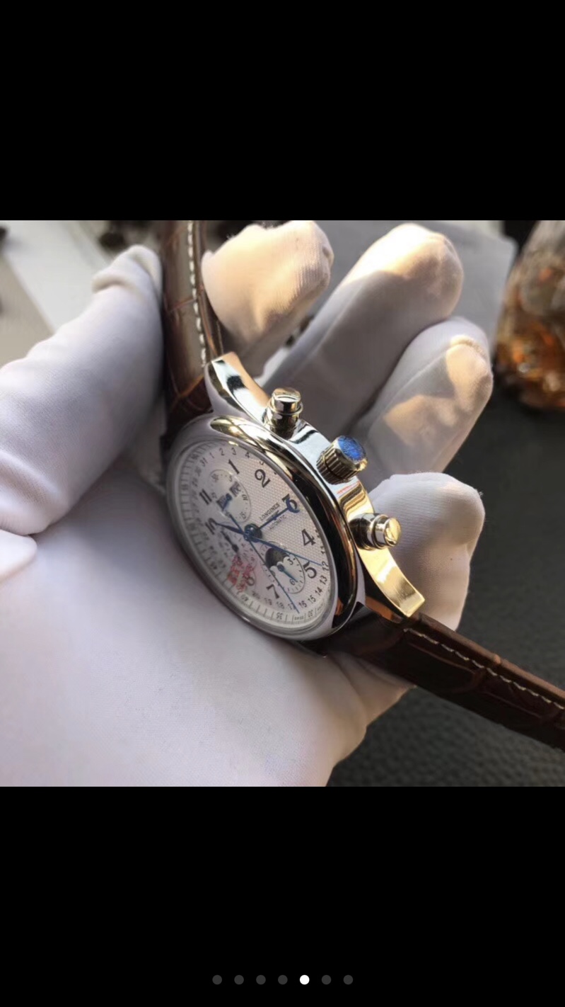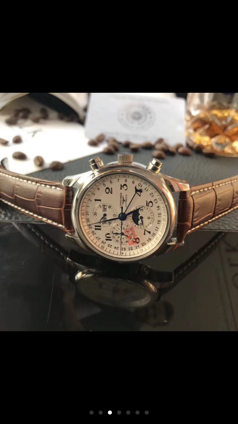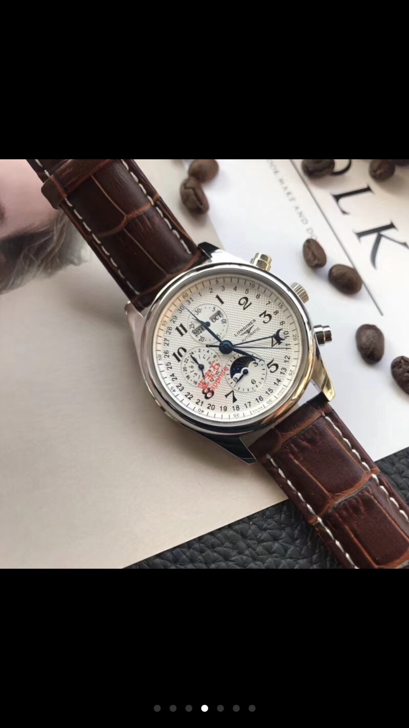 K5 浪琴 Longines 名匠系列月相八针。蓝宝石镜面 24小时显示,日历 ,星期 ,月份 ,月相 ,GMT,计时。全部功能与正品一致。完美实现 ,机芯为ETA7751机芯 。为目前最复杂且稳定的复刻表机芯。指针为蓝钢淬火指针公认的超级复刻