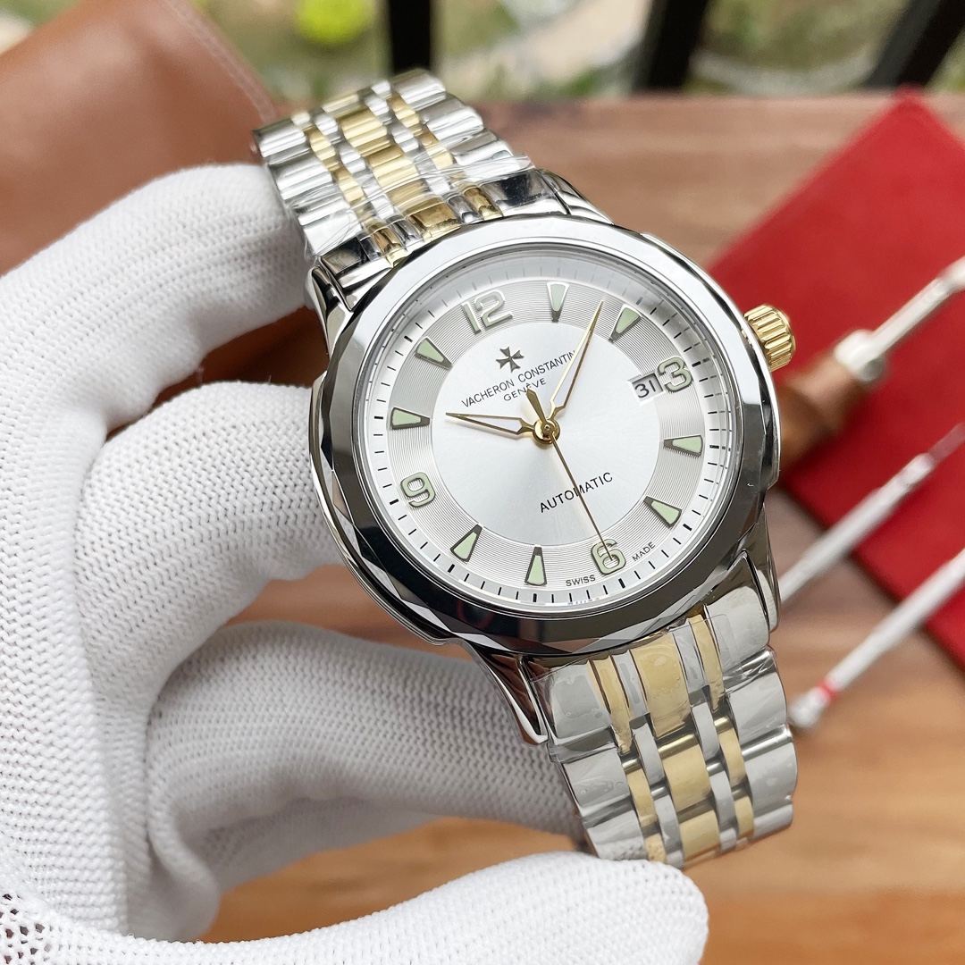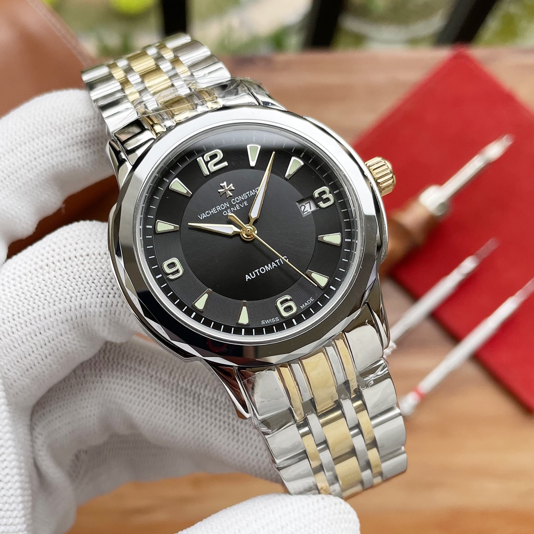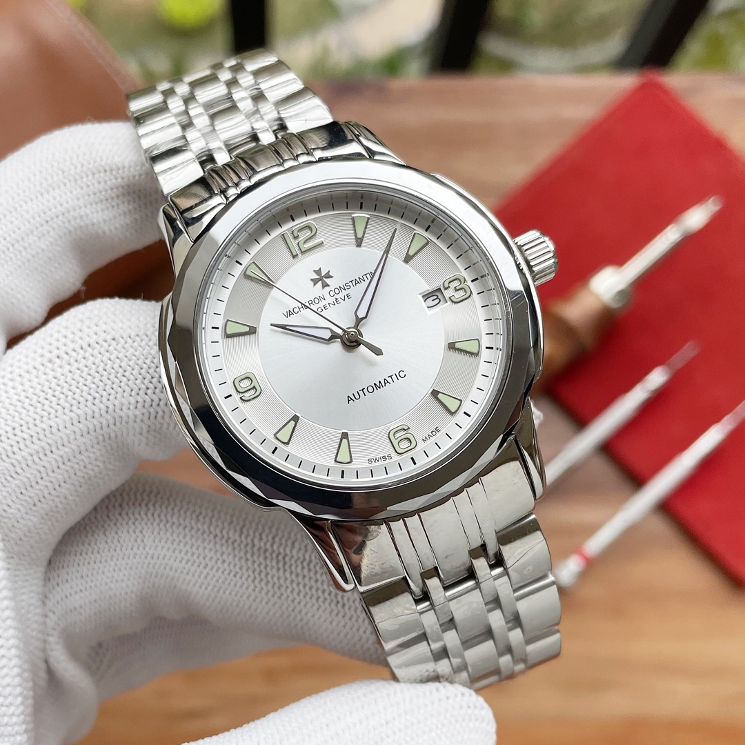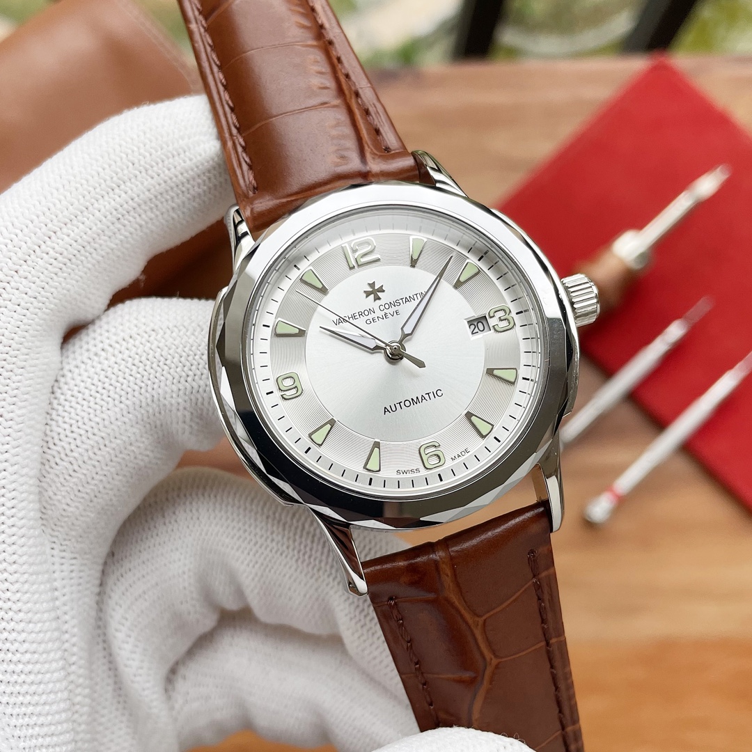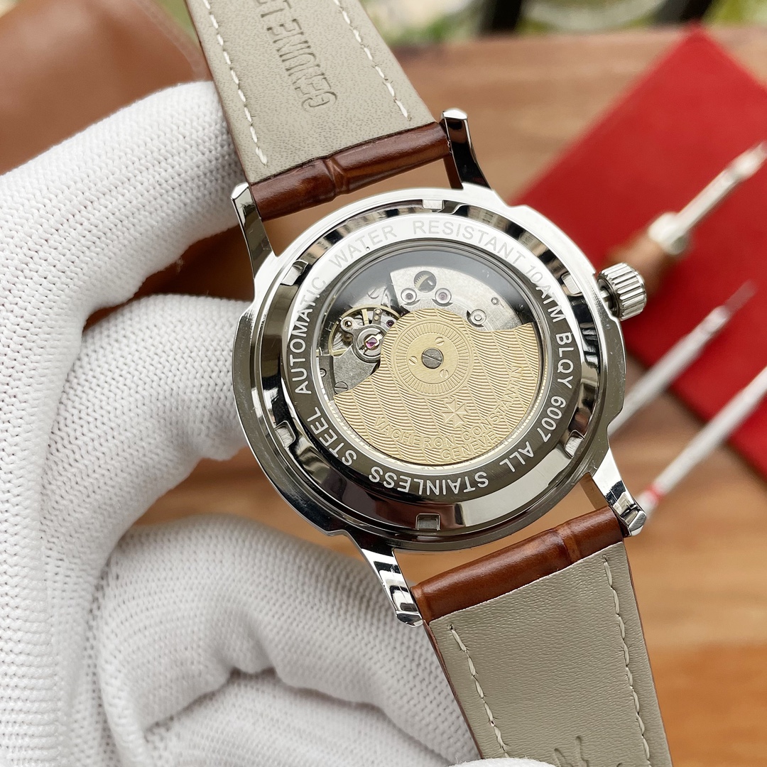 品牌: 江诗丹顿 Vacheron Constsntin 三针设计 类型:精品男士腕表 表带:316精钢/真牛皮表带 机芯:高端全自动机械机芯 镜面:矿物质强化玻璃更高清 品味高雅 浩瀚大气 匠心独运 腕间瑰宝 尺寸:直径41mm厚12mm