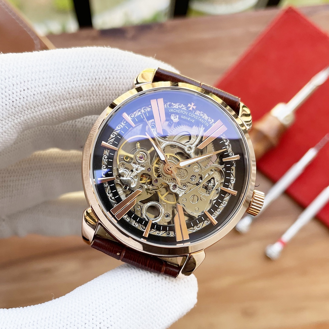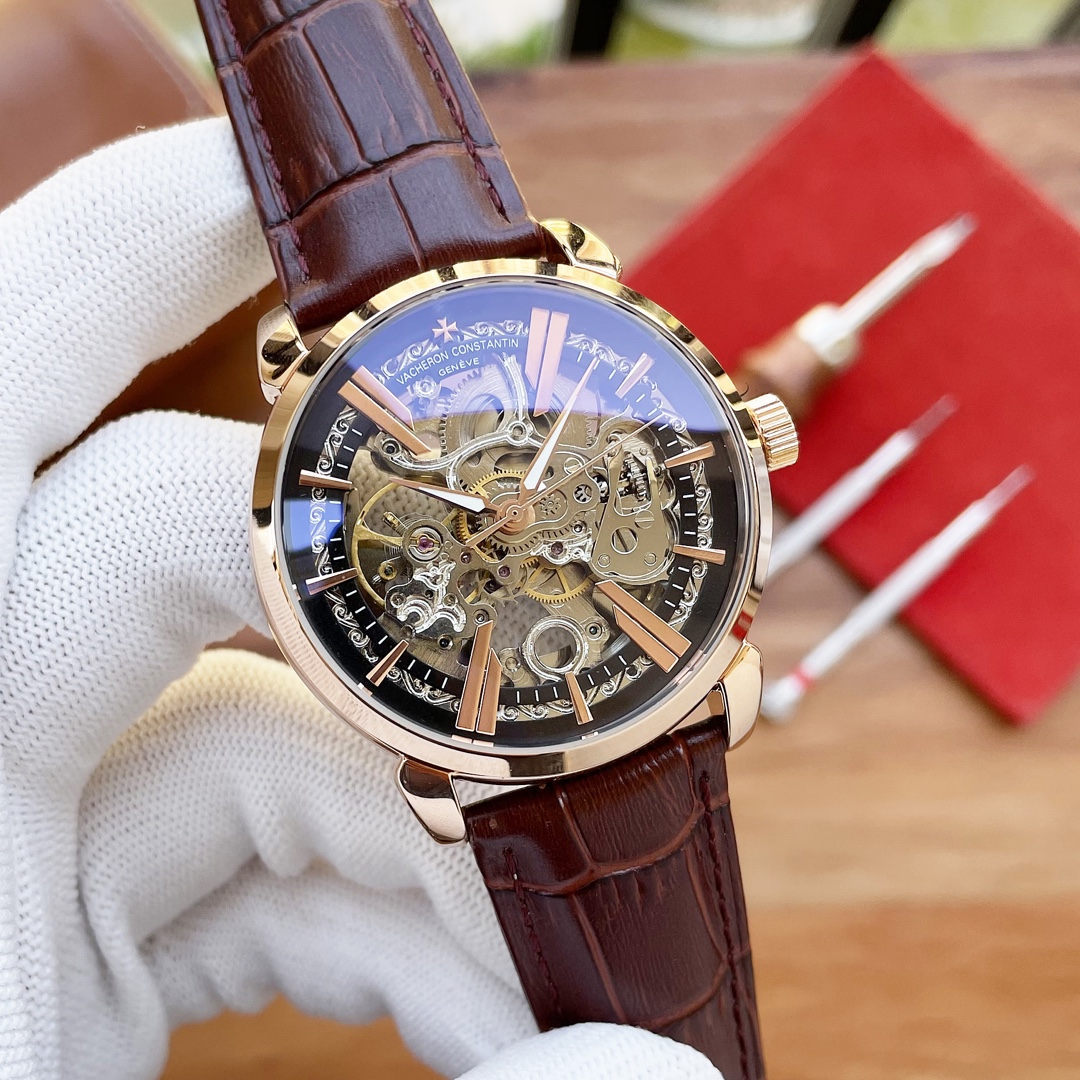 品牌: 江诗丹顿 Vacheron Constsntin 镂空设计 类型:精品男士腕表 表带:316精钢/真牛皮表带 机芯:高端全自动机械机芯 镜面:矿物质强化玻璃镜面更高清 品味高雅 浩瀚大气 匠心独运 腕间瑰宝 尺寸:直径41mm厚12mm