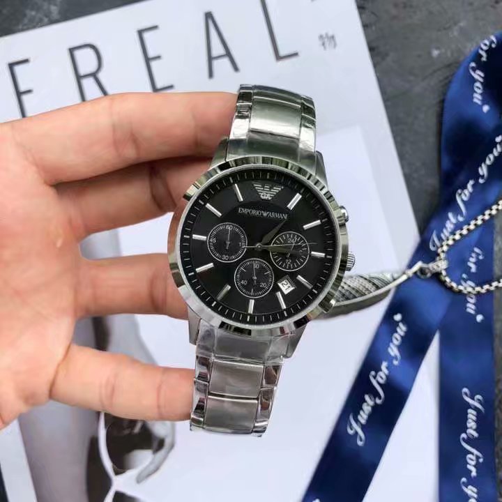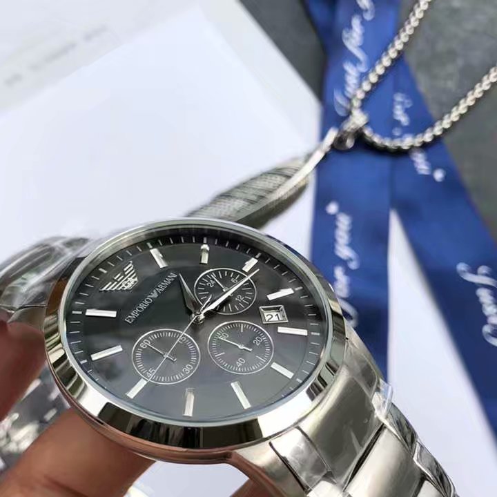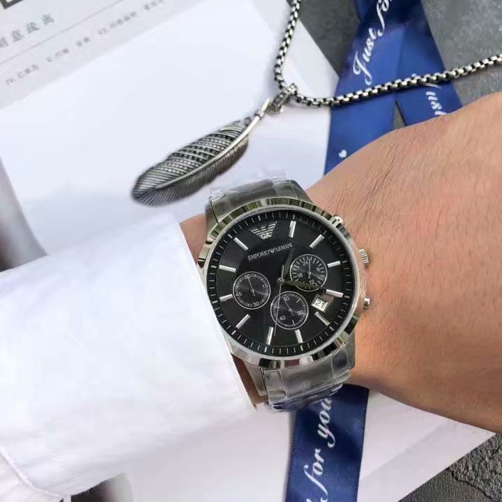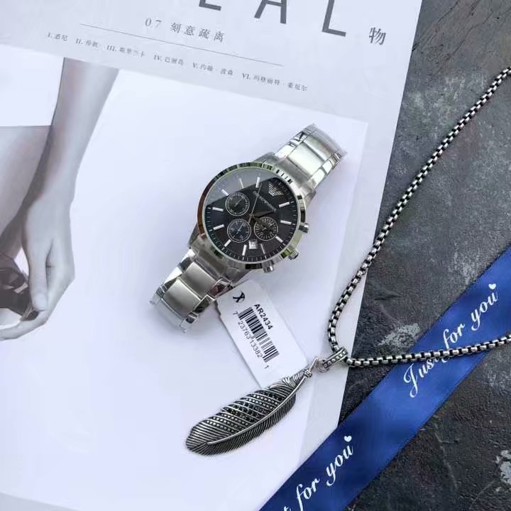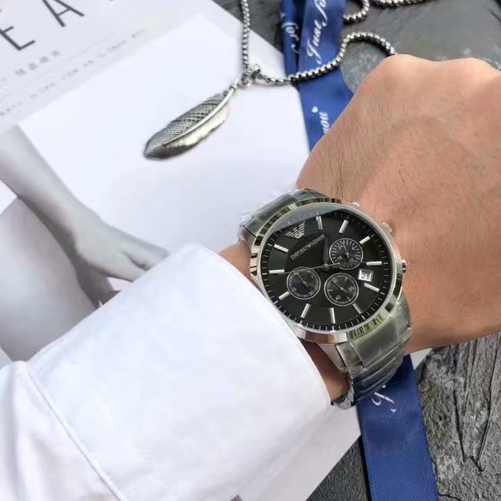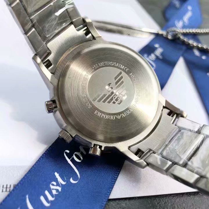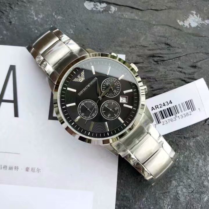 J0 原单 阿玛尼 Armani 手表男表AR2434 精彩人生 时刻掌控 腕上流年 商务百搭 精致表冠 多功能计时表盘 经典刻度 白钢表带 便携式蝴蝶扣 矿物质水晶镜面 50米防水 进口石英多功能男表 43mm*10mm