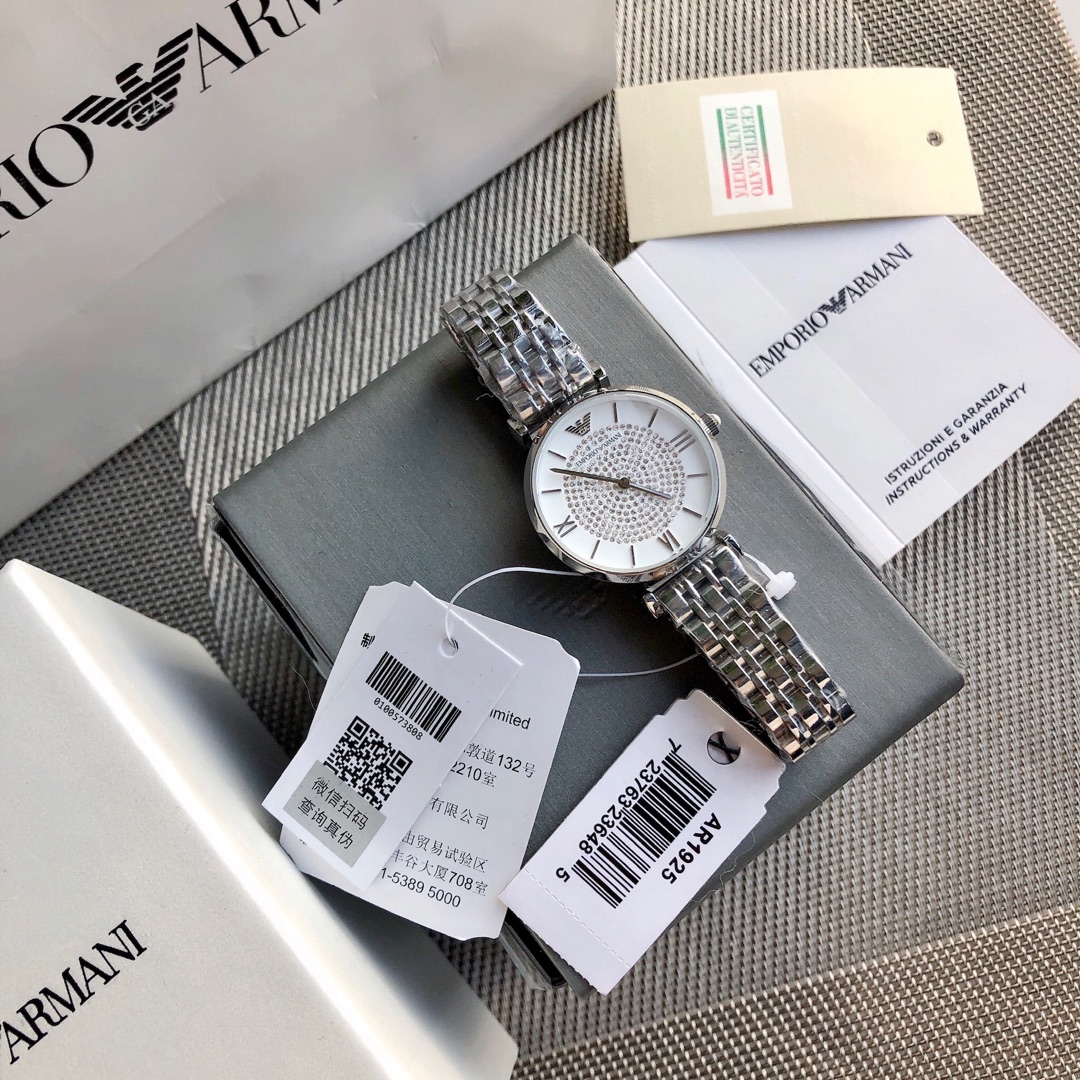 J0 Armani 阿玛尼女表。小仙女必备型号AR1925、表盘32mm 完美尺寸作为最受欢迎的款式之一,就一定会有各种层出不穷的版本。请认准独家品质 区分市场便宜货各种细节百分百同步专柜任意对比配防伪标签,防伪二维码。全套专柜包装表壳表带采用日本进口精钢材质玫瑰金采用真空ip电镀工艺 永不掉色。并非市场水镀产品 各种掉色表盘内钻采用进口施华洛世奇水晶钻,普钻的直径PP0/PP1国内无法切割,因为它没有钻石的硬度。表盘采用矿物质玻璃制作而成。原装蝴蝶双按扣。生活防水30米注意生活防水不防温水热水蒸气请认准品质 放心购买。