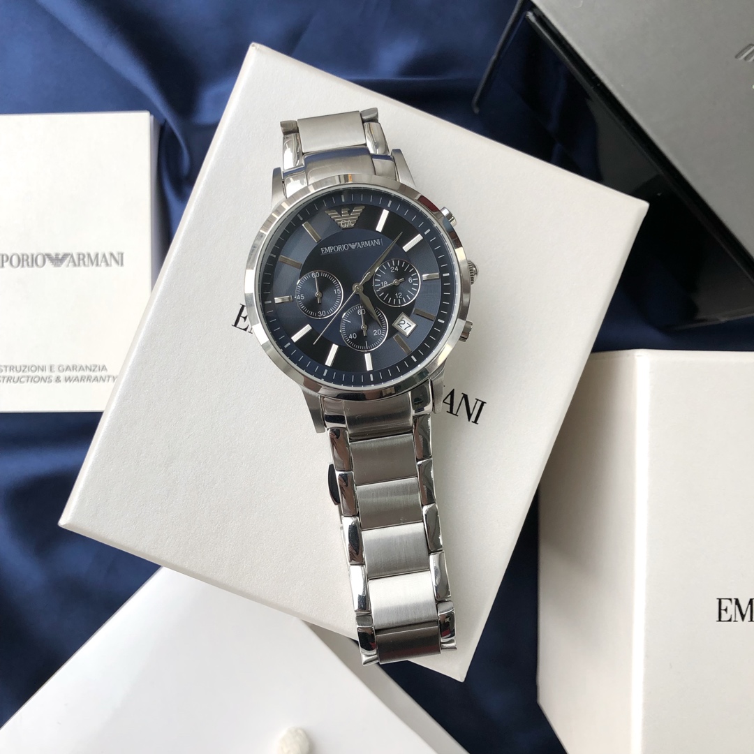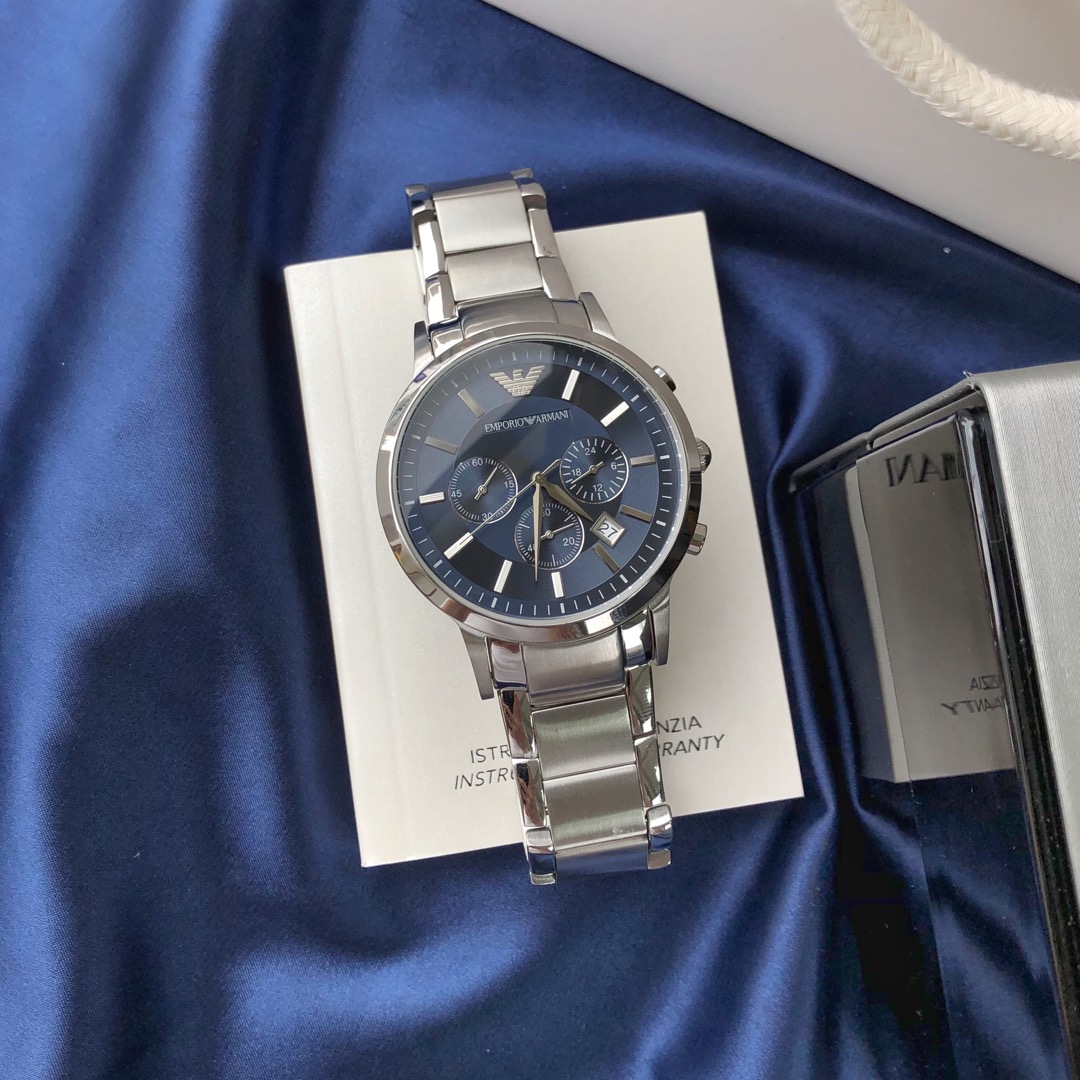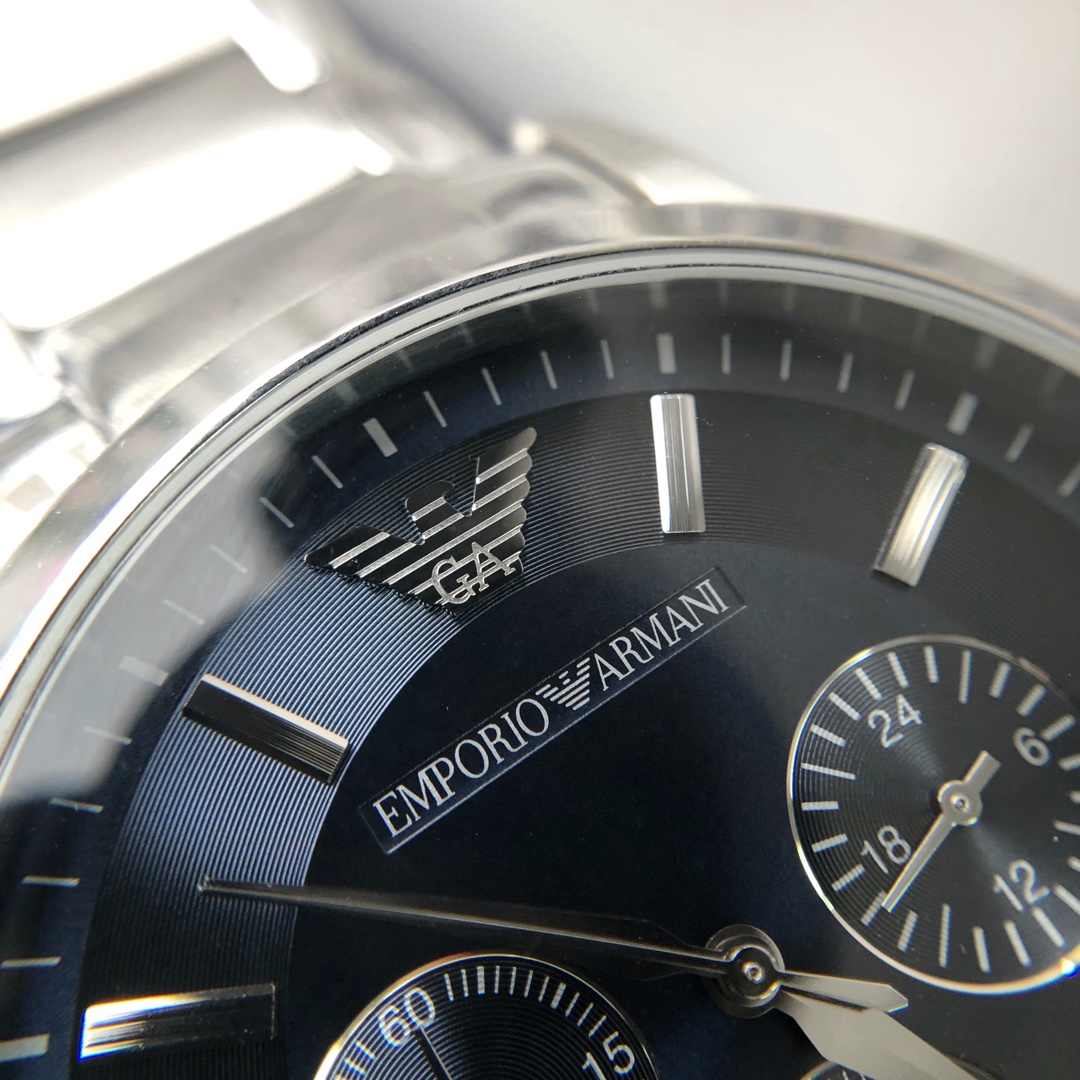 J0 Armani 阿玛尼经典休闲商务款,316钢表带,蓝色表盘,三眼设计,带日期,316钢表带石英表,表盘直径43mm 矿物质玻璃镜面,清晰高透,设计超级精致,表盘表带都十分简约大气,整个气质马上不一样了,小红书剁手款,男神钟爱款,上班不失风度,体现男性硬朗之风和成熟稳重的气质,休闲商务不二之选,生活防水30米。保证正品无佩戴退换