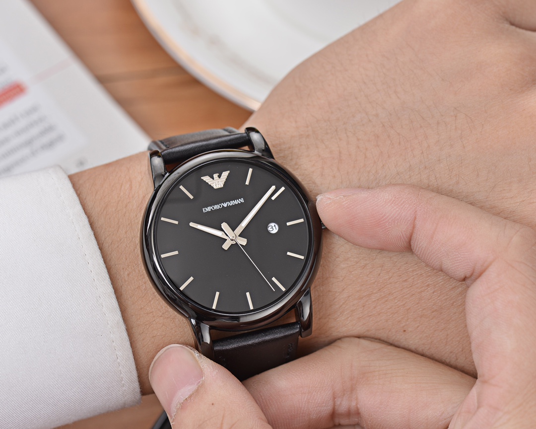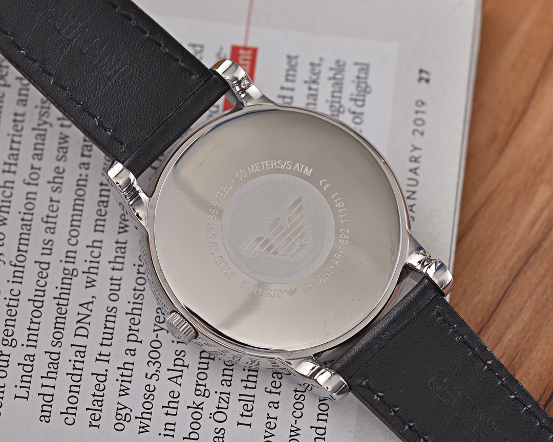 J5 原单ARMANI/ 阿玛尼 Armani 表壳:316L精钢 表镜:矿物质强化玻璃 表带:进口牛皮 表扣:针扣 尺寸:41*9mm 大三针简约表盘搭配钢壳质感 百搭休闲的男士