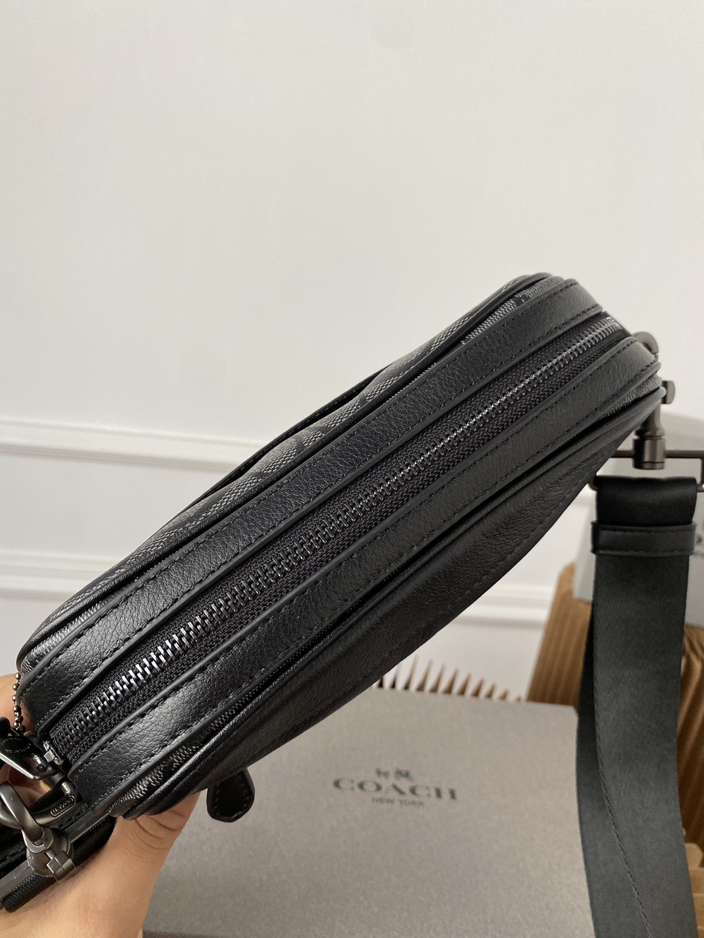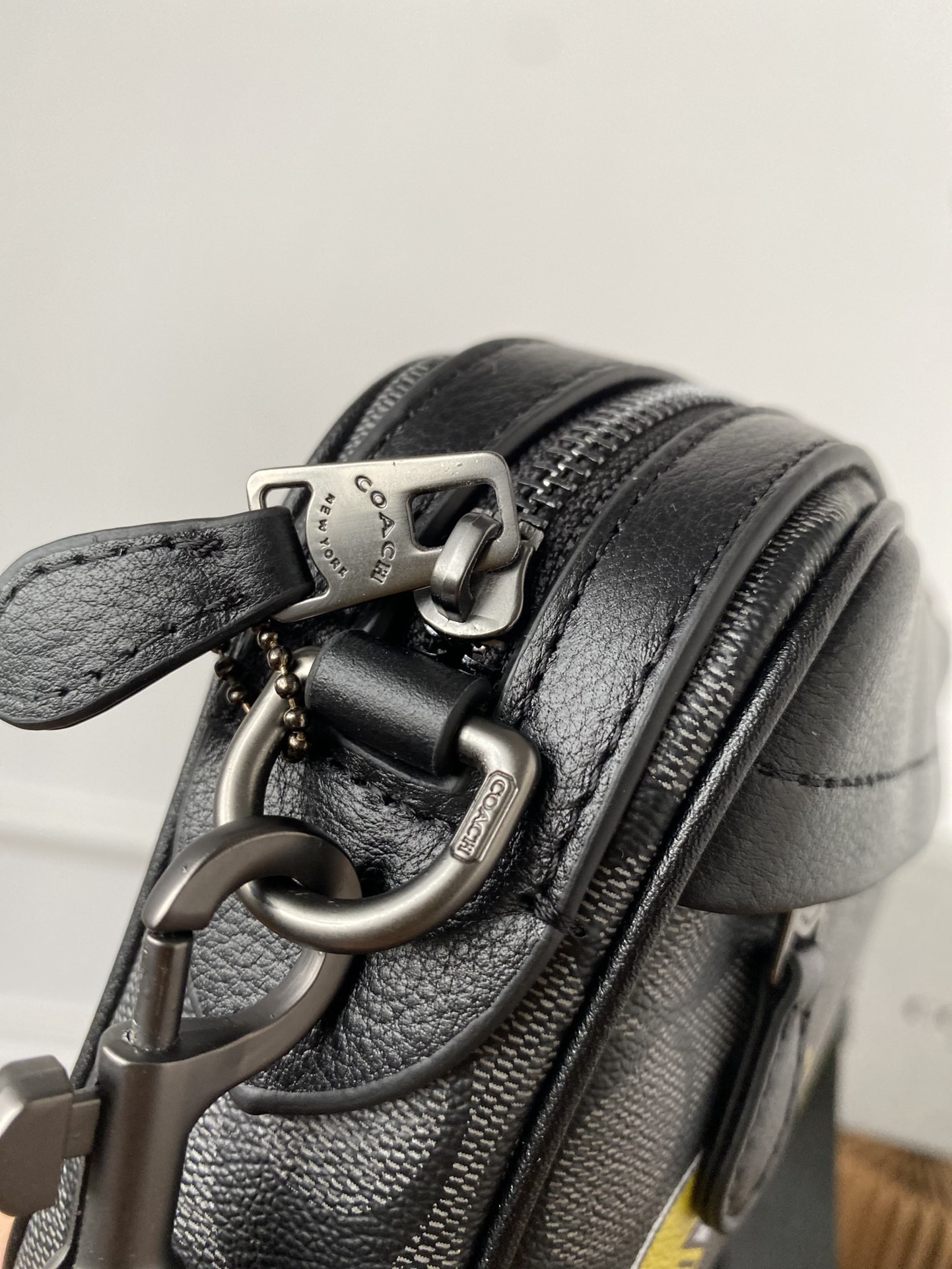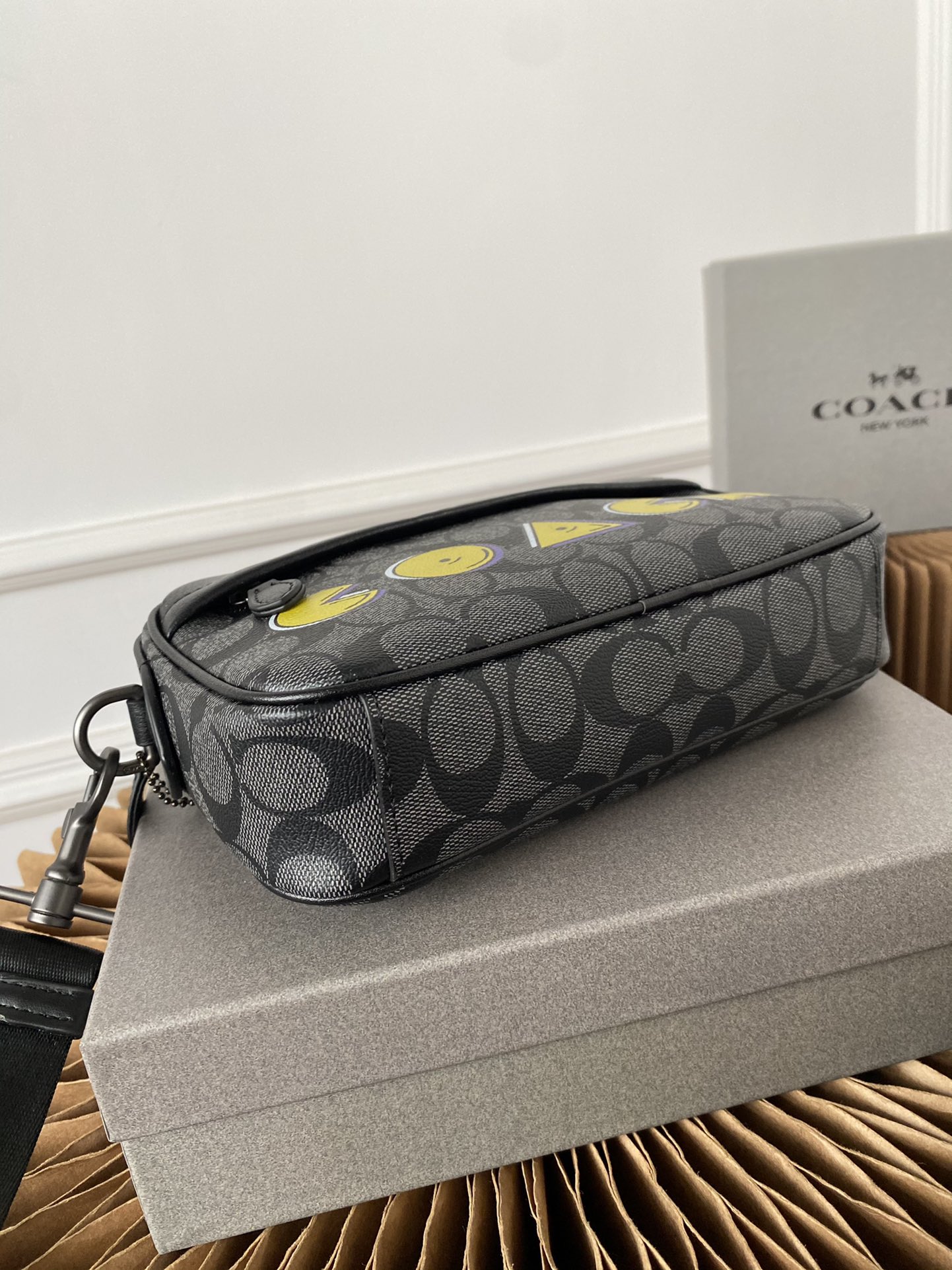 J0 Coach 蔻驰 牛皮版本吃豆人联名相机包 Graham 单肩包 男士斜挎包 经典Logo搭配原厂工艺材质 休闲百搭斜挎包 采用精湛镶嵌细工,实物拍摄 原厂原版面料 配送小票防尘袋 礼盒 14 x 23 cm。