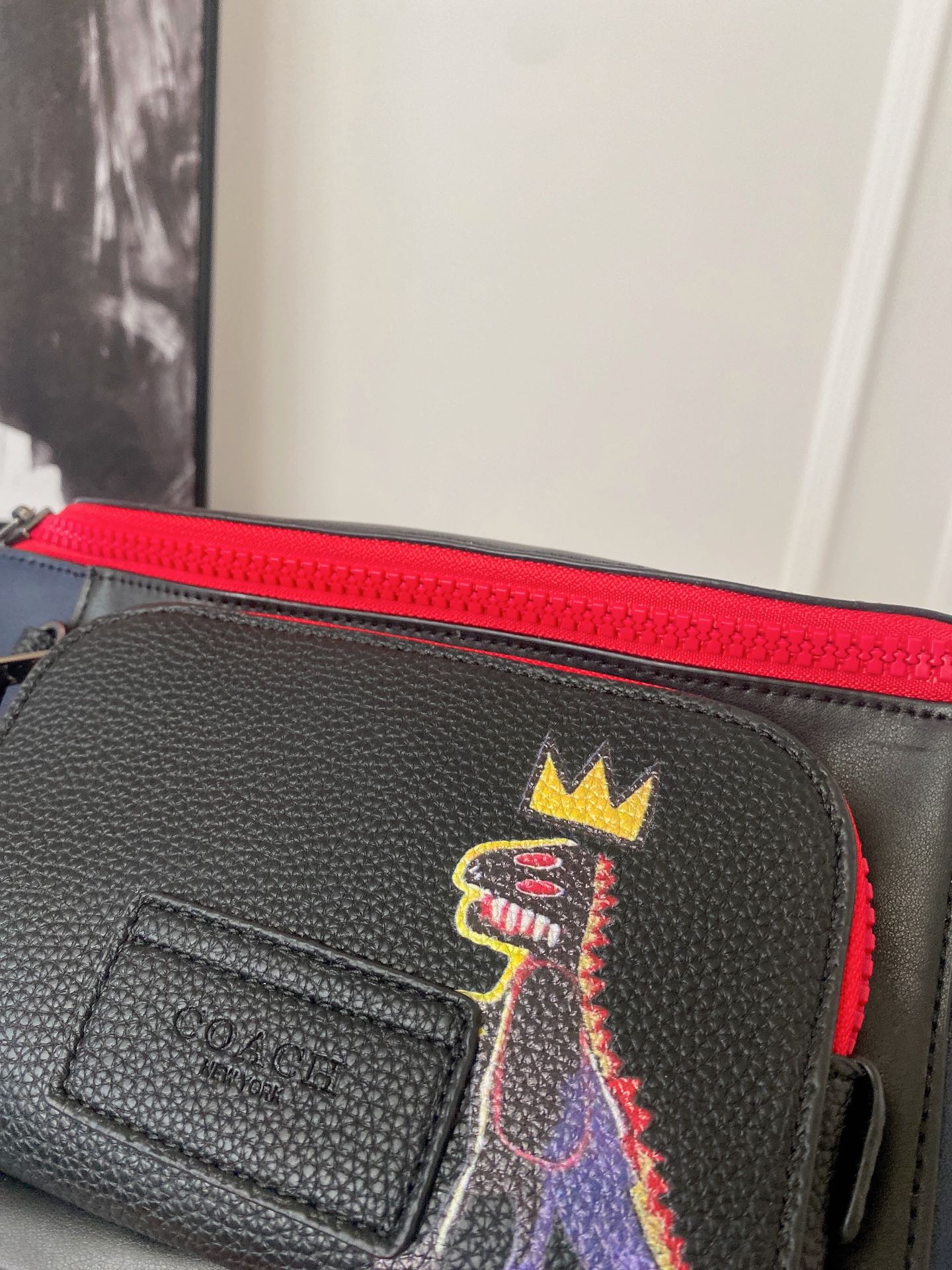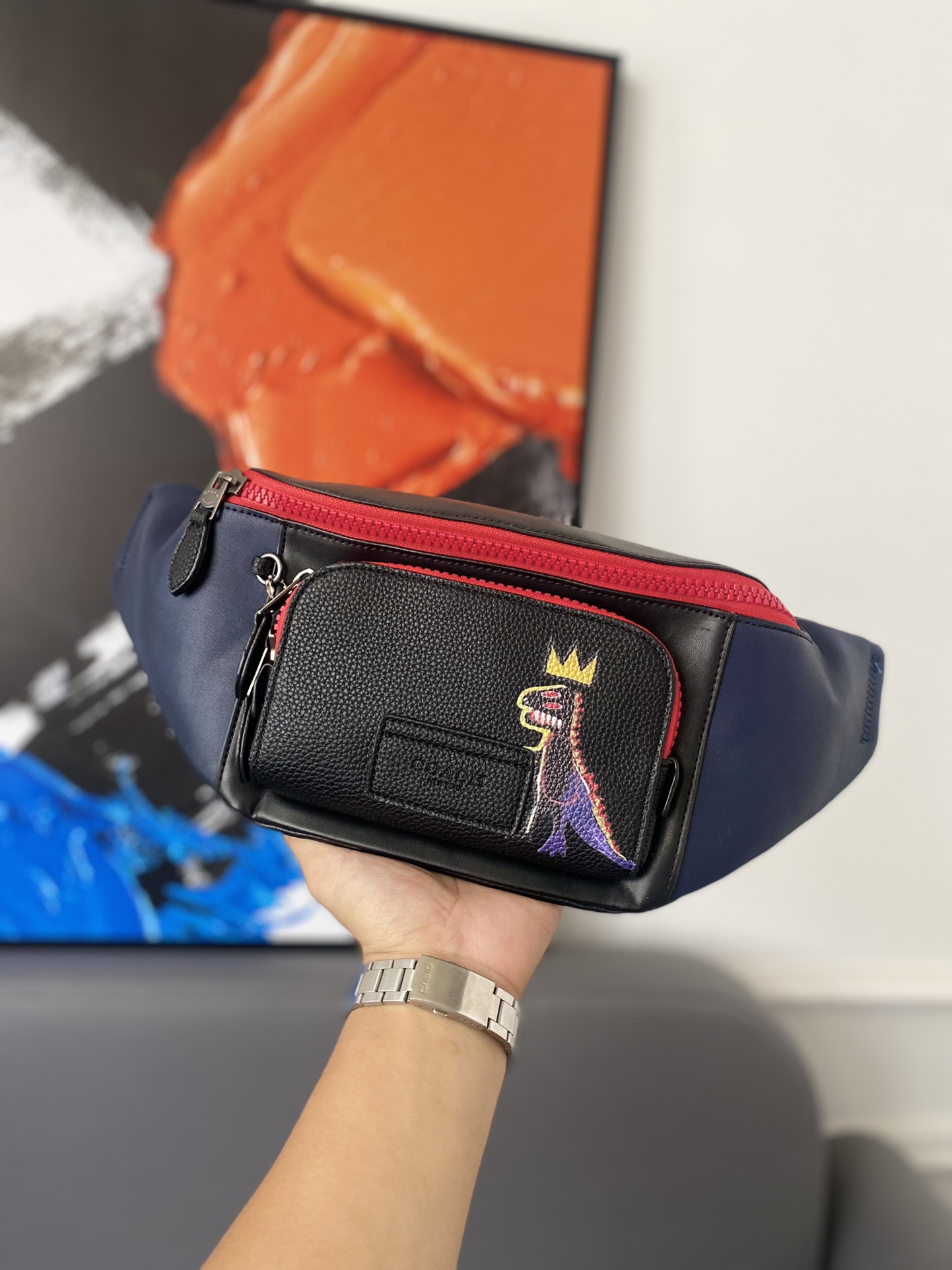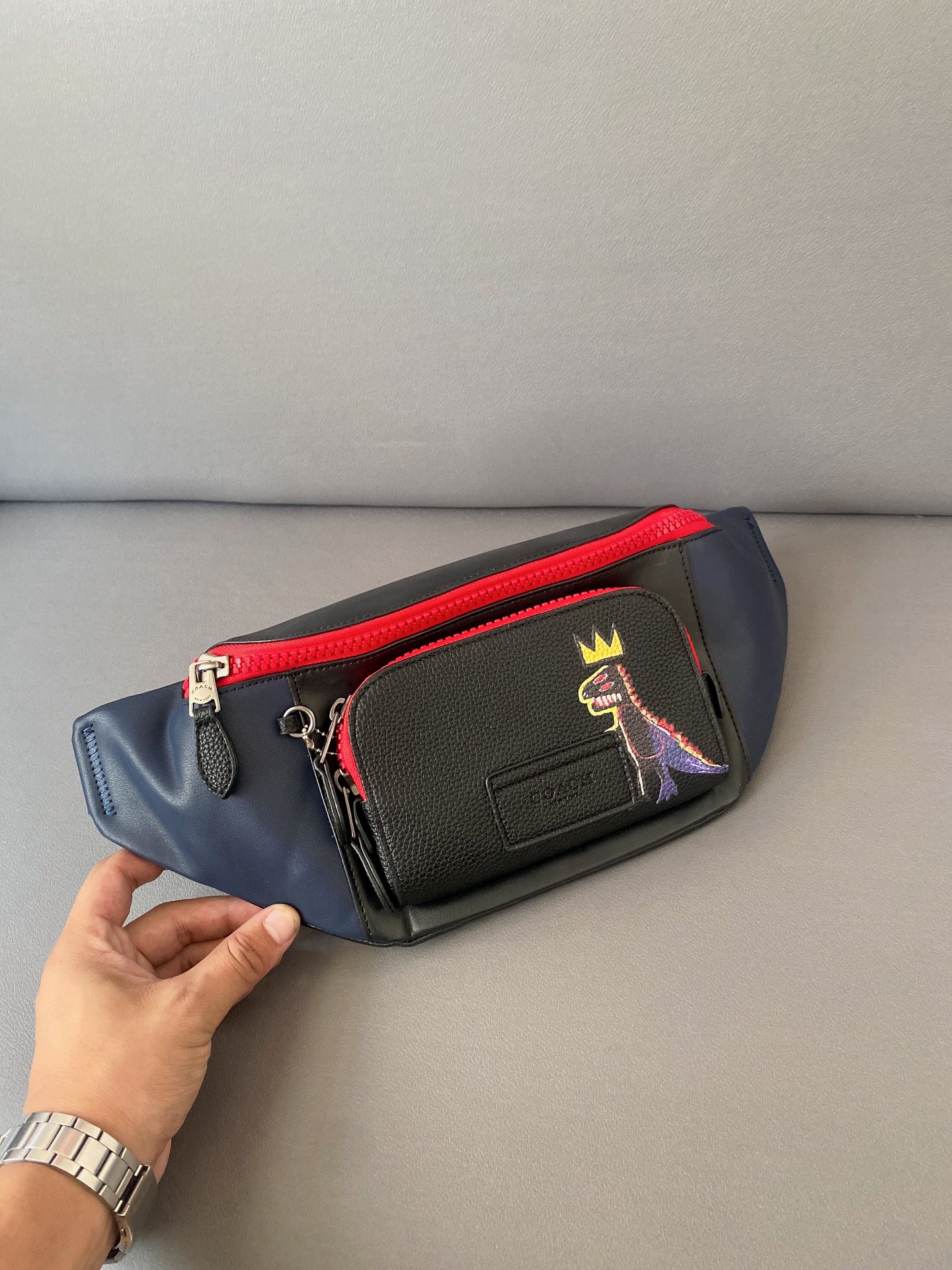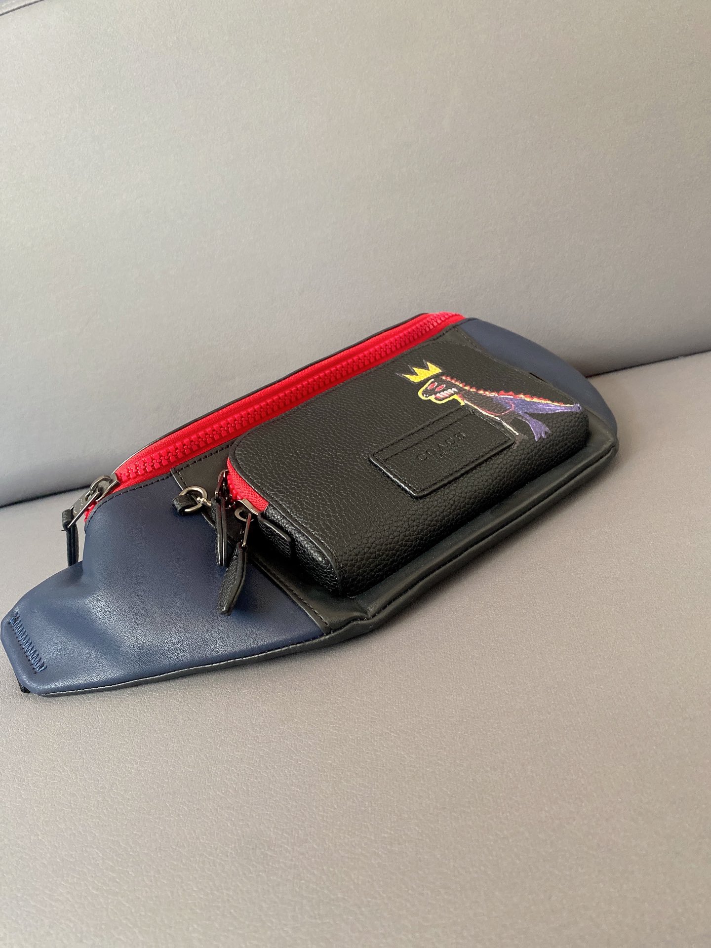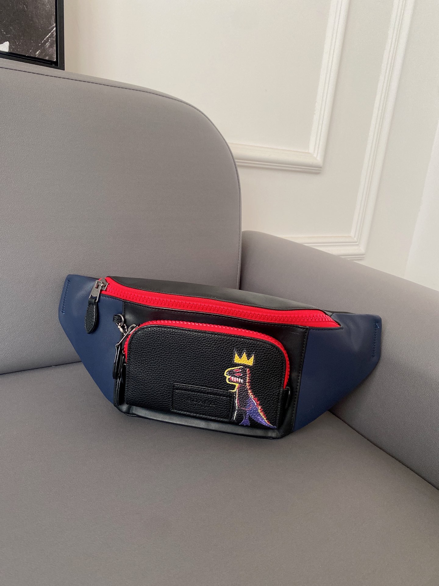 J0 Coach 蔻驰 Track恐龙涂鸦腰包 男女通用斜挎包 胸包 经典百搭 采用精湛镶嵌细工,实物拍摄 原厂原版面料 配送小票防尘袋 礼盒 40 x 17 cm。