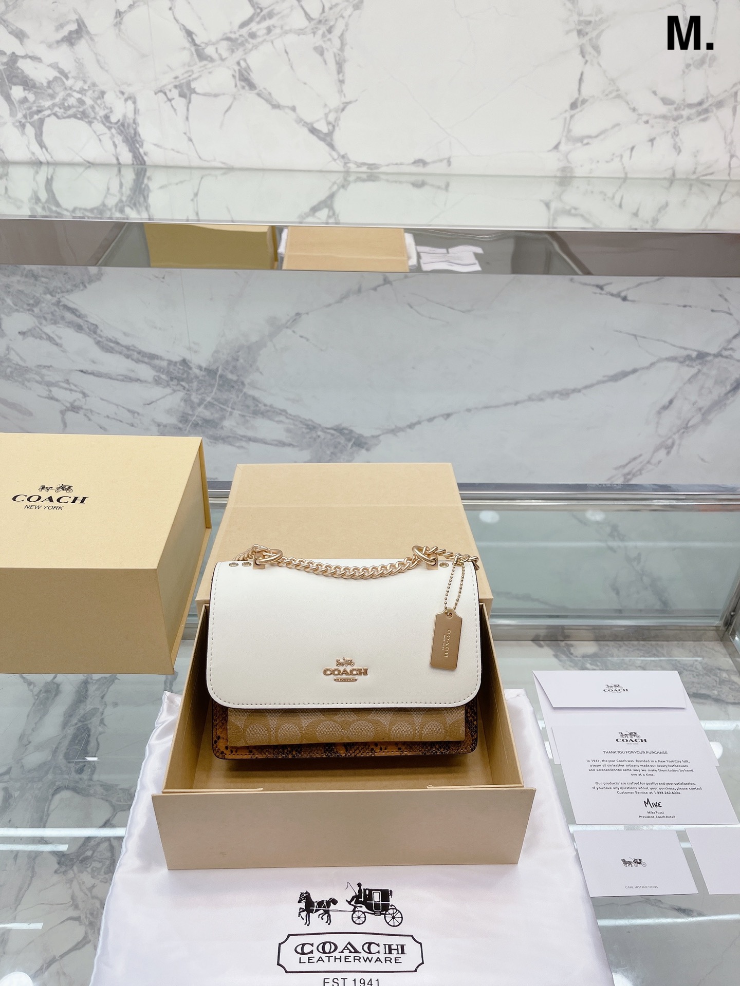 J5 原单 Coach 蔻驰 2022奥莱早春限量款风琴包Klarey |飞机盒折叠礼盒包装 C家Klare翻盖小方包 这款包包看起来,可以说是非常的精致优雅,经典的同时又不失设计感。侧面采用了蛇纹包边,个性又有气质,金属五金链条,但是非常轻巧。有两种背法,斜背或单肩,完全不用担心搭配,一年四季都可背尺寸:21.5*16cm