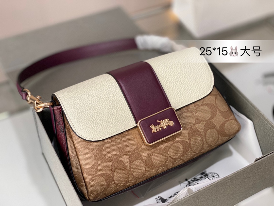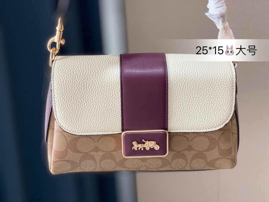 J5 大号 Coach 蔻驰 9月 Grace Shoulder bag Coach 蔻驰 9月 Grace Family Gatv 吴谨言同款包包 两个肩带 也可作为斜挎包 &象牙白色撞色拼接好看哟 尺寸25*15cm