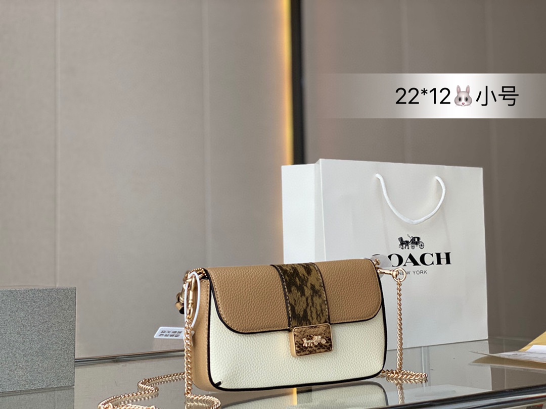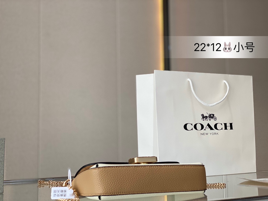 J5 小号 Coach 蔻驰 9月 Grace Shoulder bag Coach 蔻驰 9月 Grace Family Gatv 吴谨言同款包包 两个肩带 也可作为斜挎包 &象牙白色撞色拼接好看哟 尺寸22*12cm