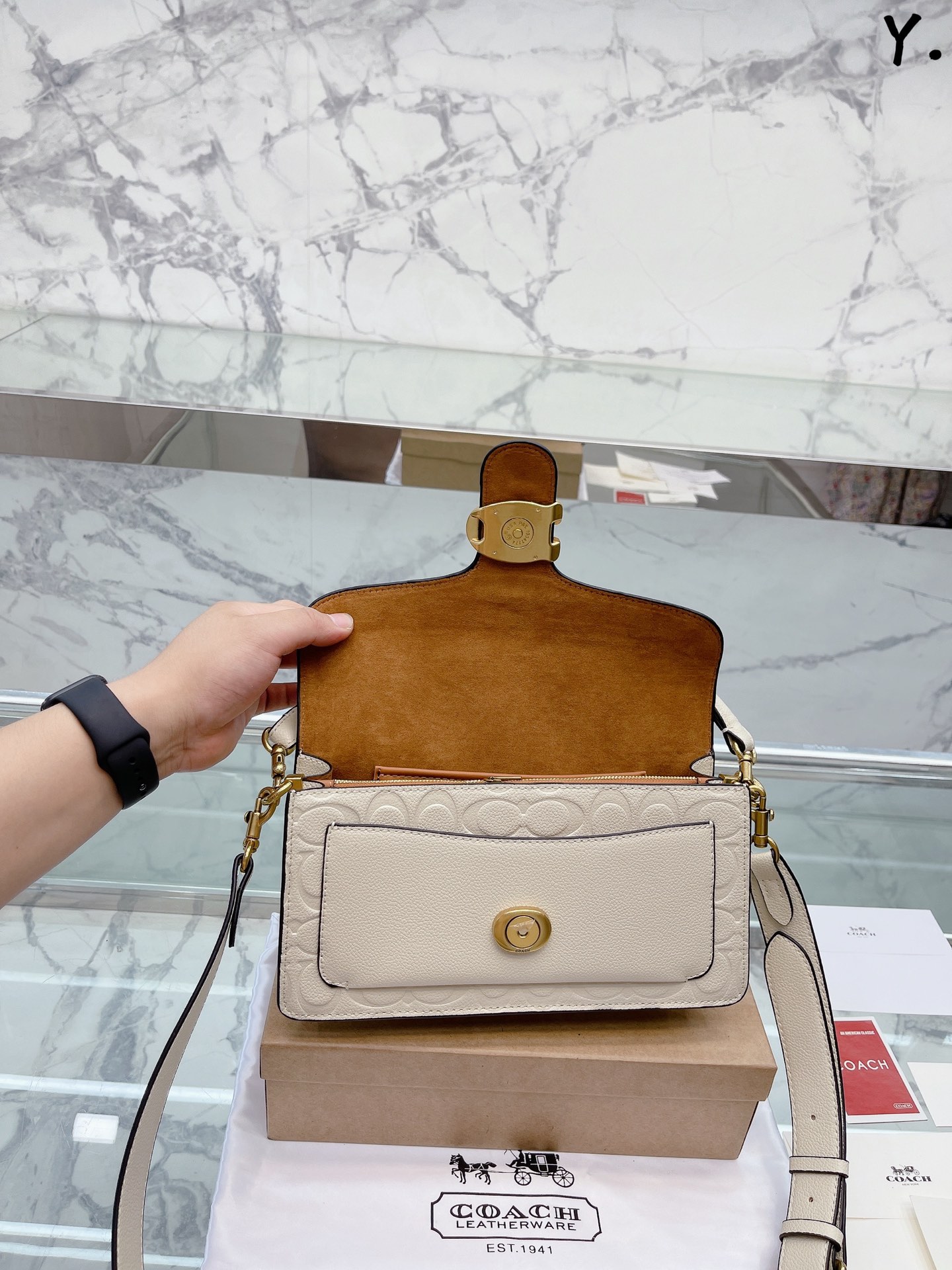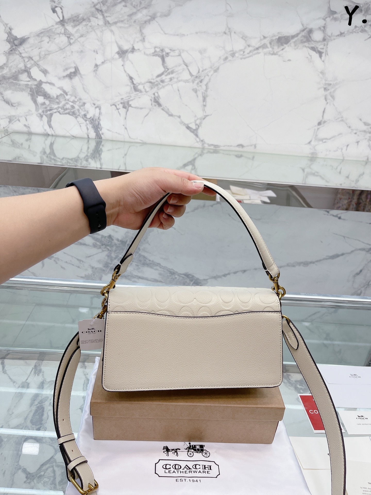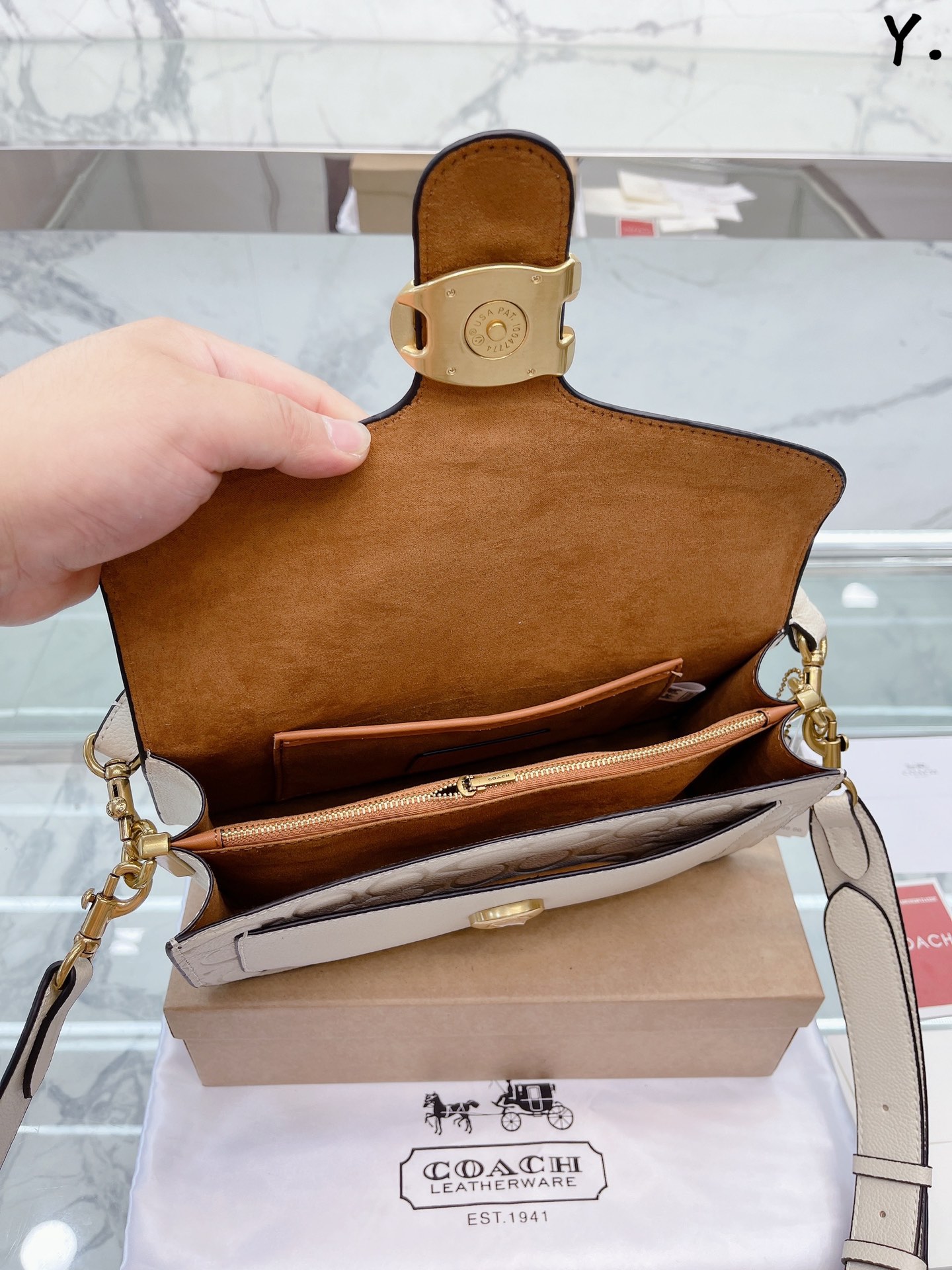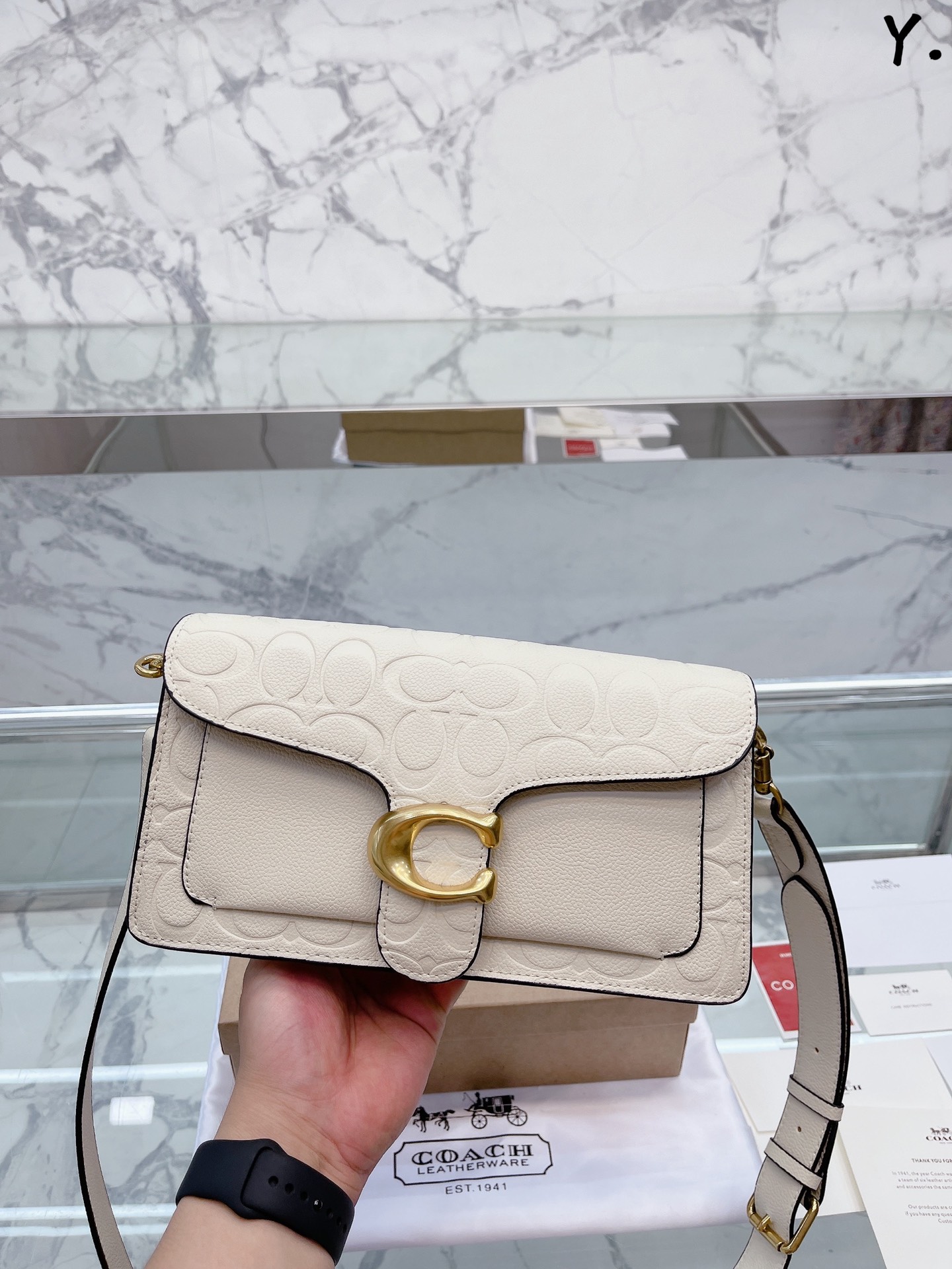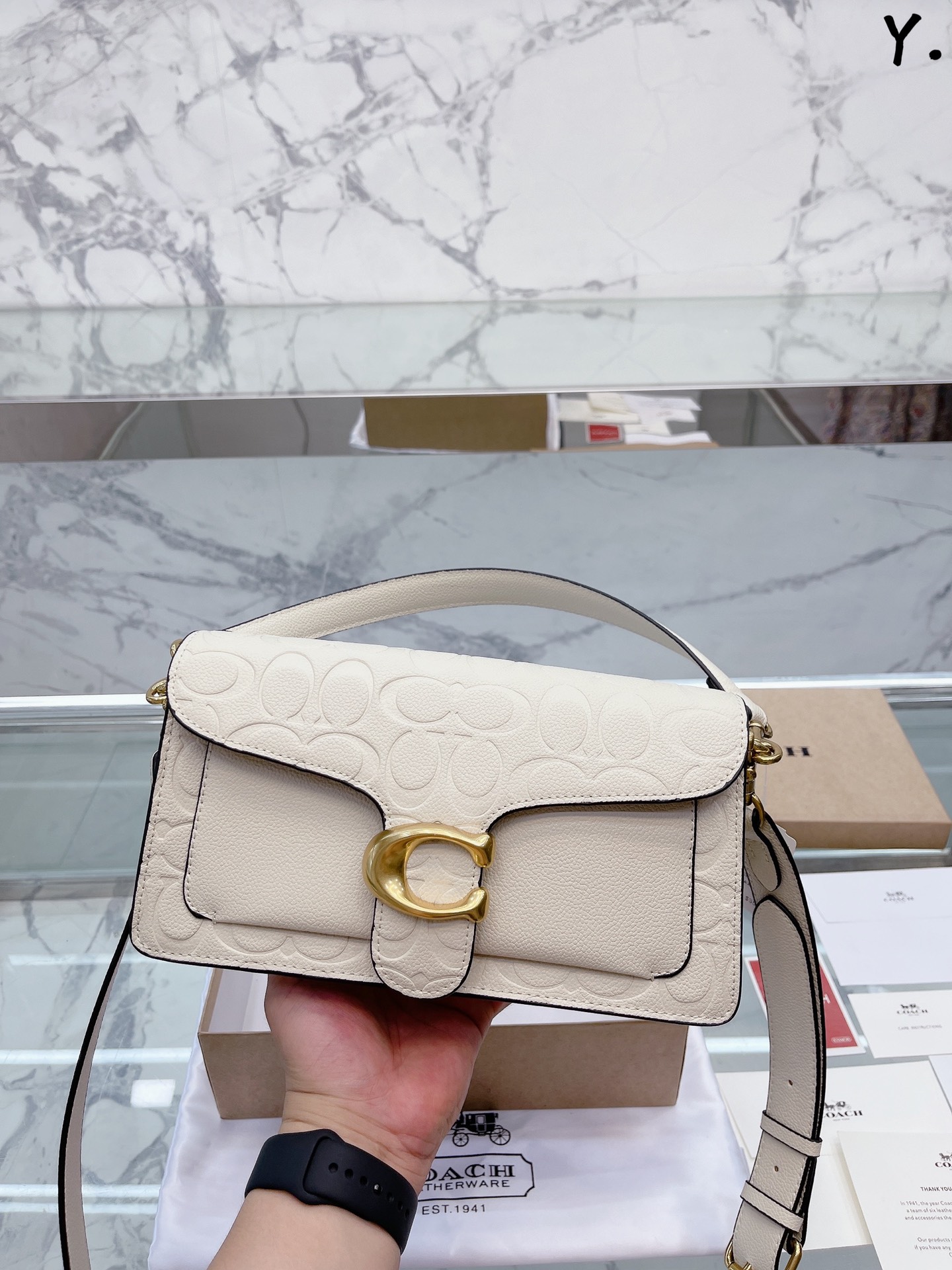 J5 Coach 家酒神包Tabby手提包单肩斜挎包。让小姐姐第一眼看到就会爱上它。被誉为平价版小酒神包的 Coach 蔻驰 Tabby,复古又百搭,很受欢迎啊。五金扣厚实,整体精致小巧,还特别能装。每个包配一长一短两天可卸肩带,内部结构分层合理,中间一个带拉链的隔层小袋,把包分成三格,简直完美尺寸:25*15*7.5cm。这个尺寸觉得刚刚好合适,手提单肩斜挎都没有问题的牛皮